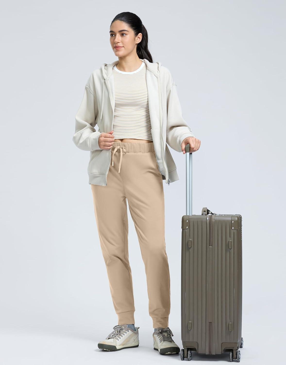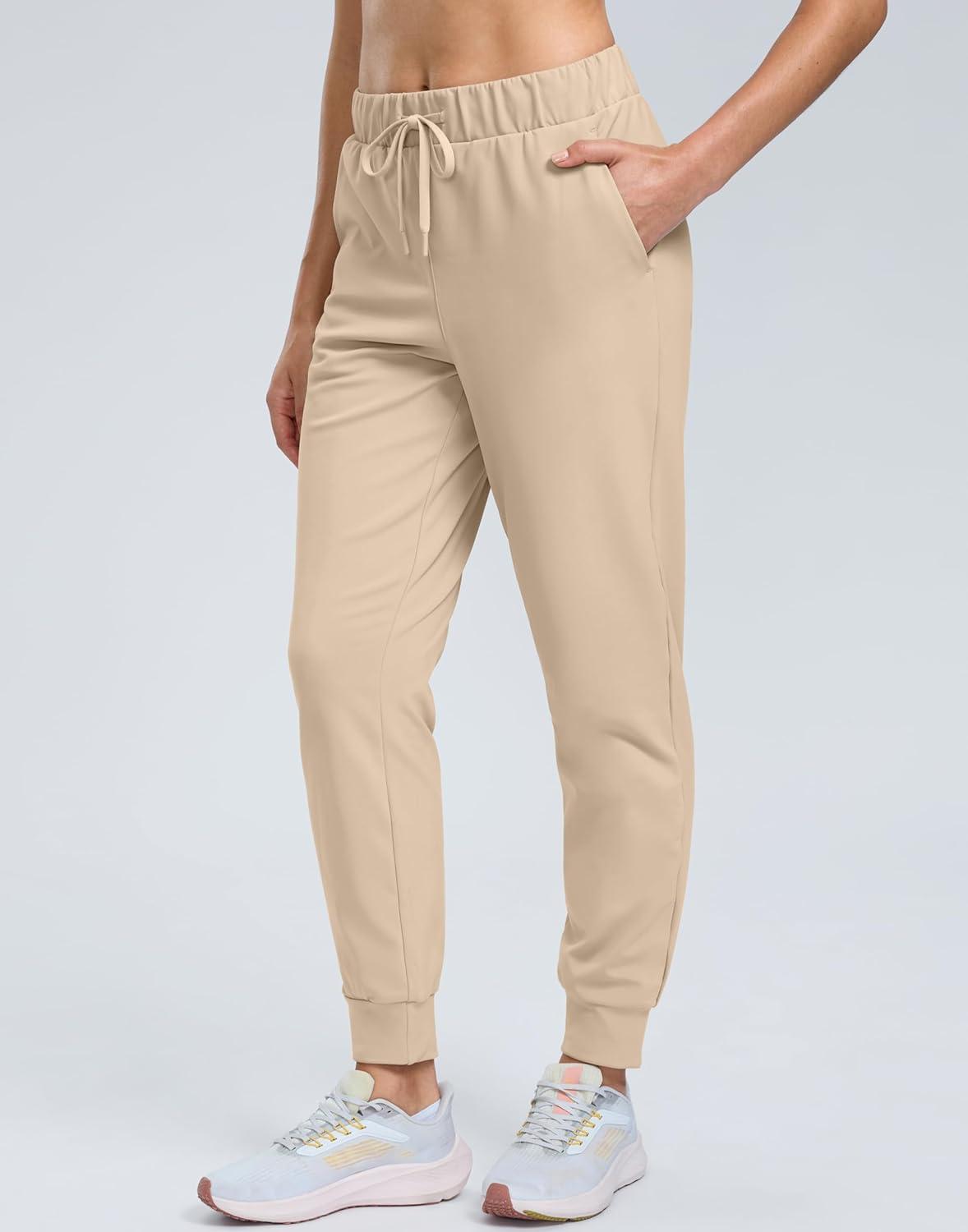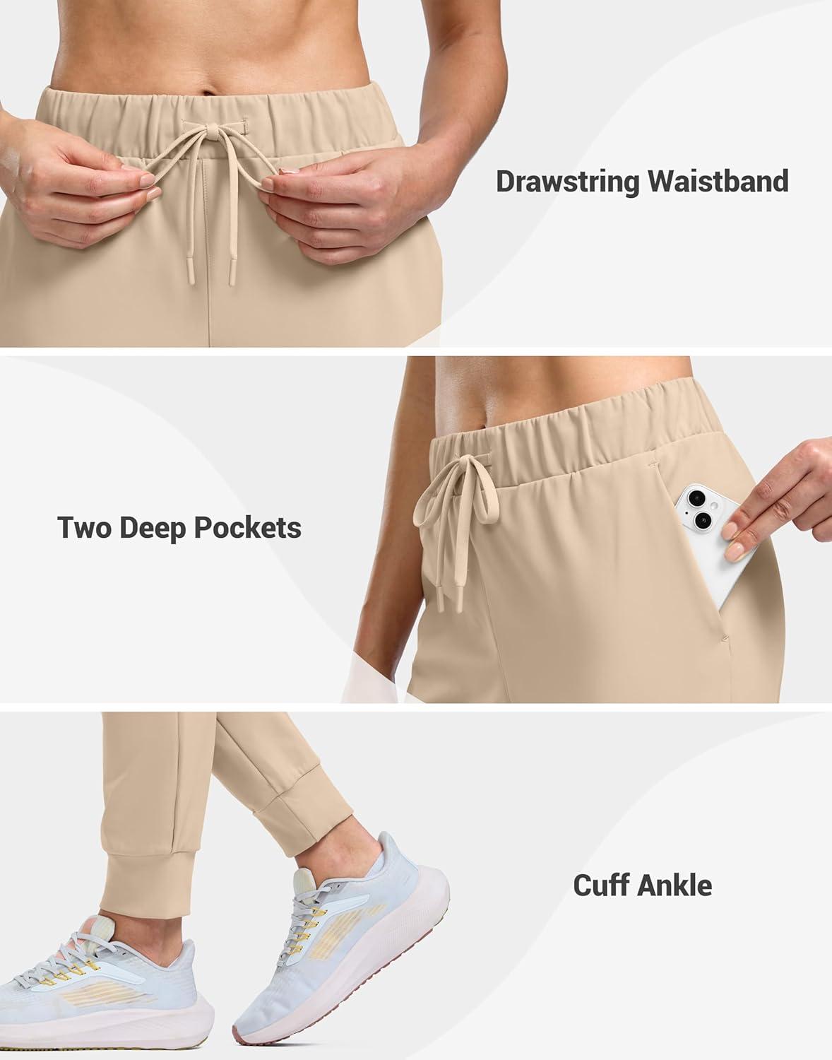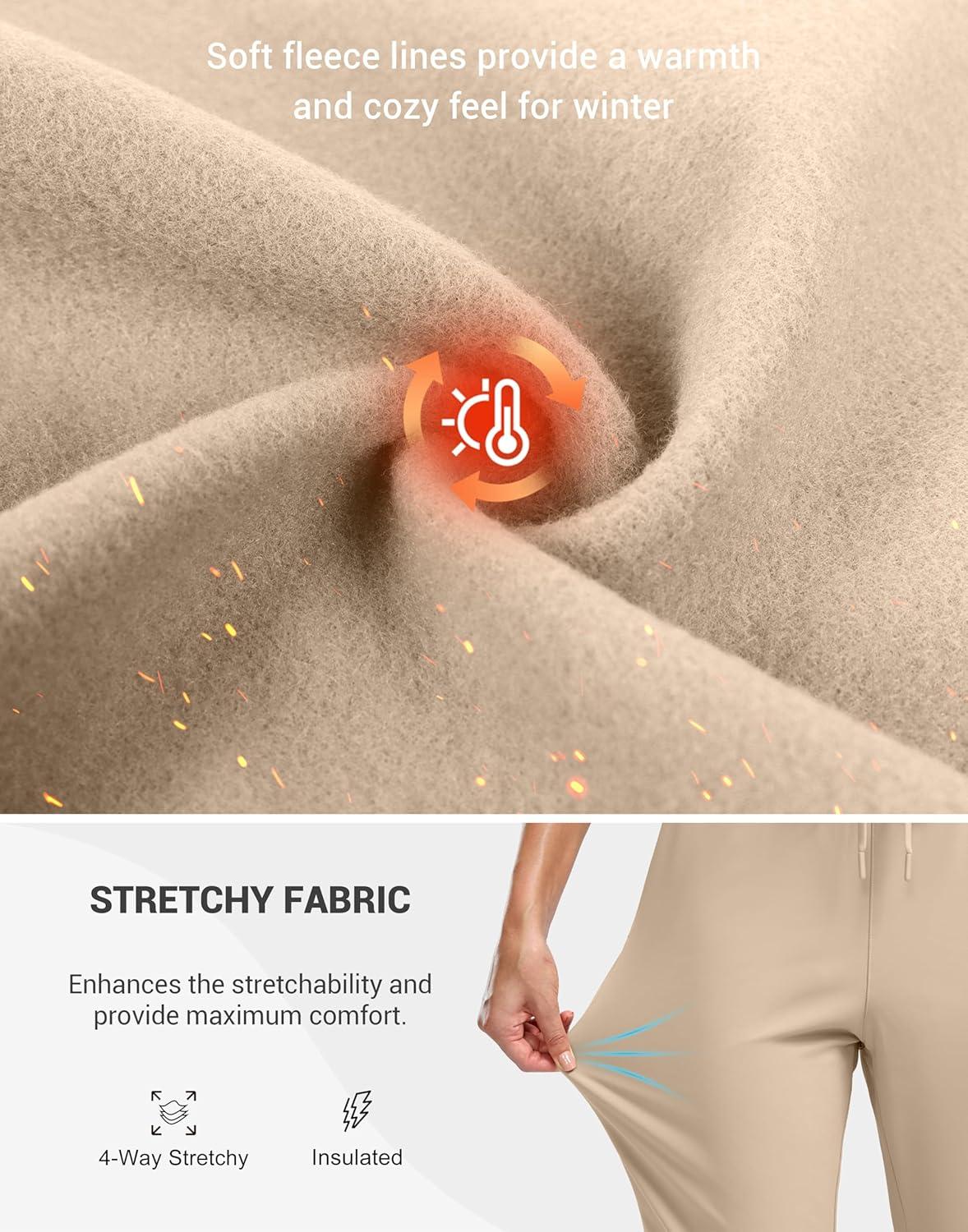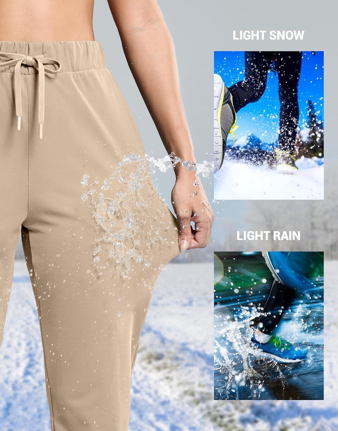 SANTINY Women’s Fleece Lined Joggers Pockets Drawstring Waterproof Sweatpants Thermal Ski Running Winter Hiking Pants Women(Khaki)