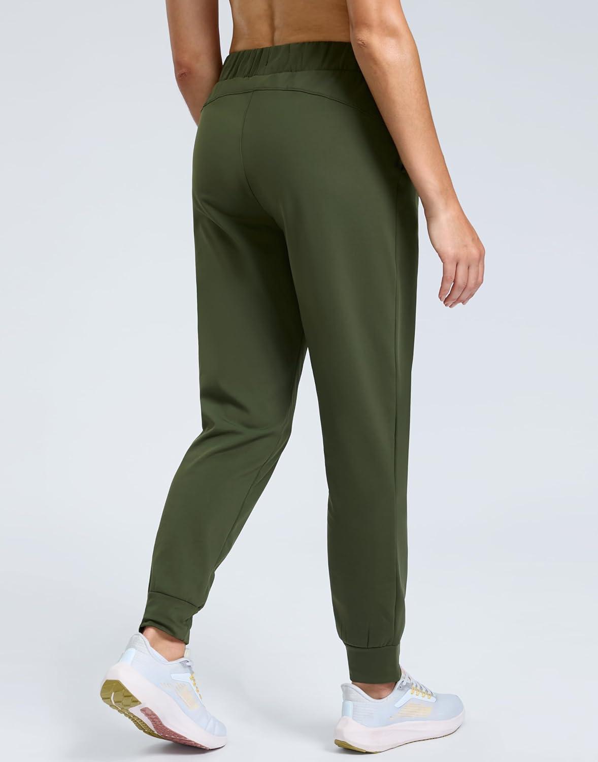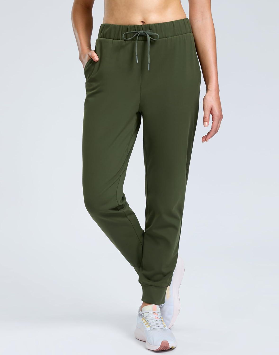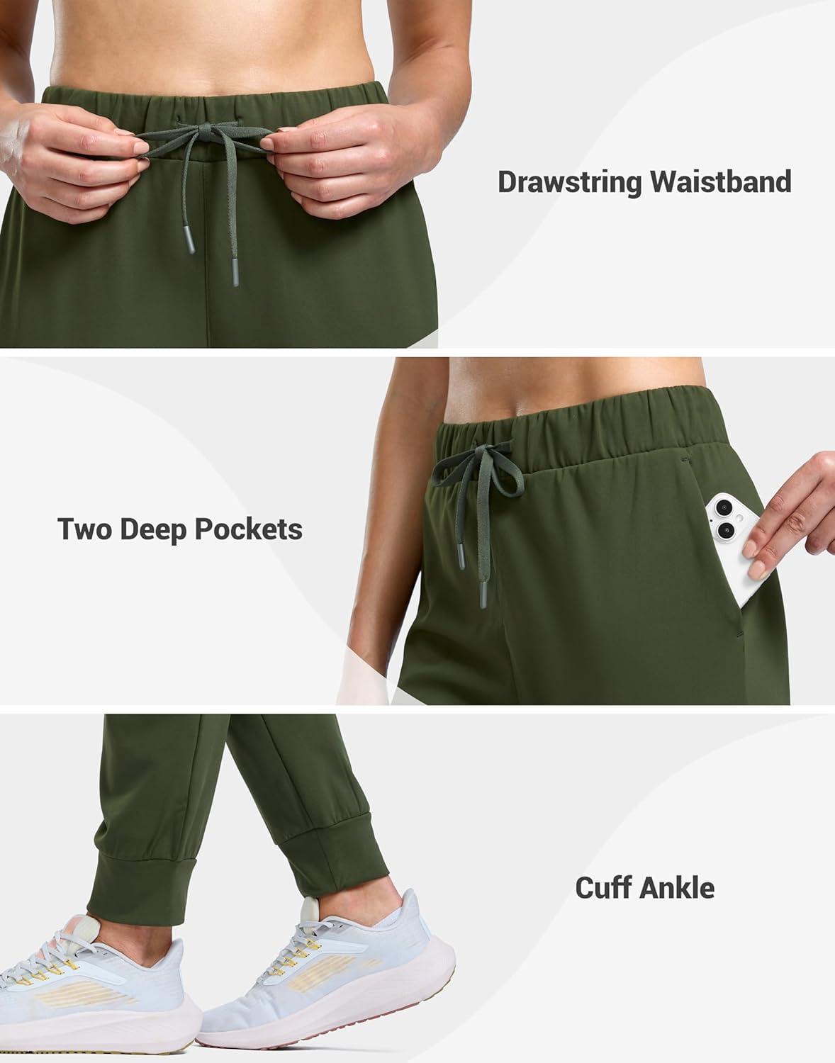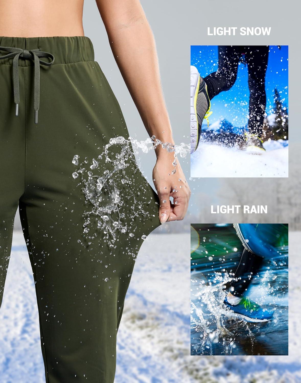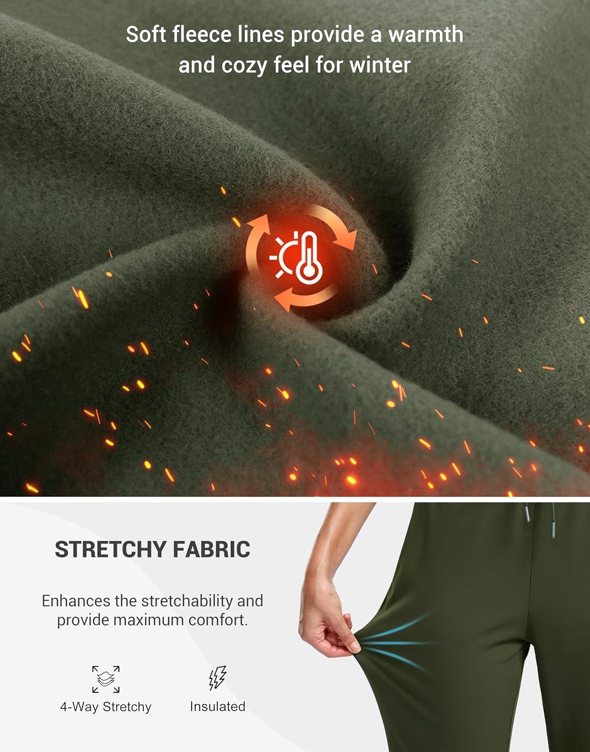 SANTINY Women’s Fleece Lined Joggers Pockets Drawstring Waterproof Sweatpants Thermal Ski Running Winter Hiking Pants Women(Olive Green)