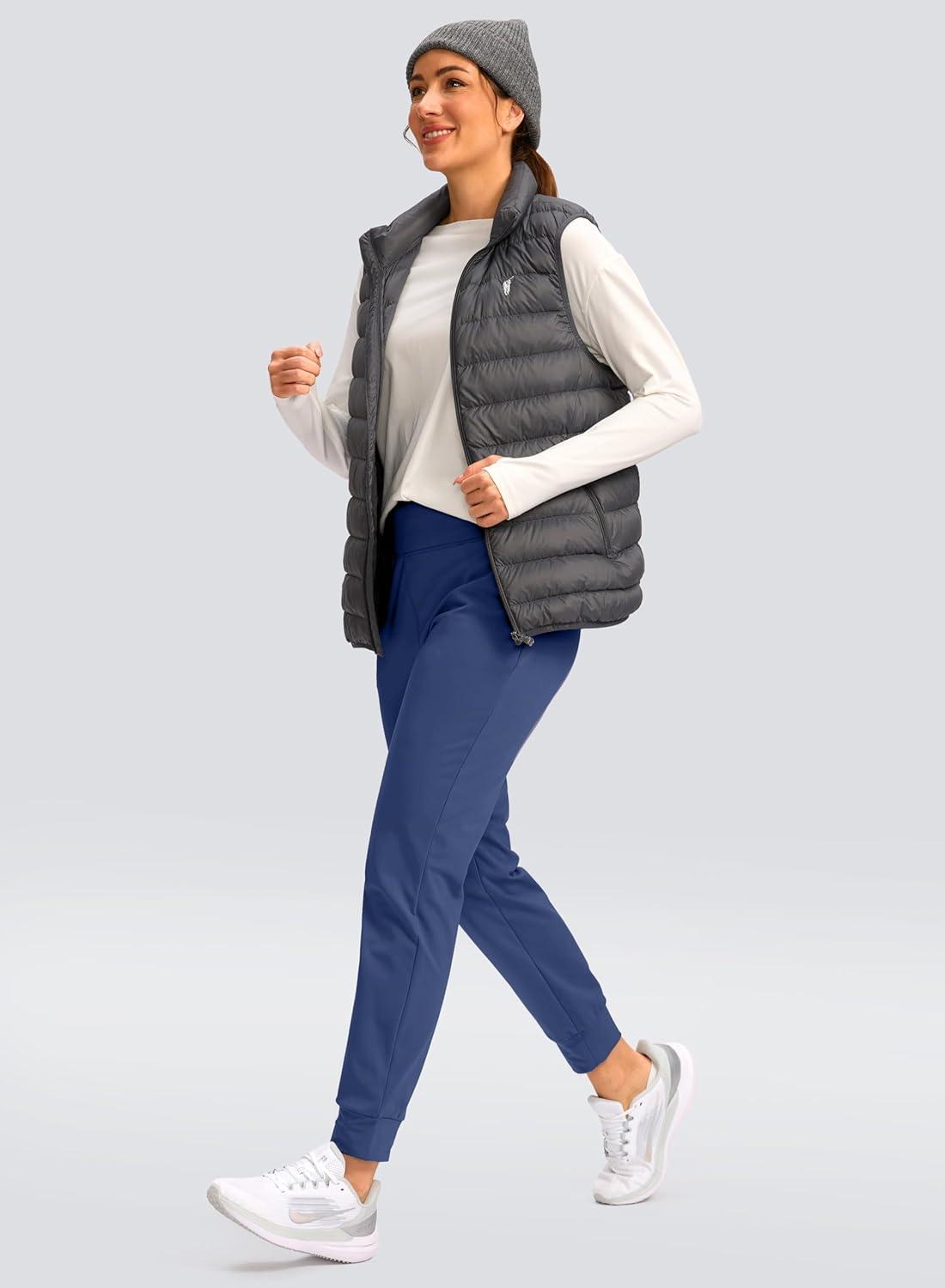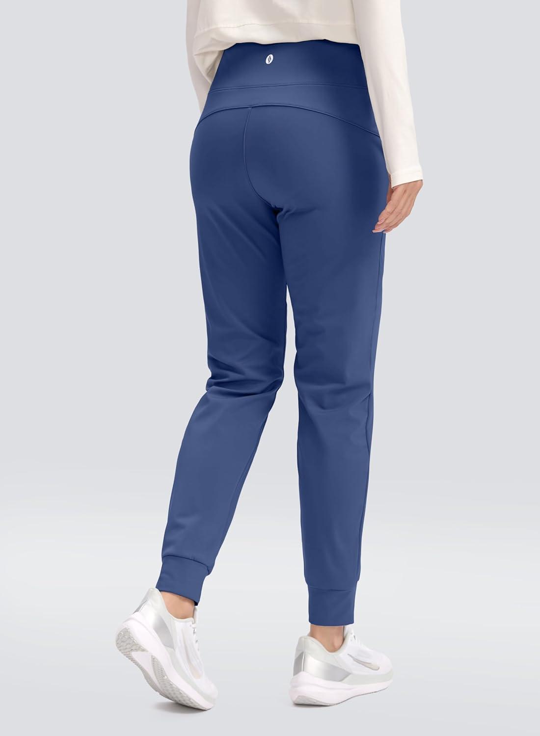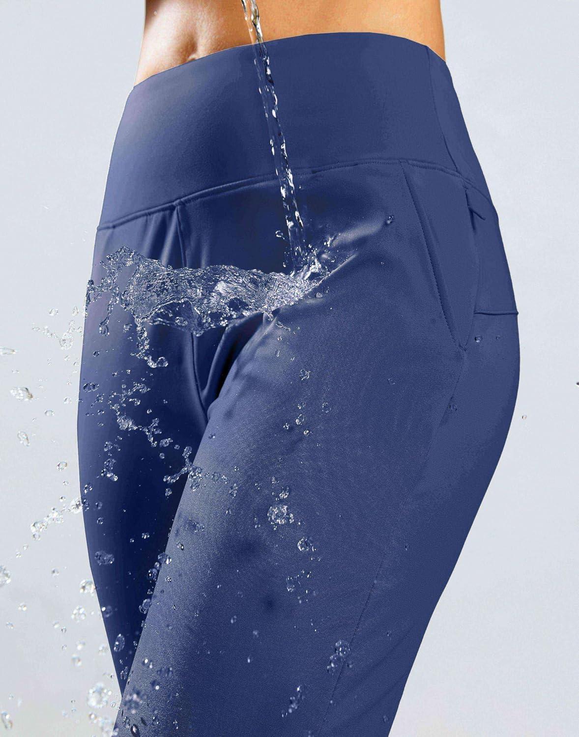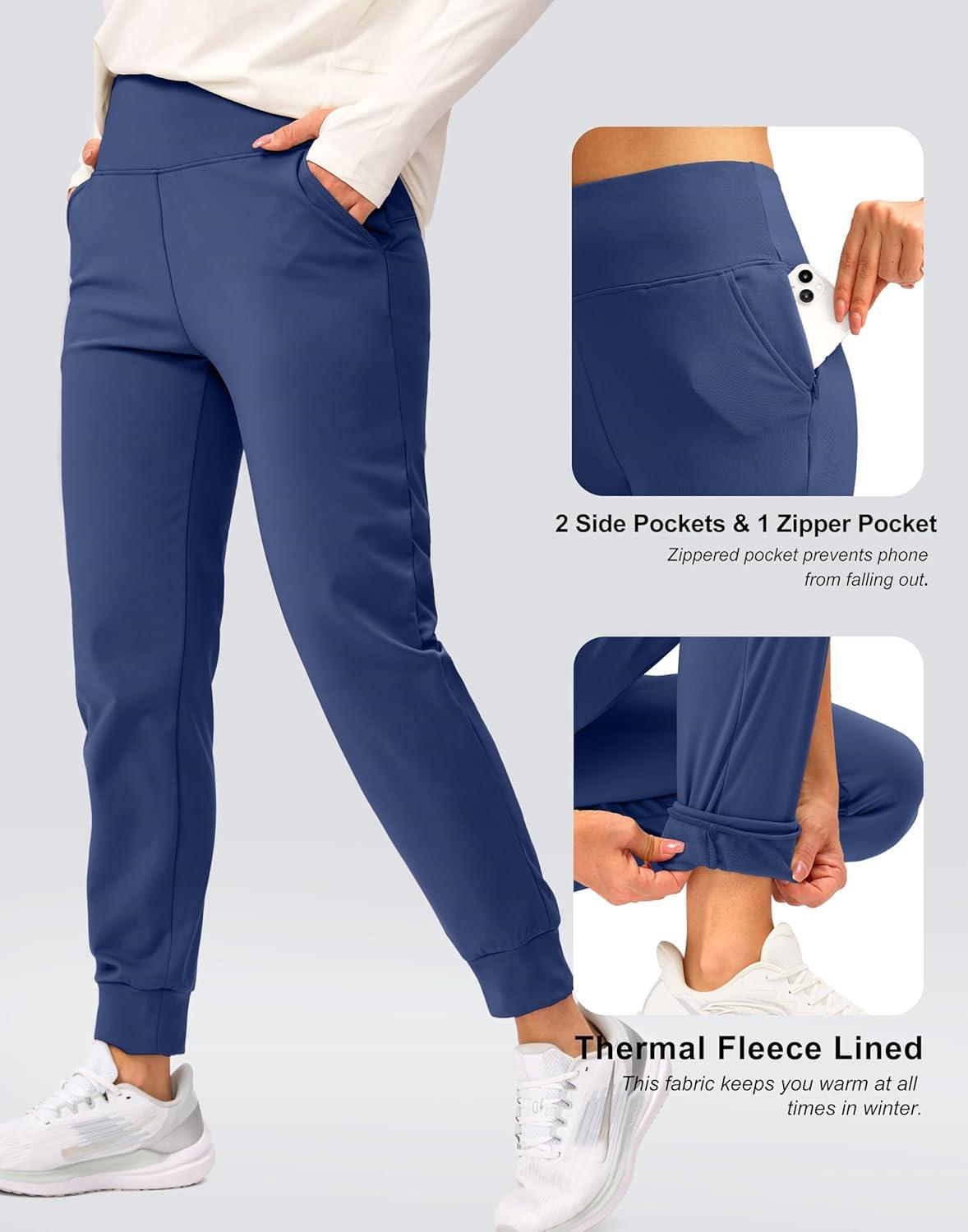 SANTINY Women’s Fleece Lined Joggers Water Resistant High Waisted Thermal Sweatpants Winter Pants Hiking Running Pockets(Dark Blue)