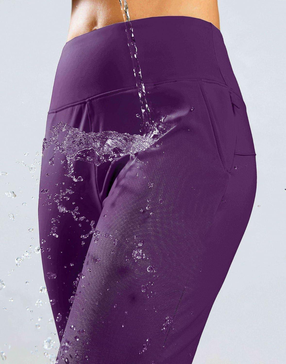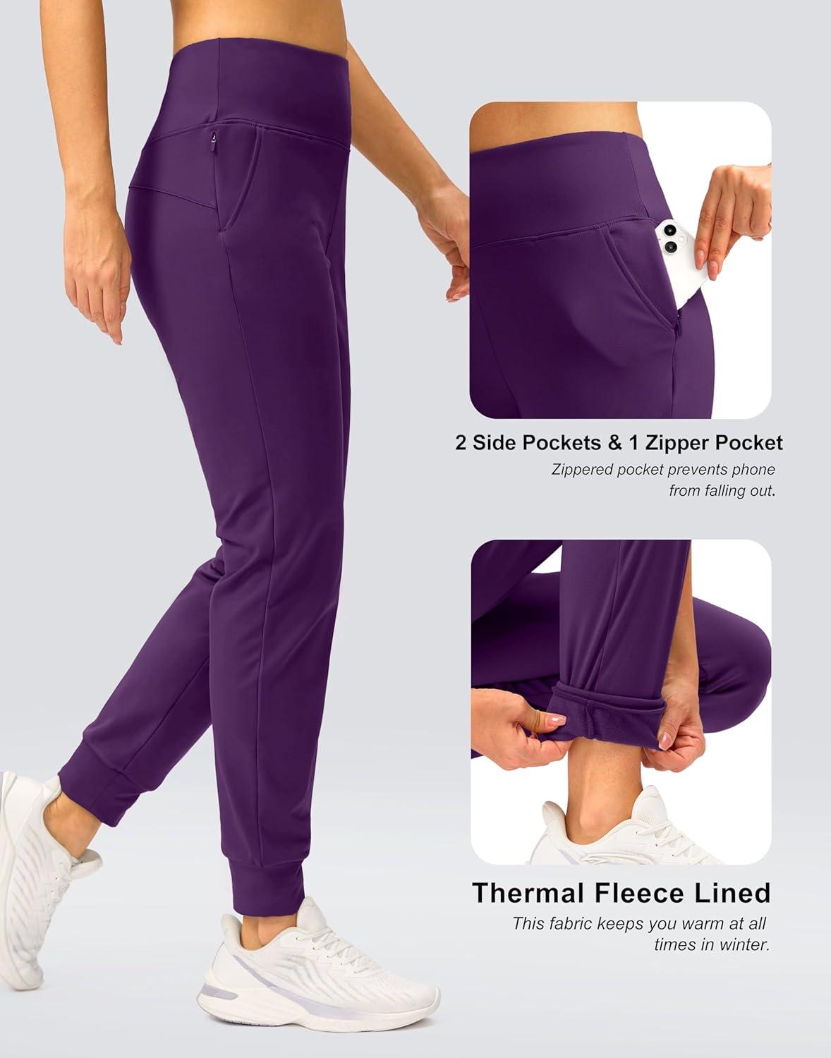SANTINY Women’s Fleece Lined Joggers Water Resistant High Waisted Thermal Sweatpants Winter Pants Hiking Running Pockets(Dark Purple)