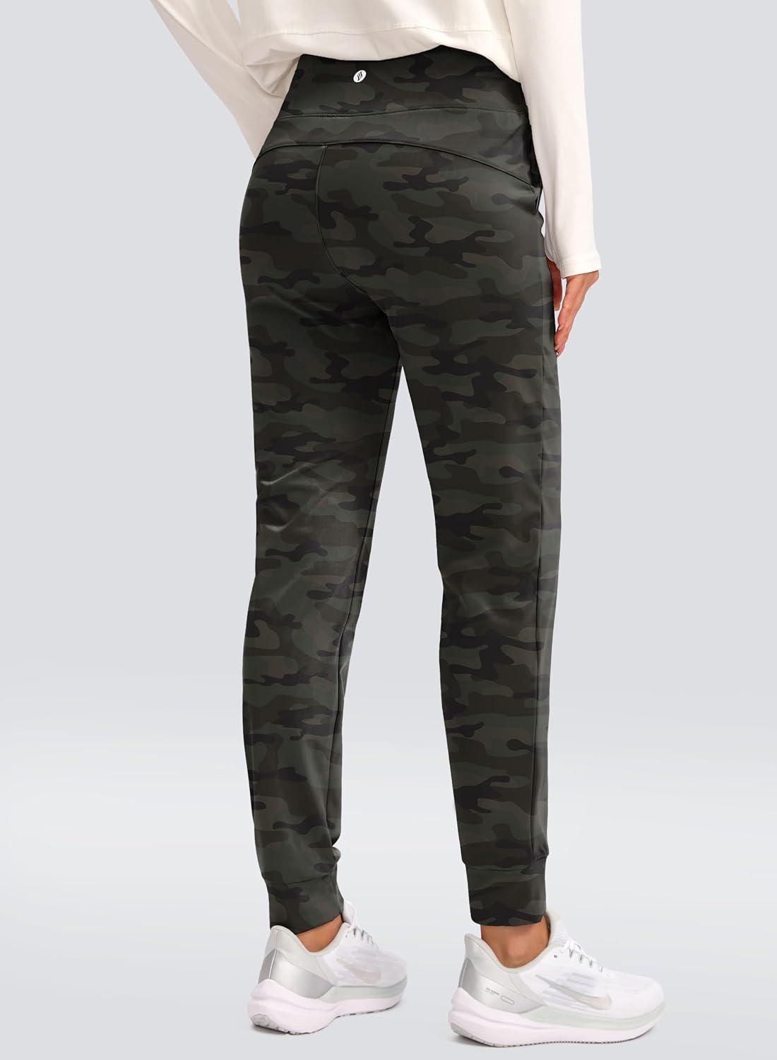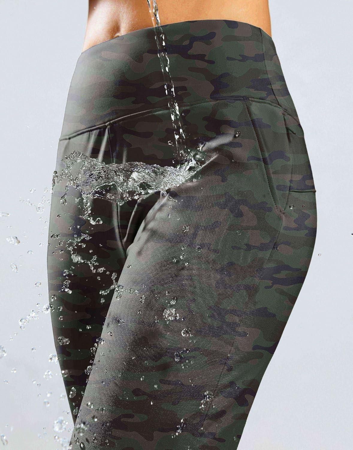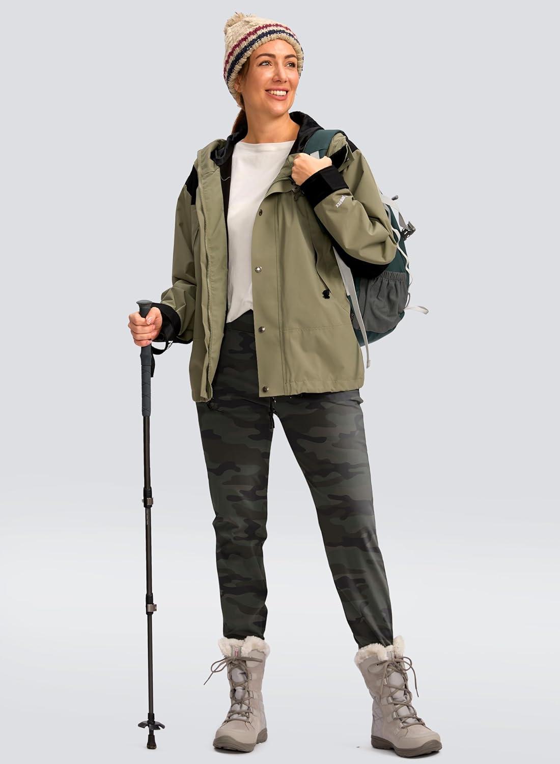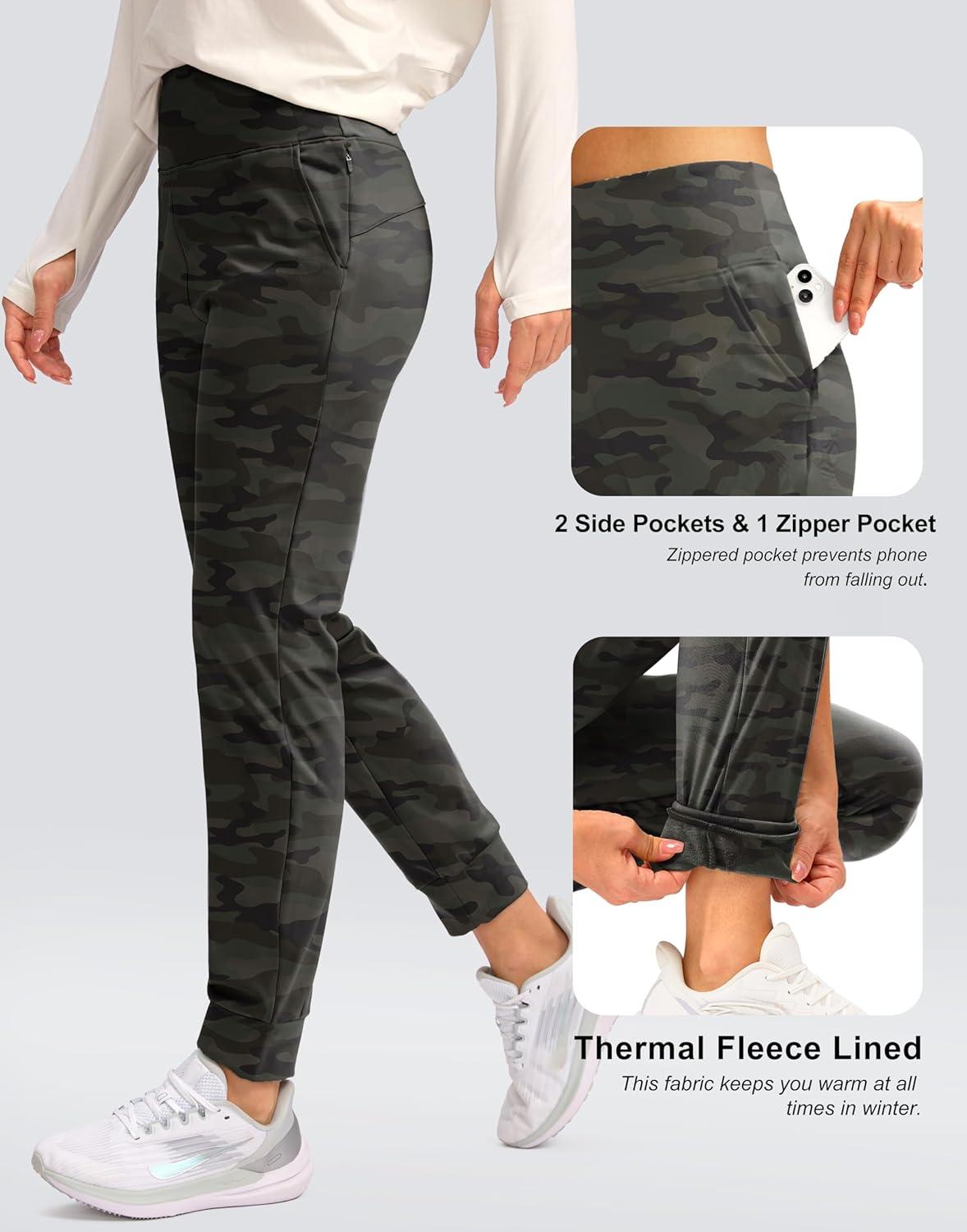 SANTINY Women’s Fleece Lined Joggers Water Resistant High Waisted Thermal Sweatpants Winter Pants Hiking Running Pockets(Green Camo)