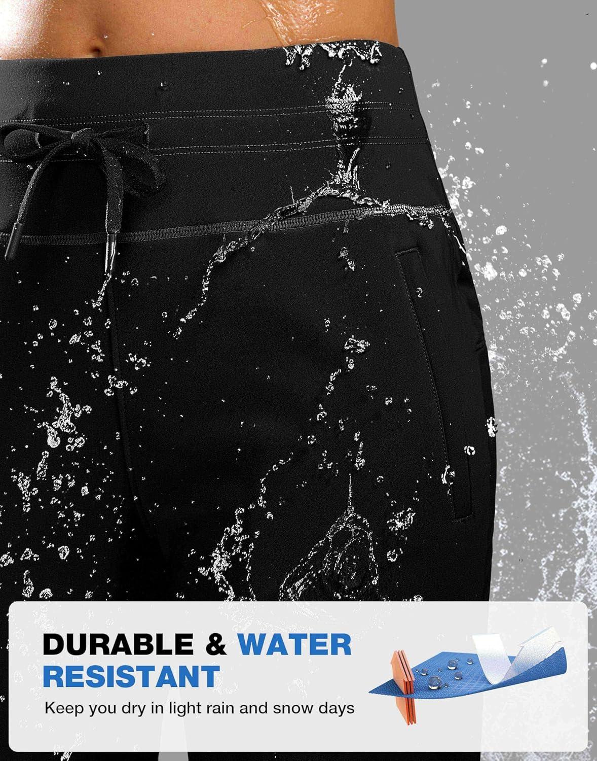 SANTINY Women’s Fleece Lined Pants 29″ Winter Warm Sweatpants Water Resistant Snow Ski Hiking Pants with Zipper Pockets(A Black)