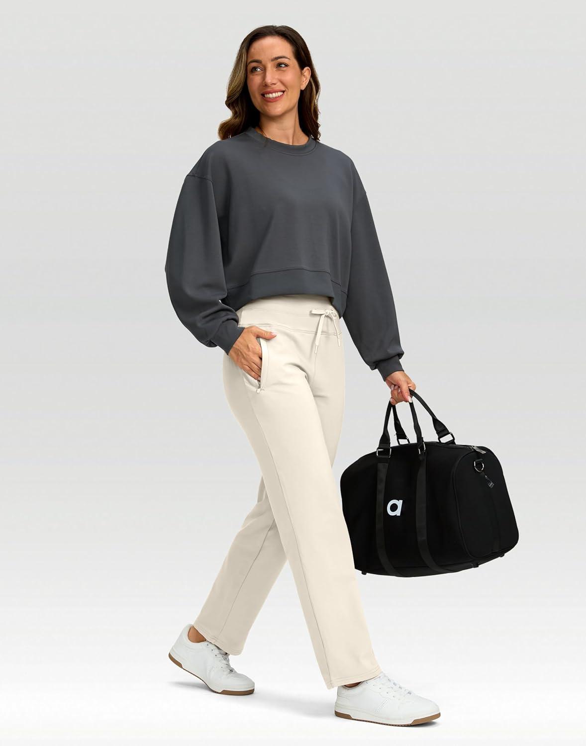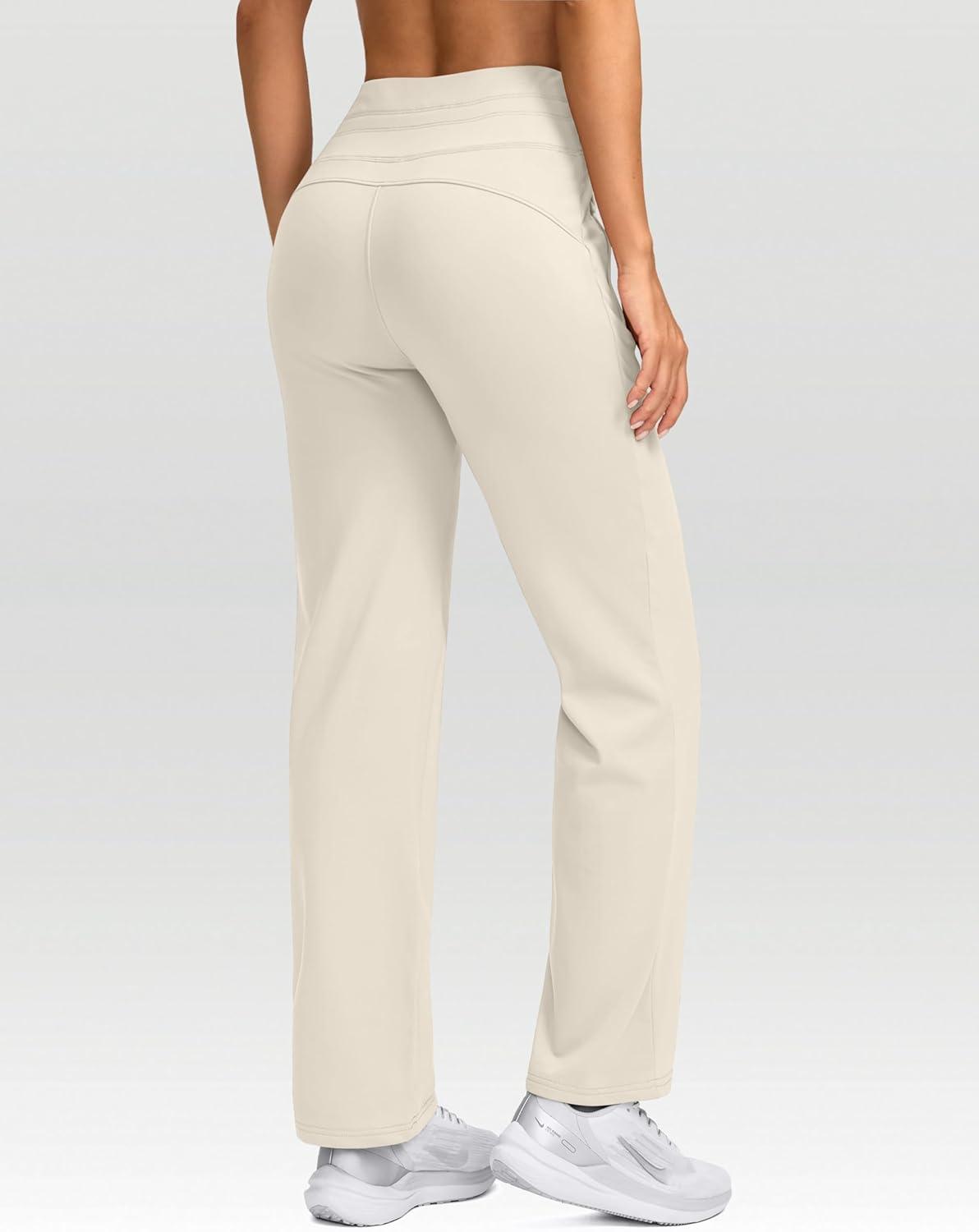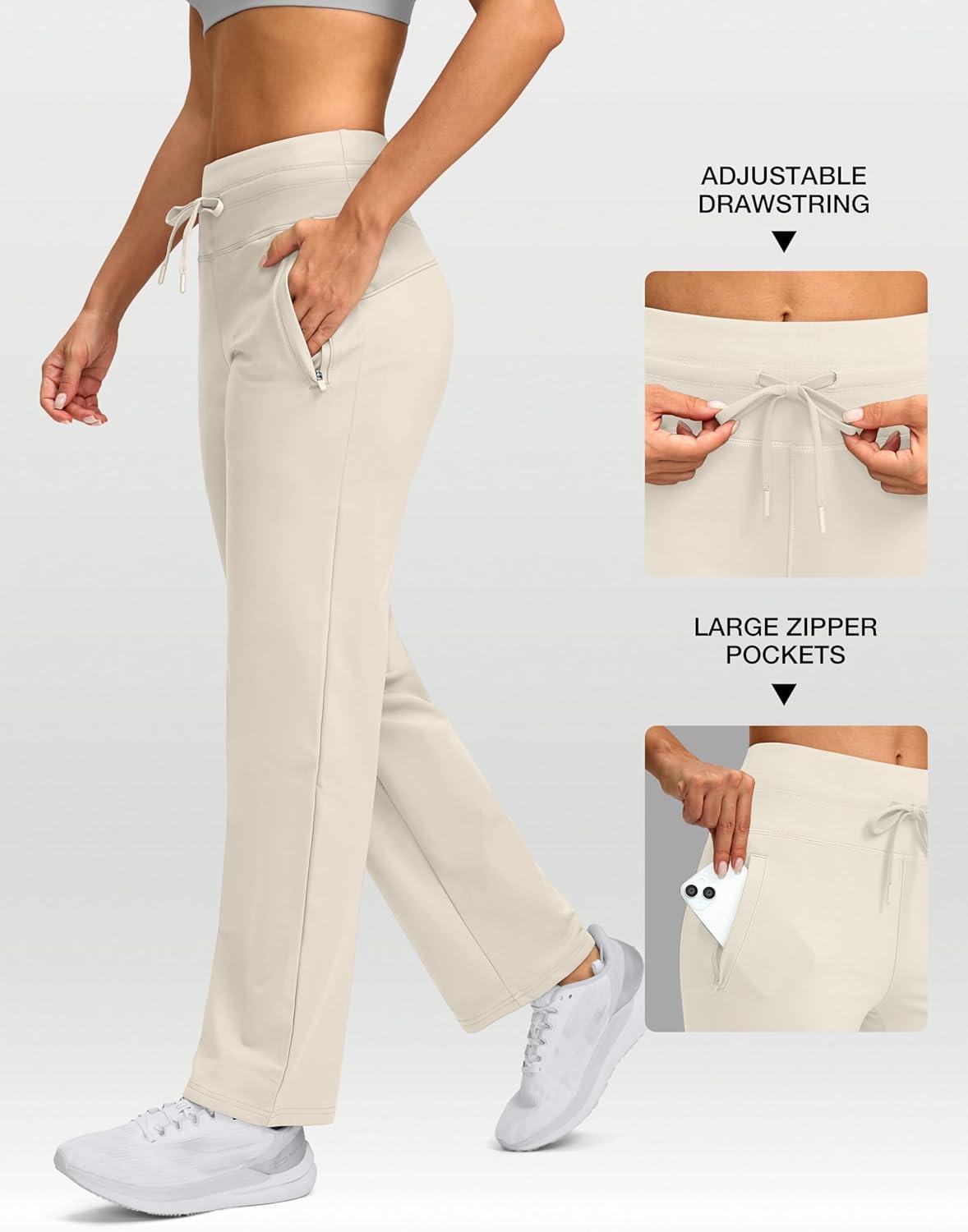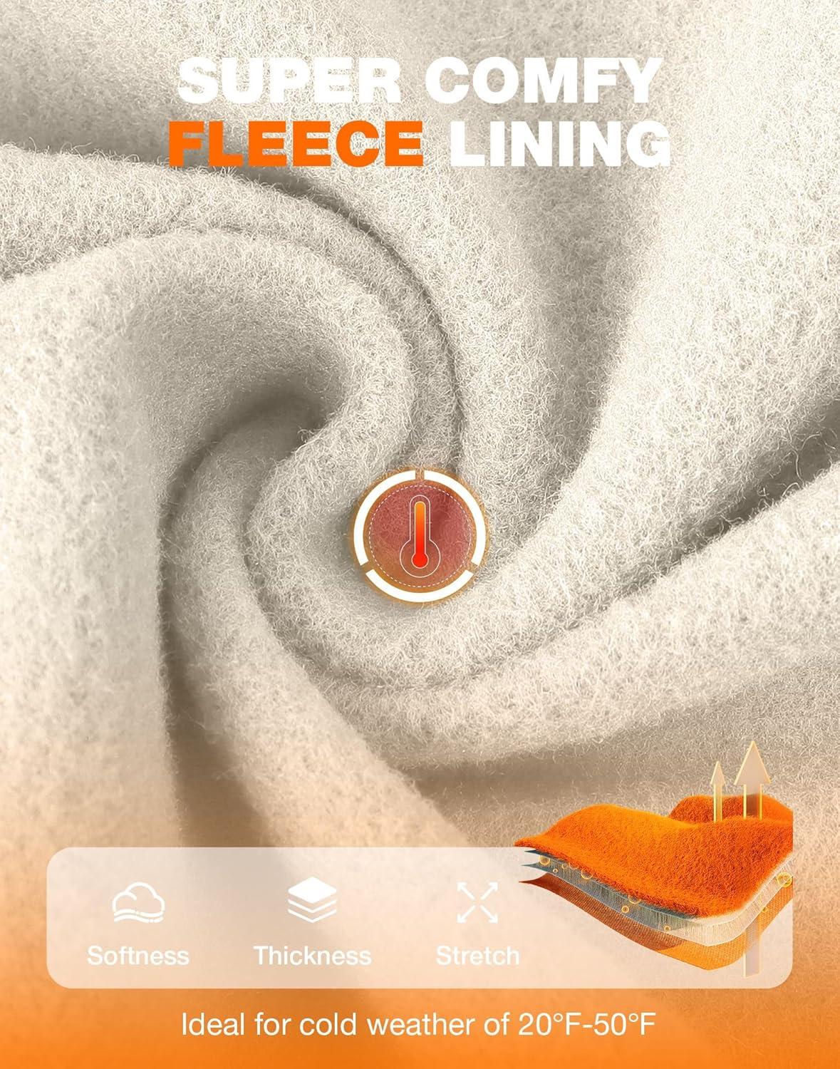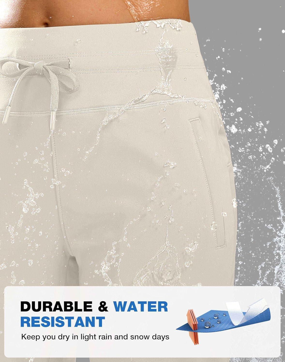 SANTINY Women’s Fleece Lined Pants 29″ Winter Warm Sweatpants Water Resistant Snow Ski Hiking Pants with Zipper Pockets(Beige)