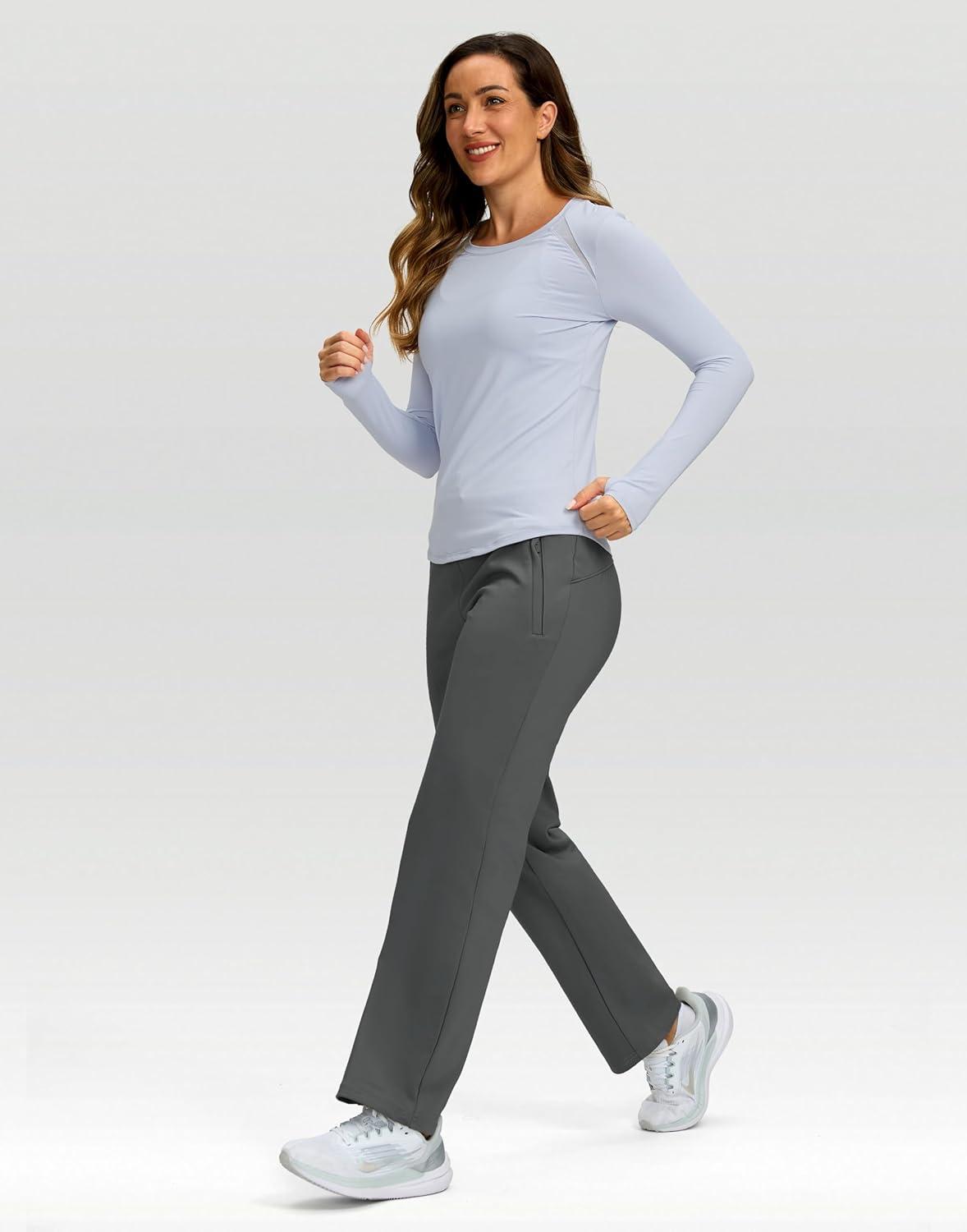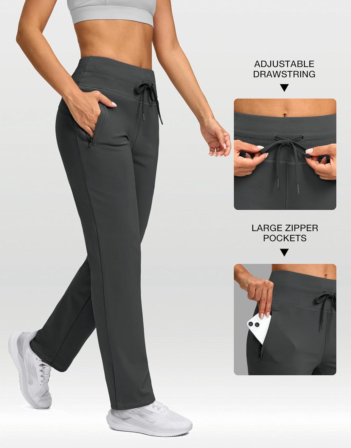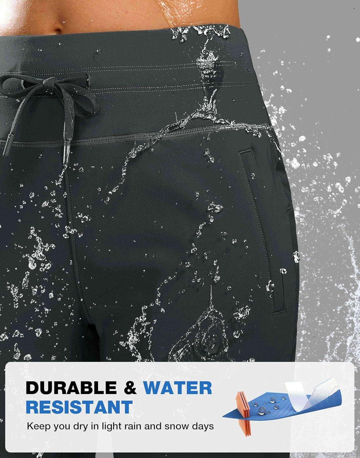 SANTINY Women’s Fleece Lined Pants 29″ Winter Warm Sweatpants Water Resistant Snow Ski Hiking Pants with Zipper Pockets(Dark Grey)