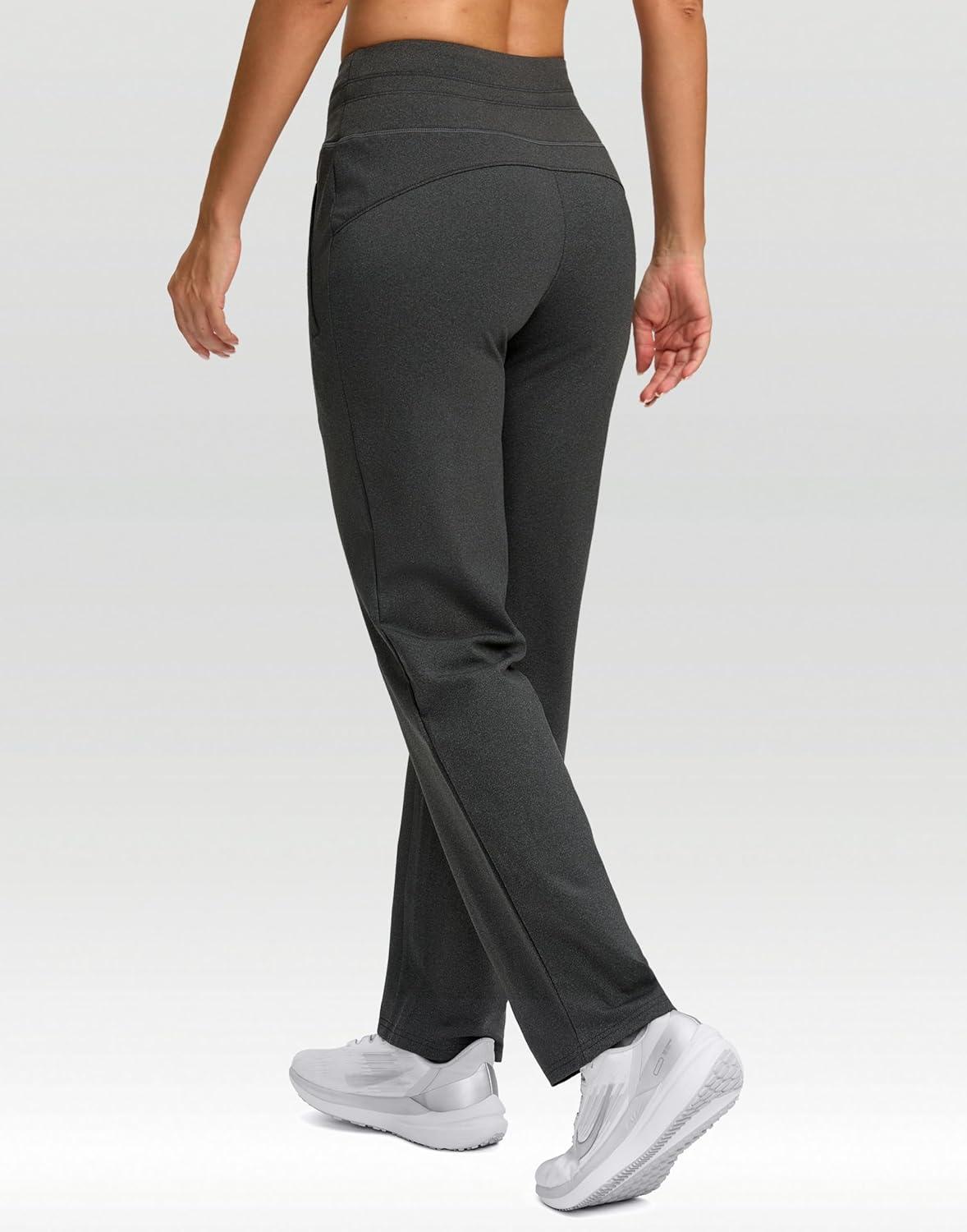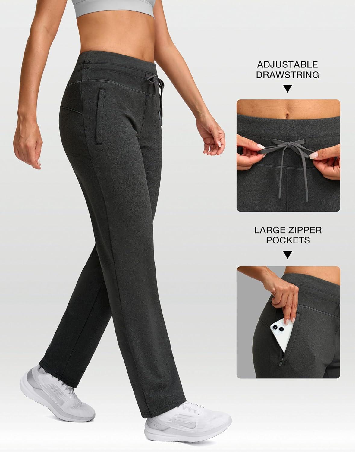 SANTINY Women’s Fleece Lined Pants 29″ Winter Warm Sweatpants Water Resistant Snow Ski Hiking Pants with Zipper Pockets(Dark Heather Grey)