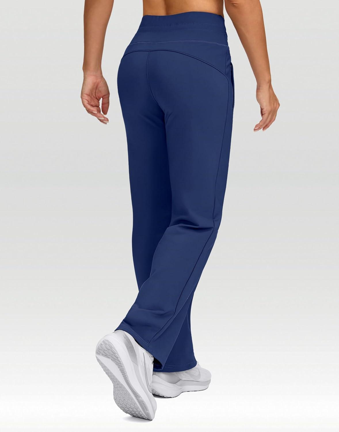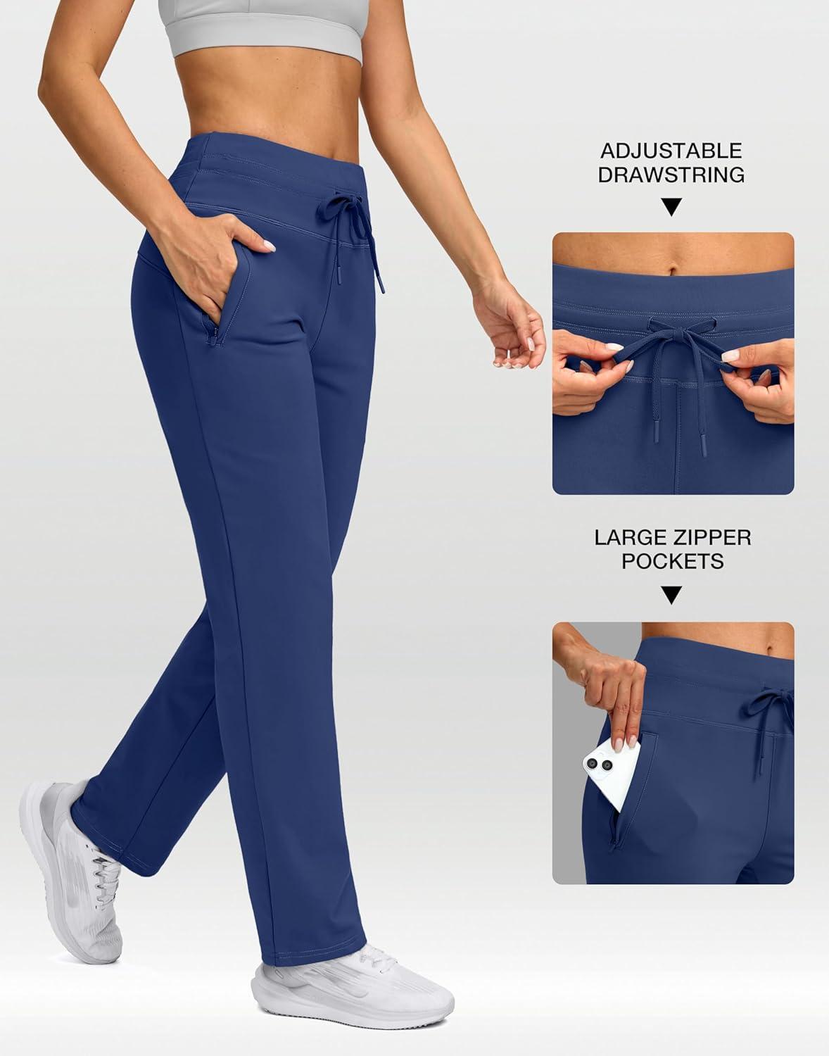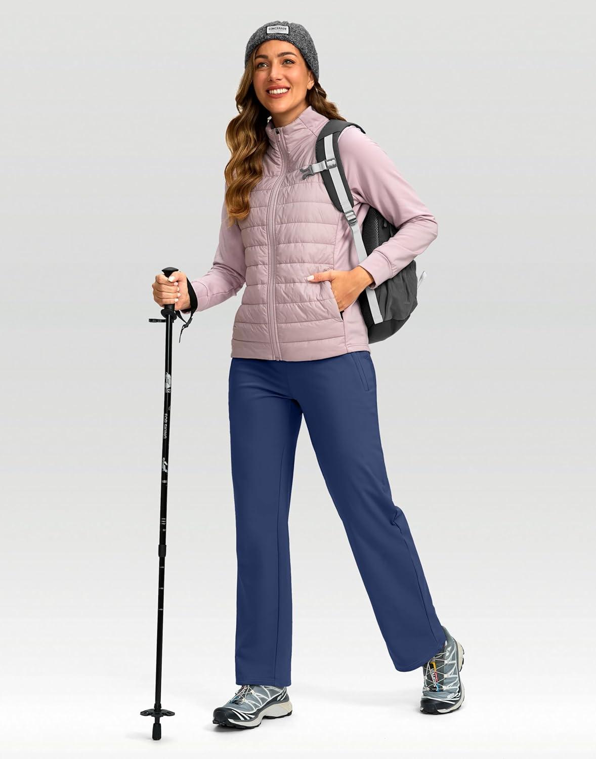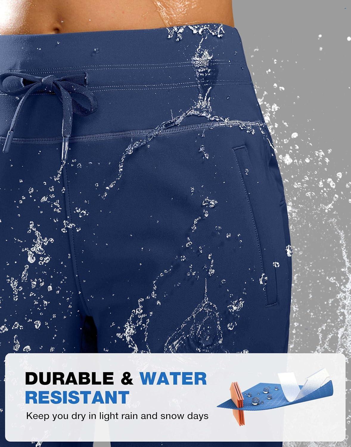 SANTINY Women’s Fleece Lined Pants 29″ Winter Warm Sweatpants Water Resistant Snow Ski Hiking Pants with Zipper Pockets(Deep Blue)