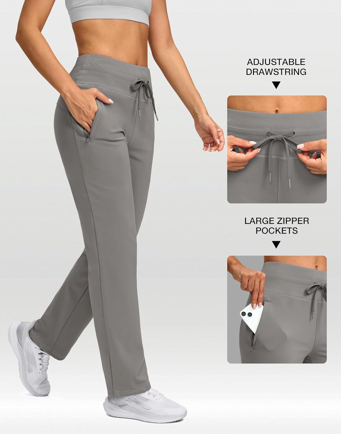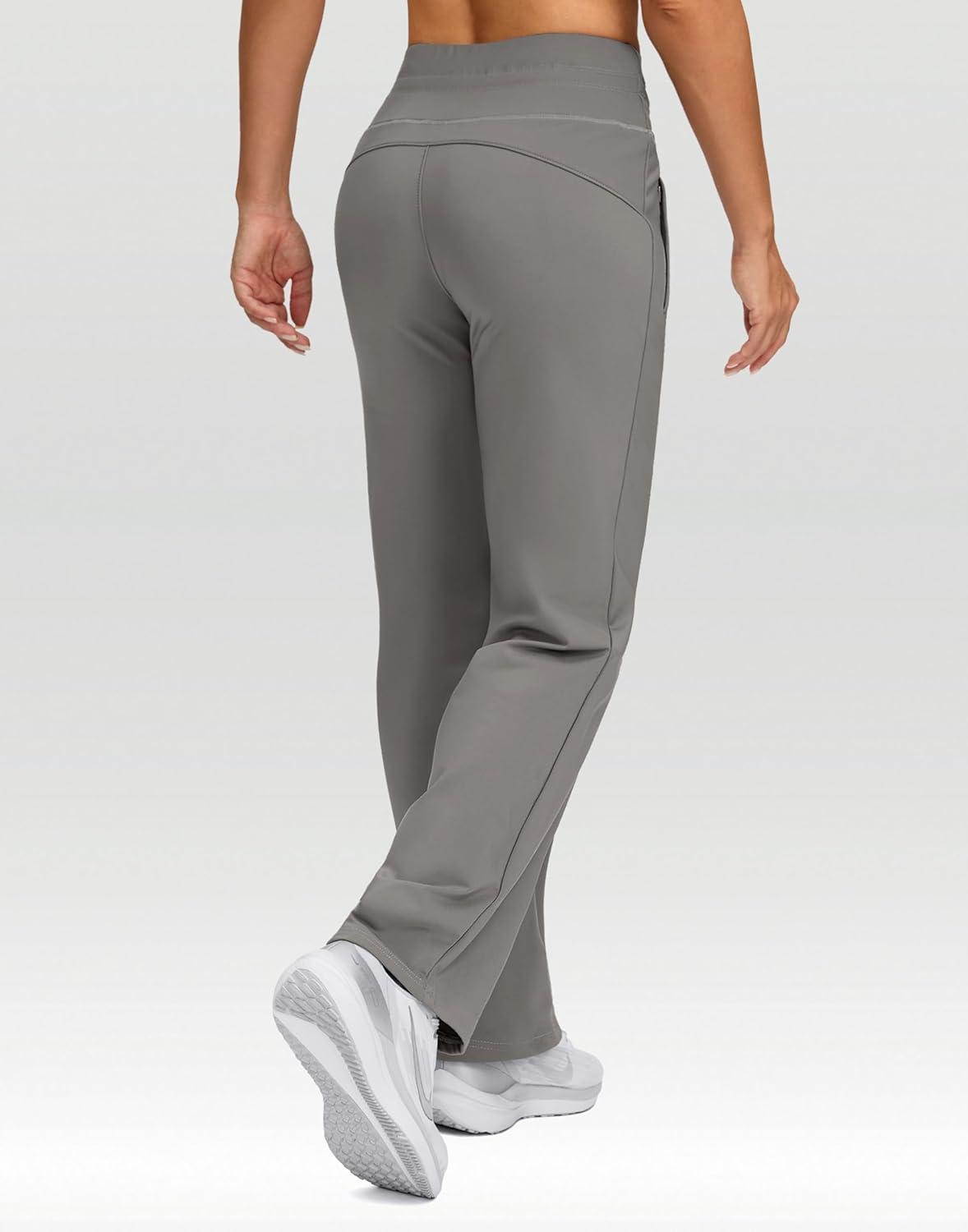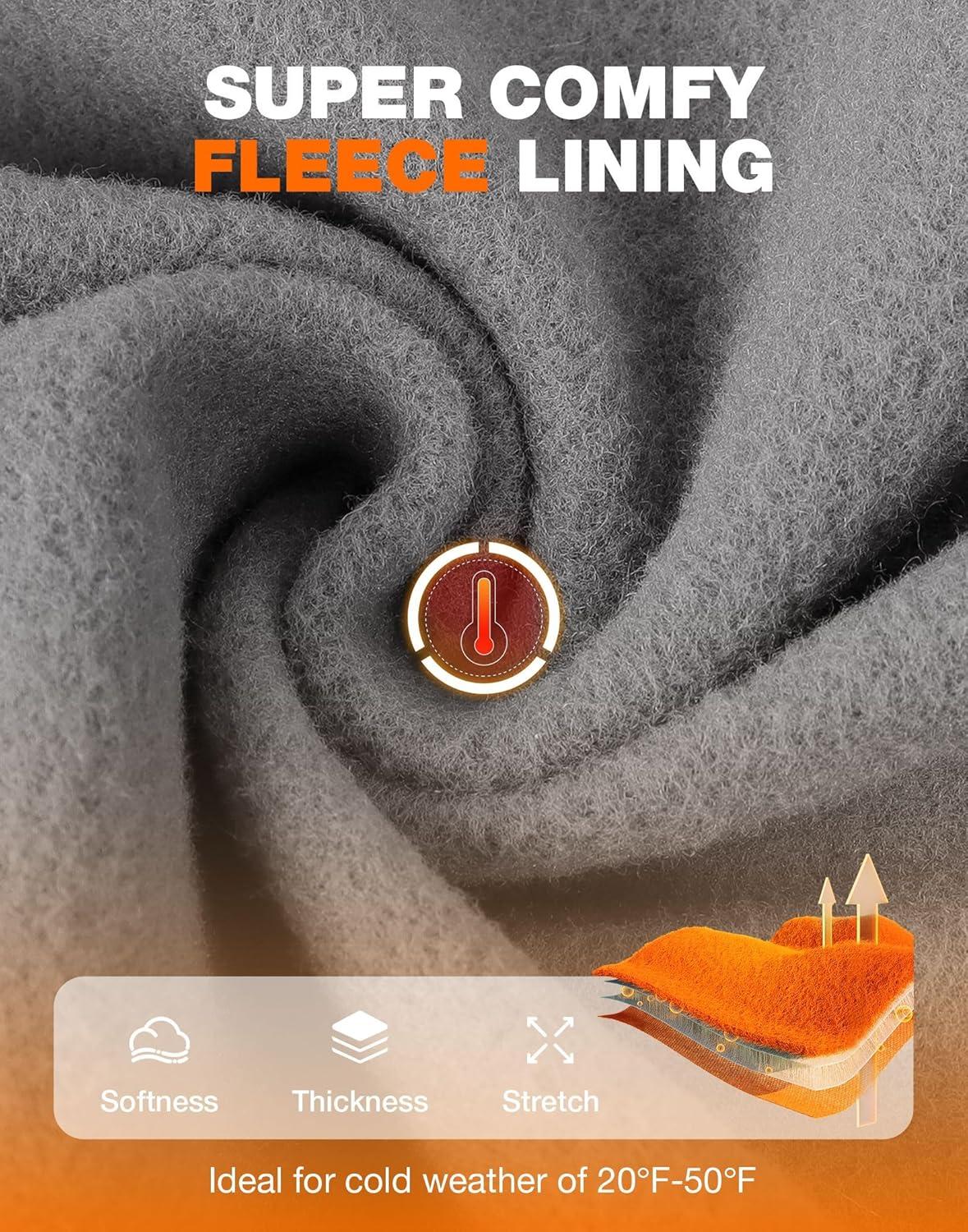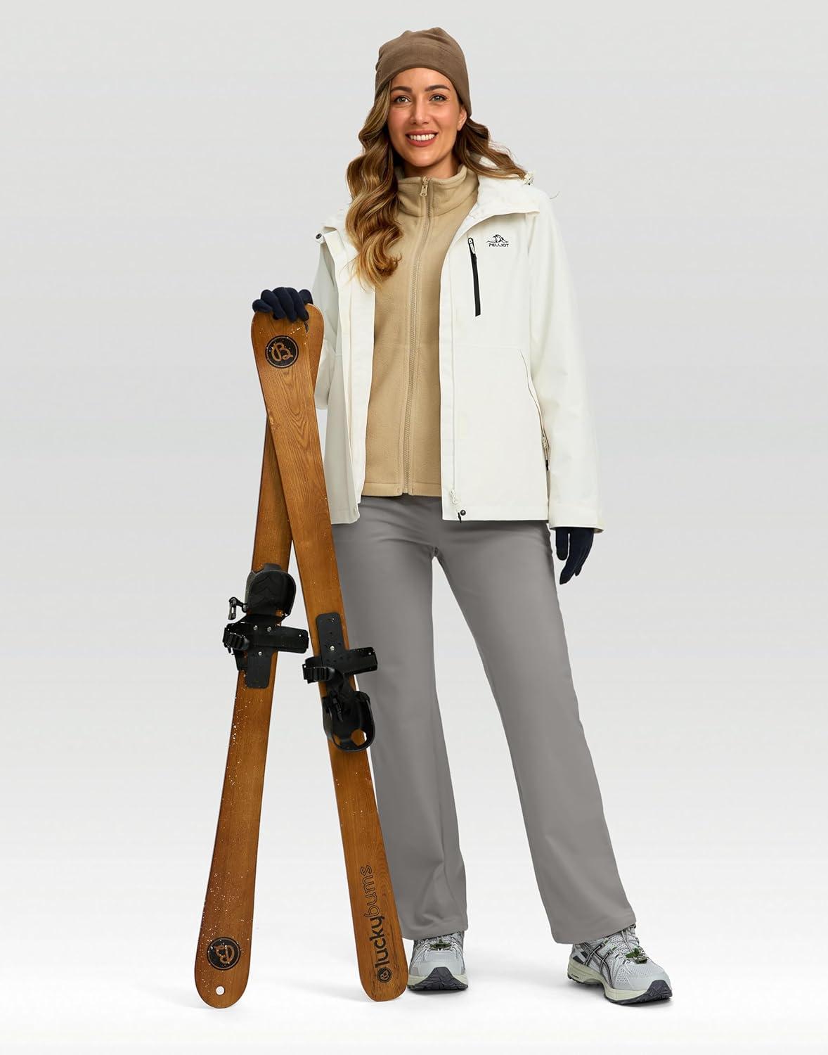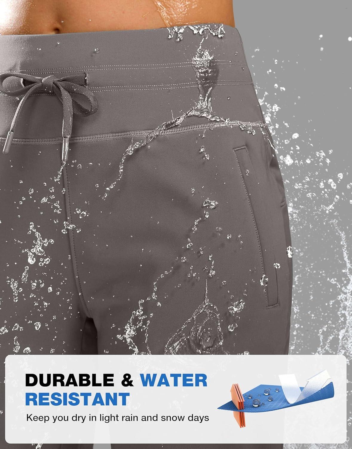 SANTINY Women’s Fleece Lined Pants 29″ Winter Warm Sweatpants Water Resistant Snow Ski Hiking Pants with Zipper Pockets(Light Grey)