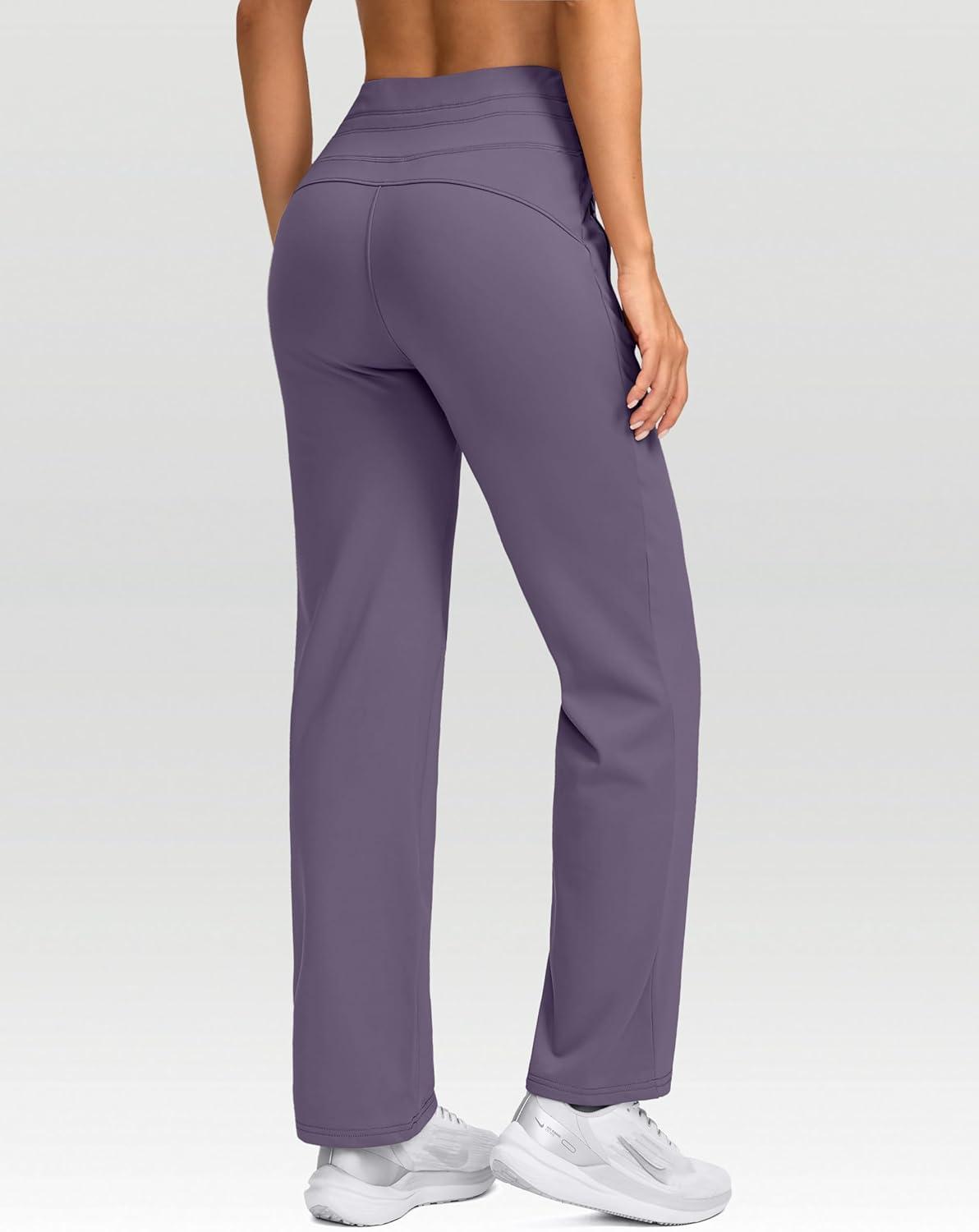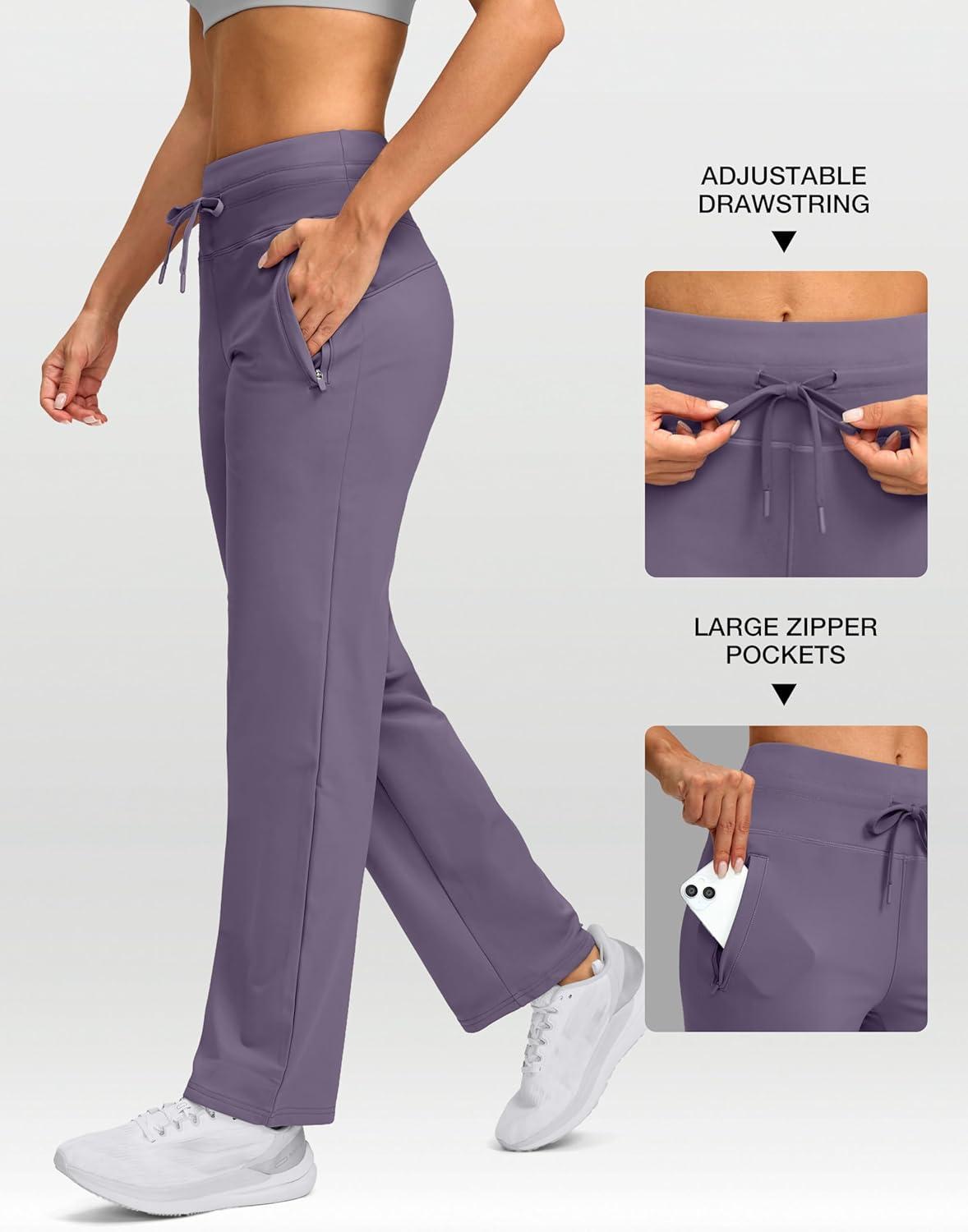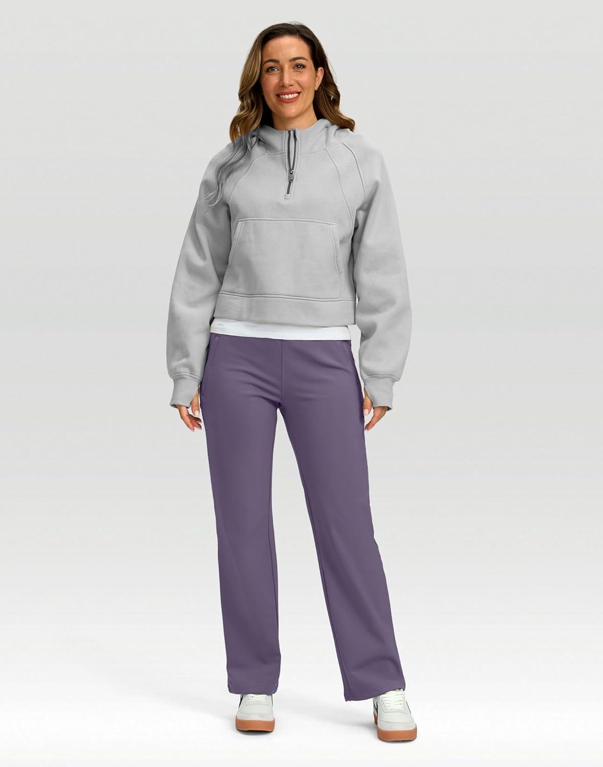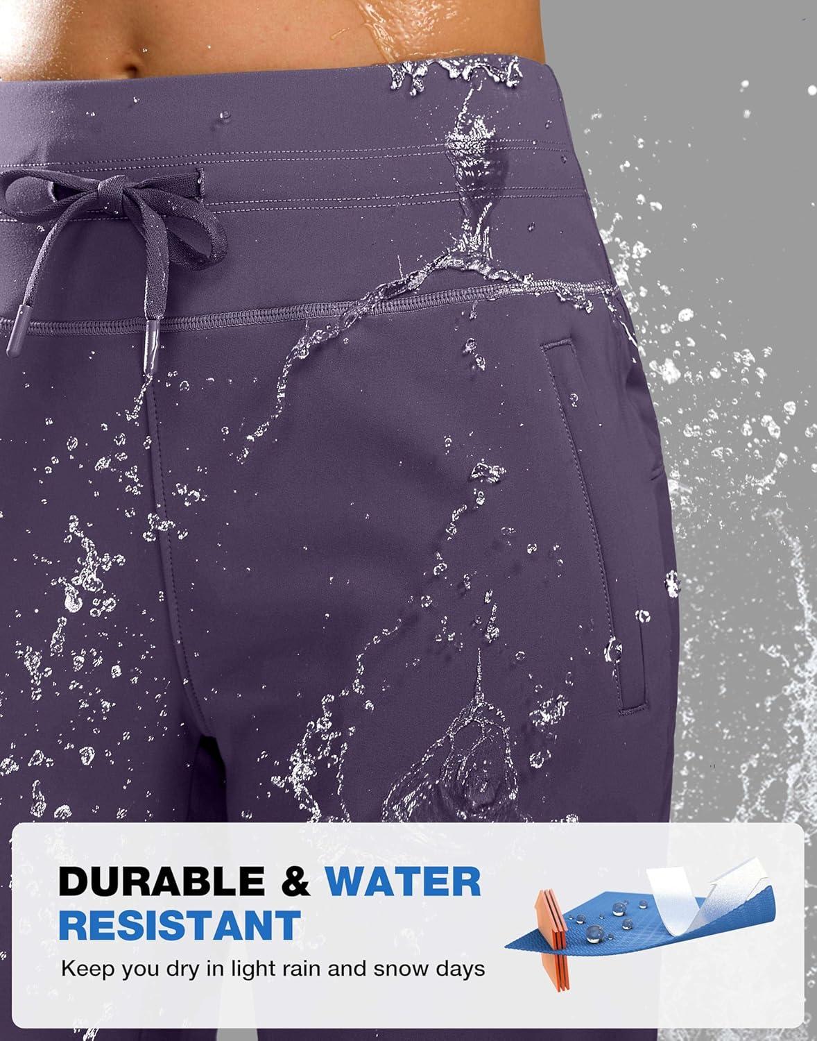 SANTINY Women’s Fleece Lined Pants 29″ Winter Warm Sweatpants Water Resistant Snow Ski Hiking Pants with Zipper Pockets(Lilac)
