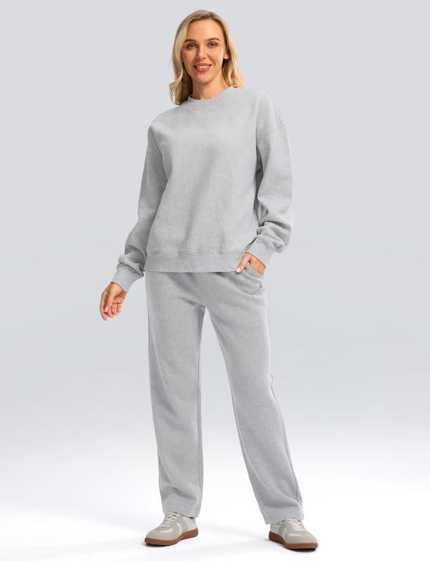 SANTINY Women’s Fleece Lined Sweatpants Cotton Straight Leg Pants with Pockets Drawstring Winter Sweat Pants for Women
