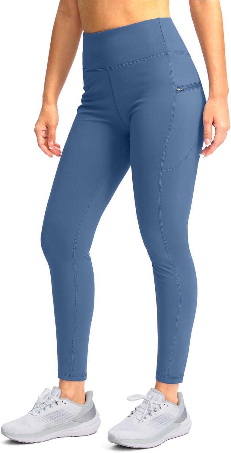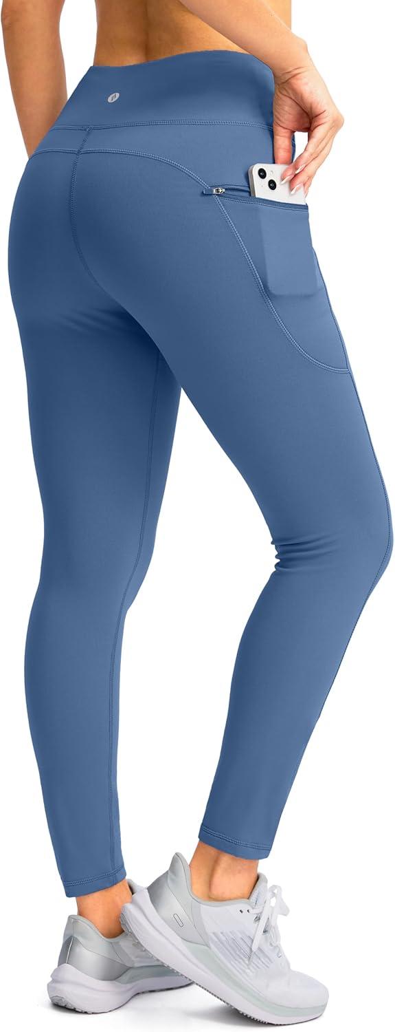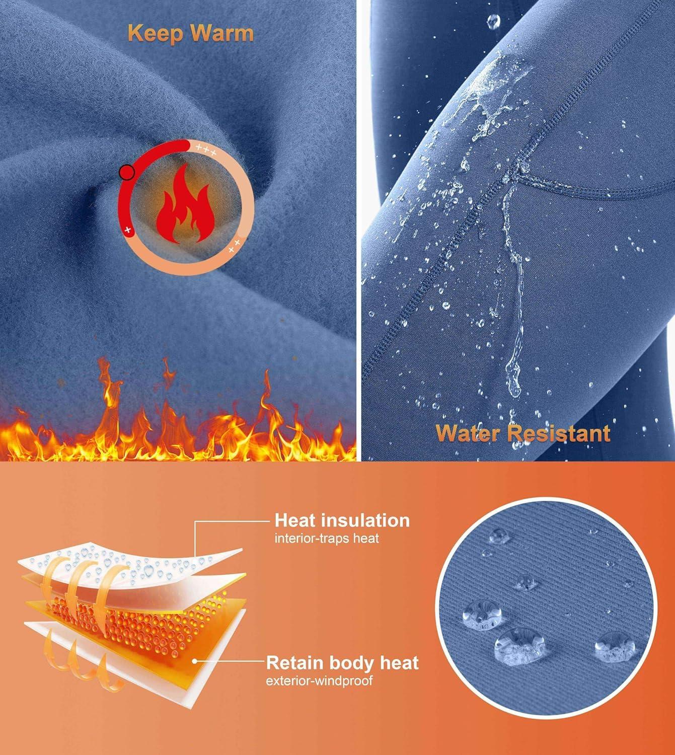 SANTINY Women’s Fleece Lined Winter Leggings Water Resistant High Waisted Thermal Hiking Running Warm Pants Women Pockets(Dark Blue)