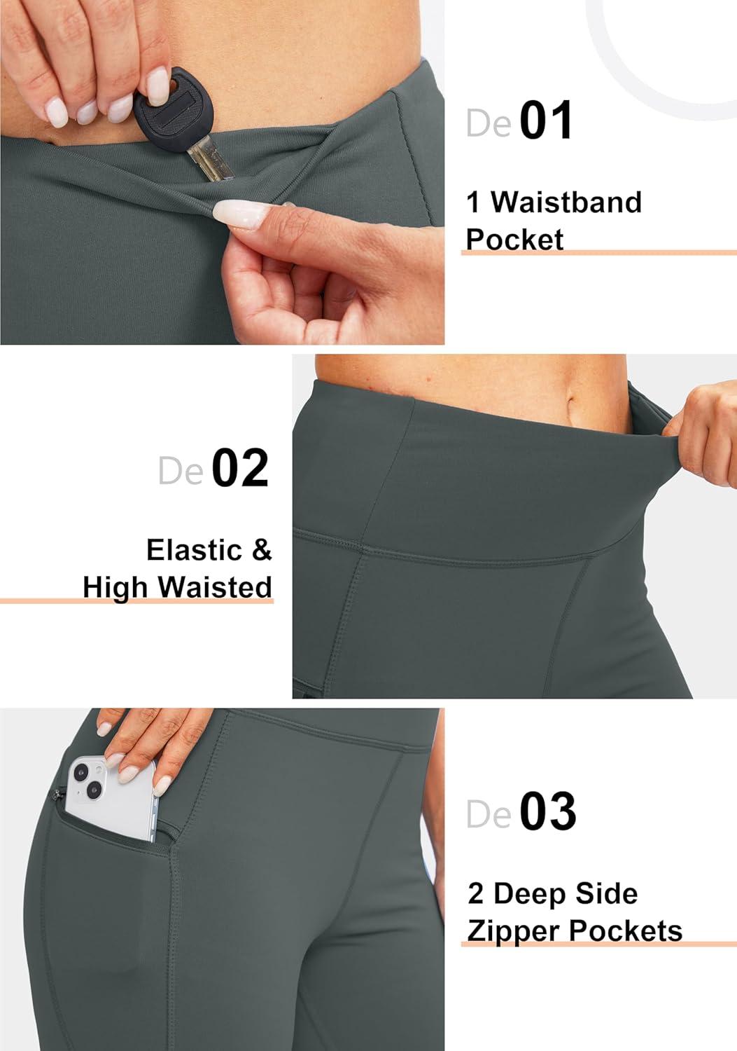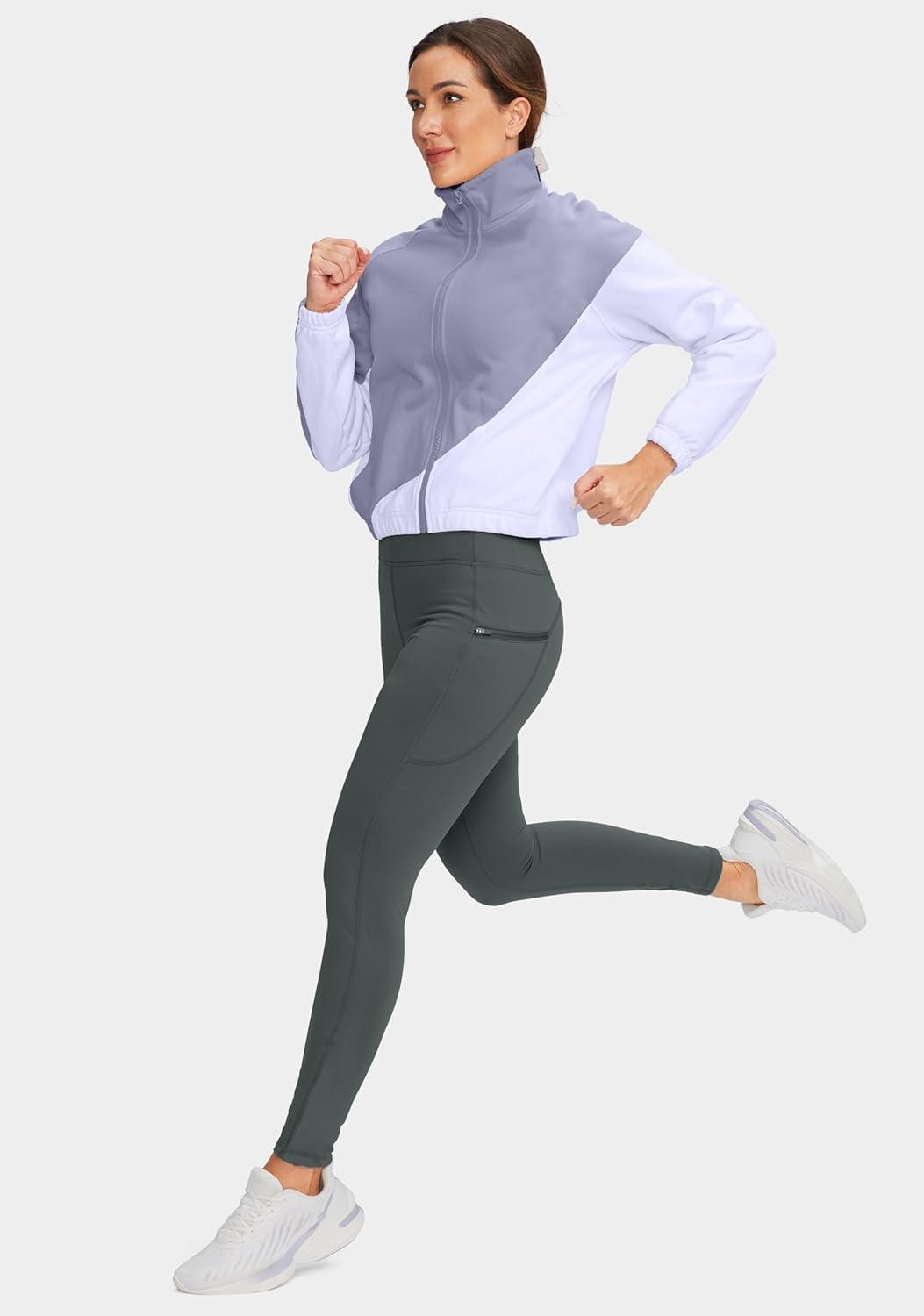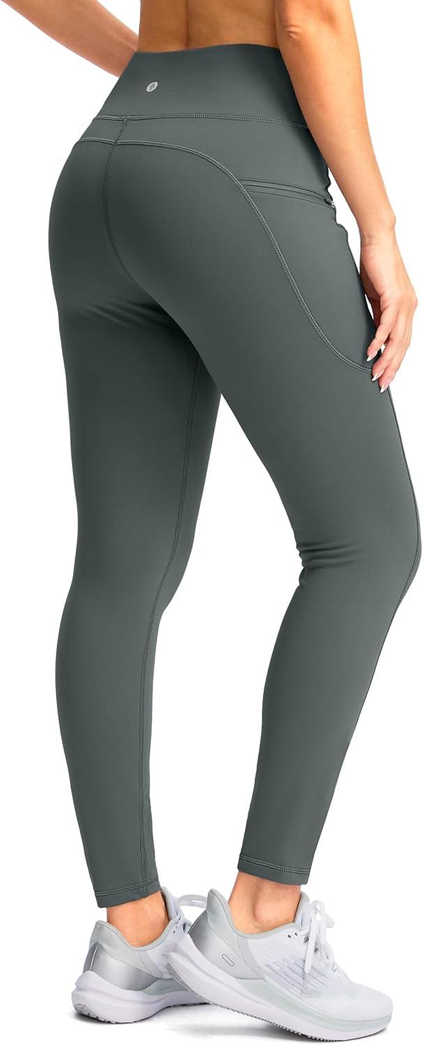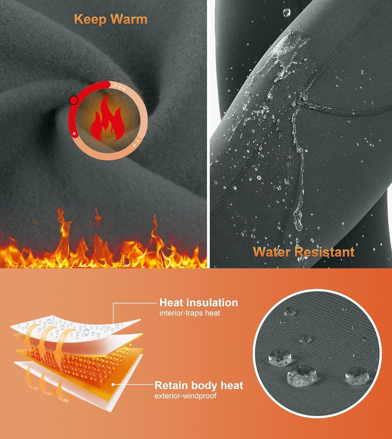 SANTINY Women’s Fleece Lined Winter Leggings Water Resistant High Waisted Thermal Hiking Running Warm Pants Women Pockets(Dark Grey)