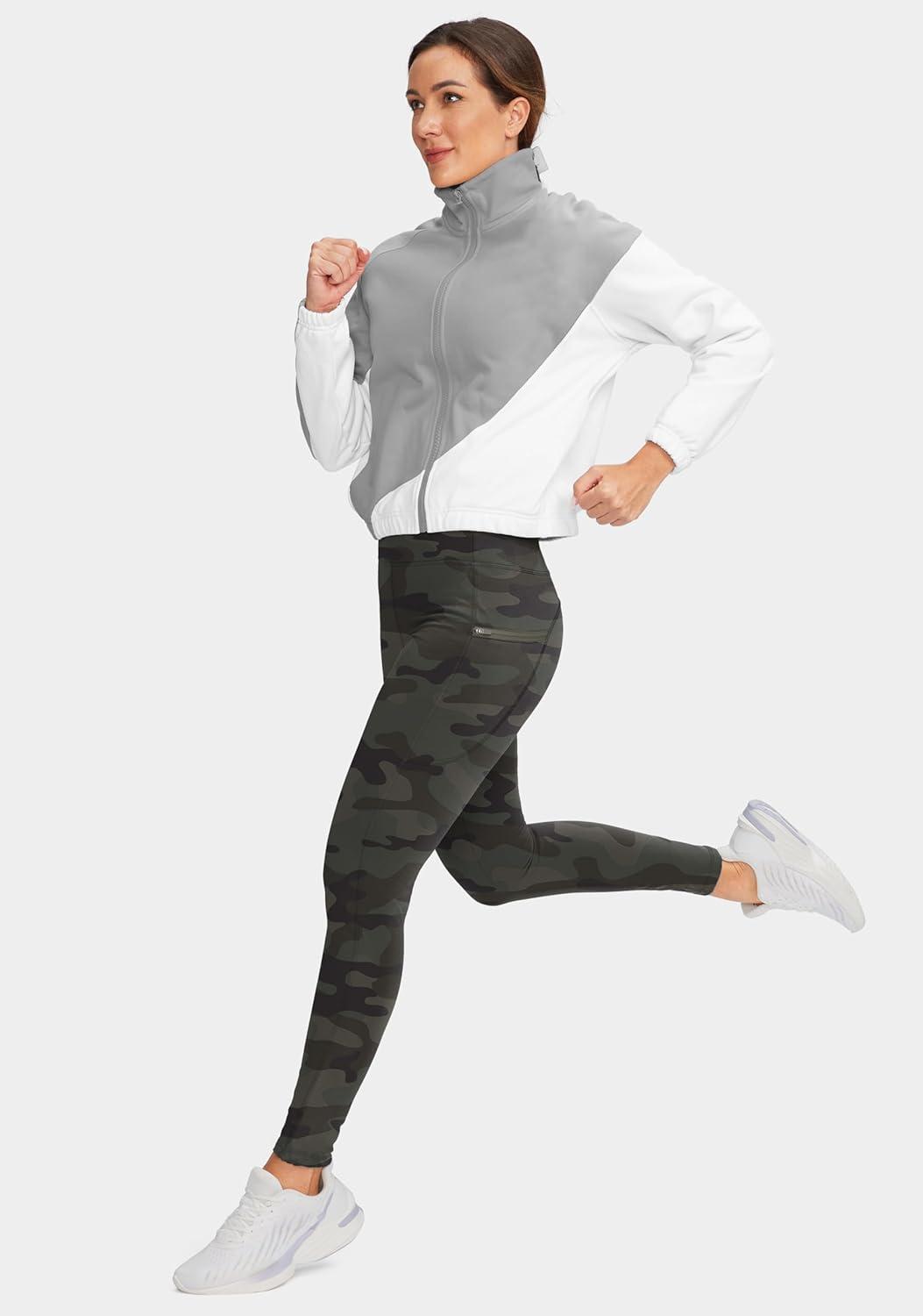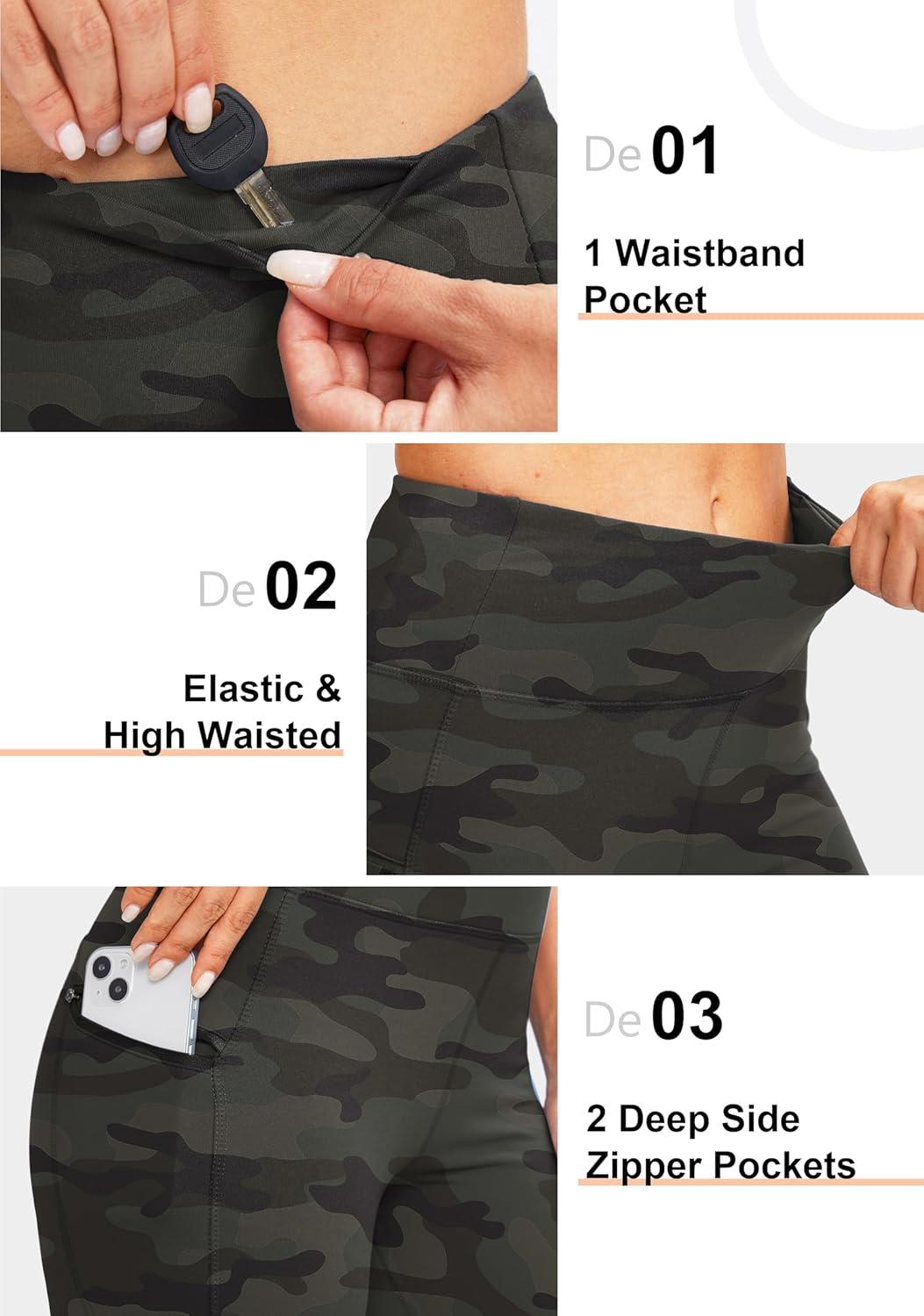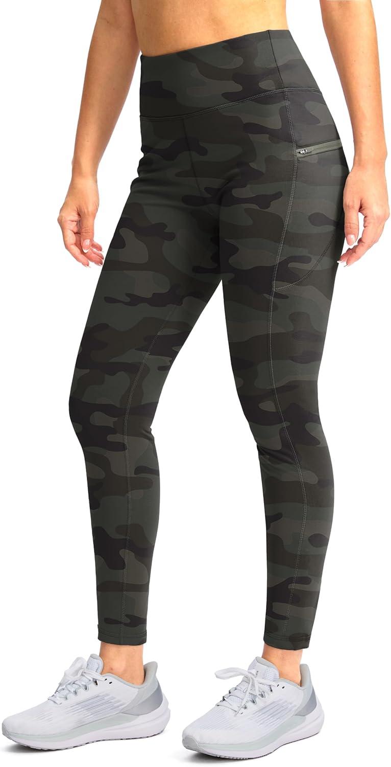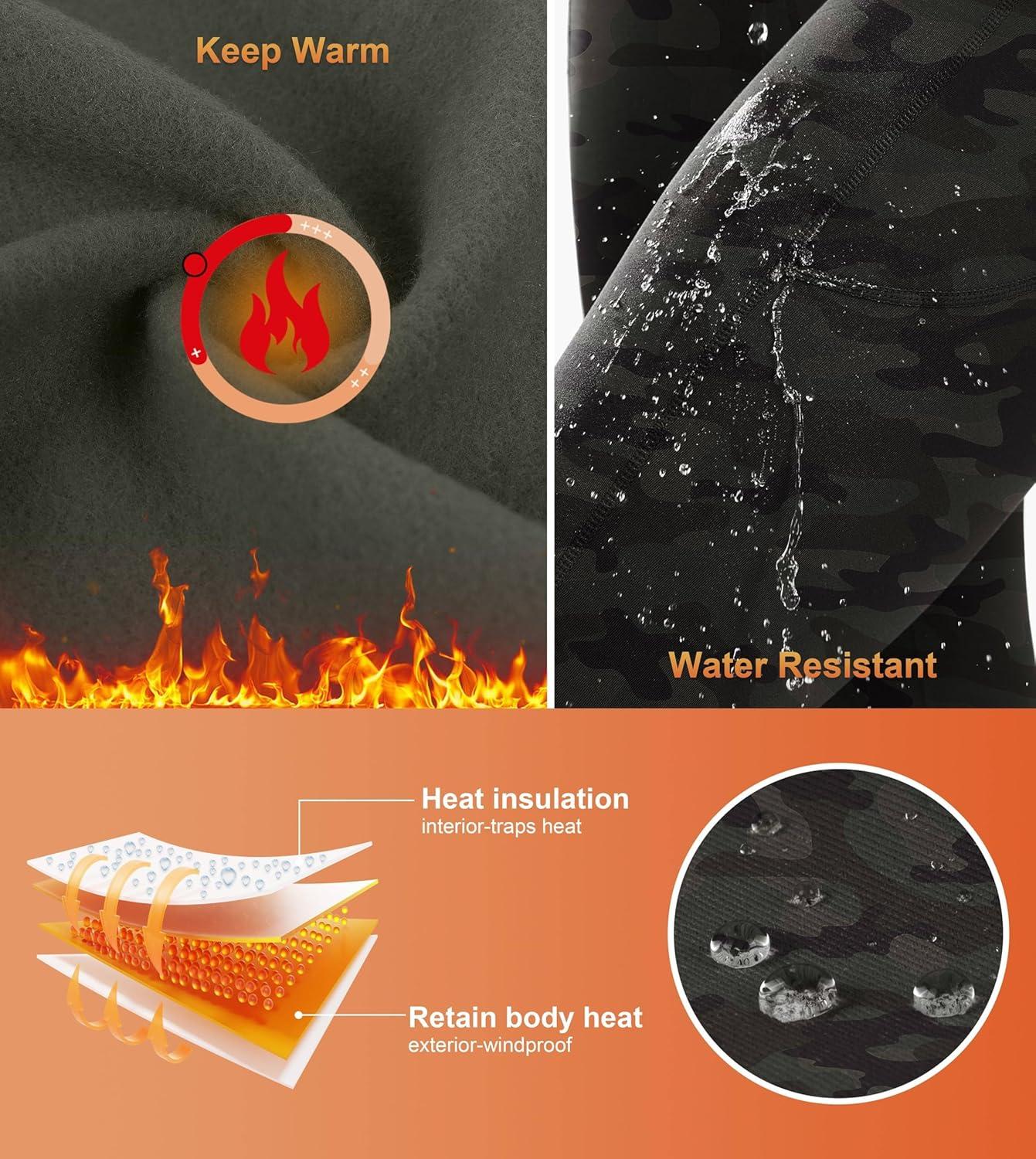 SANTINY Women’s Fleece Lined Winter Leggings Water Resistant High Waisted Thermal Hiking Running Warm Pants Women Pockets(Green Camo)