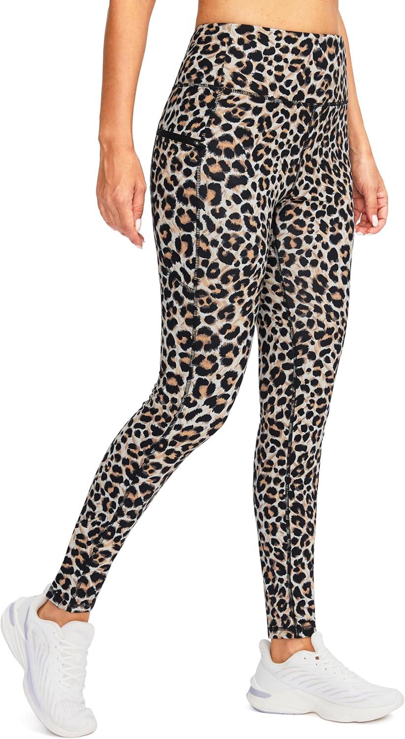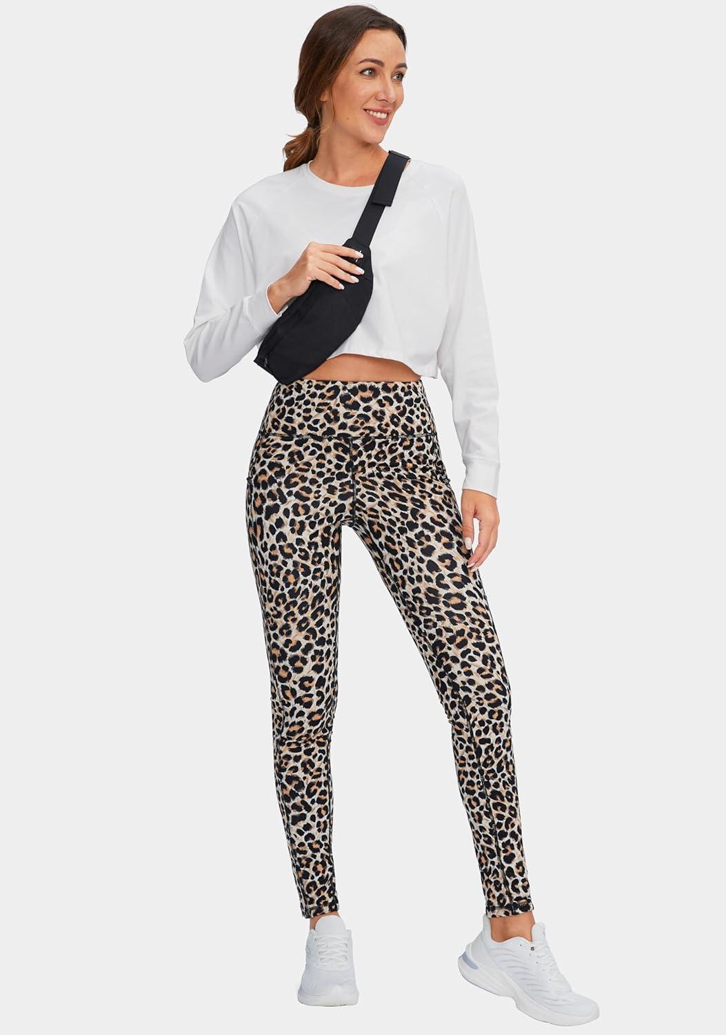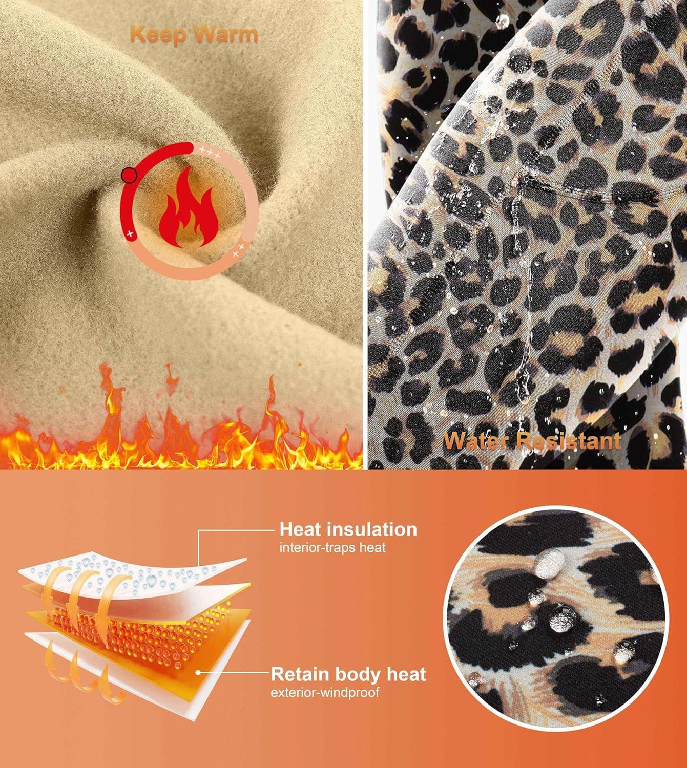 SANTINY Women’s Fleece Lined Winter Leggings Water Resistant High Waisted Thermal Hiking Running Warm Pants Women Pockets(Leopard)
