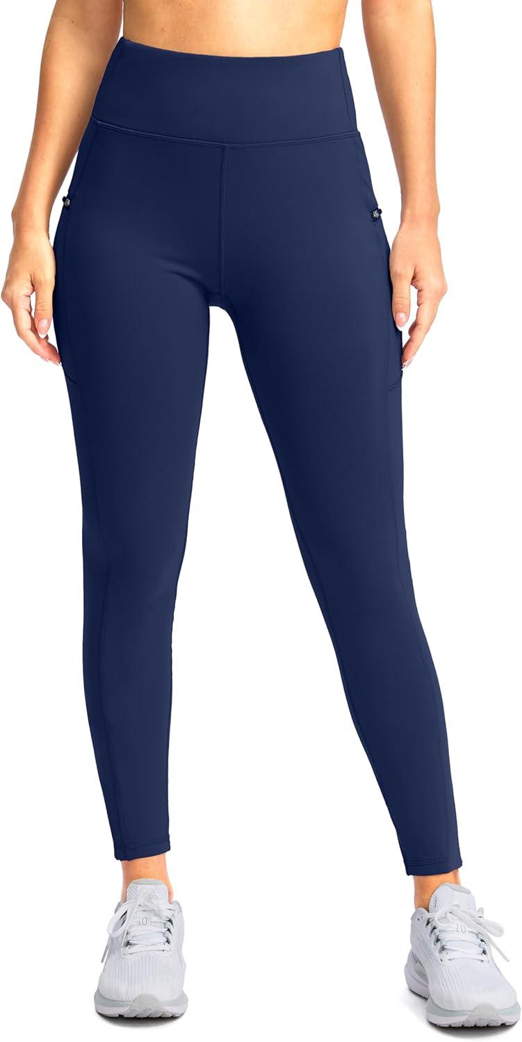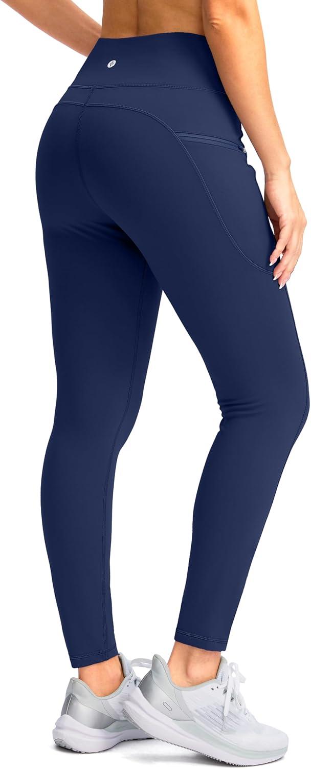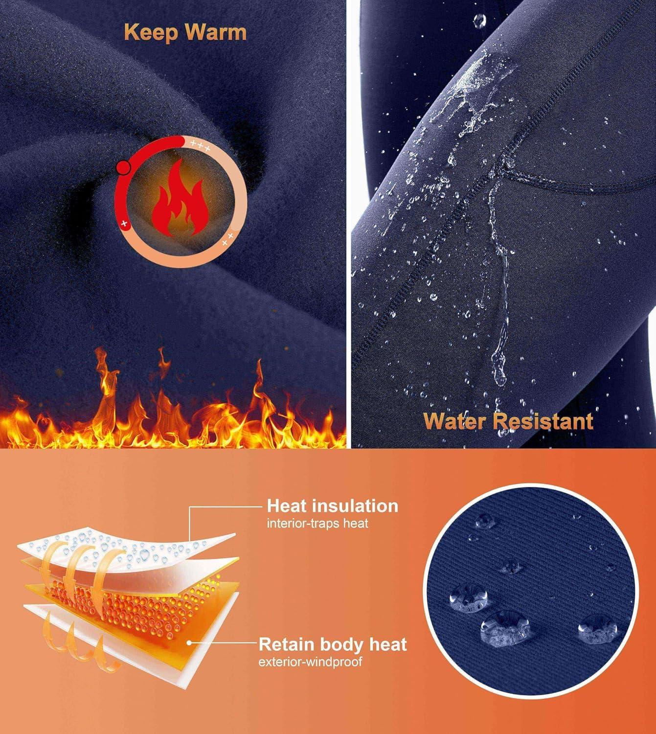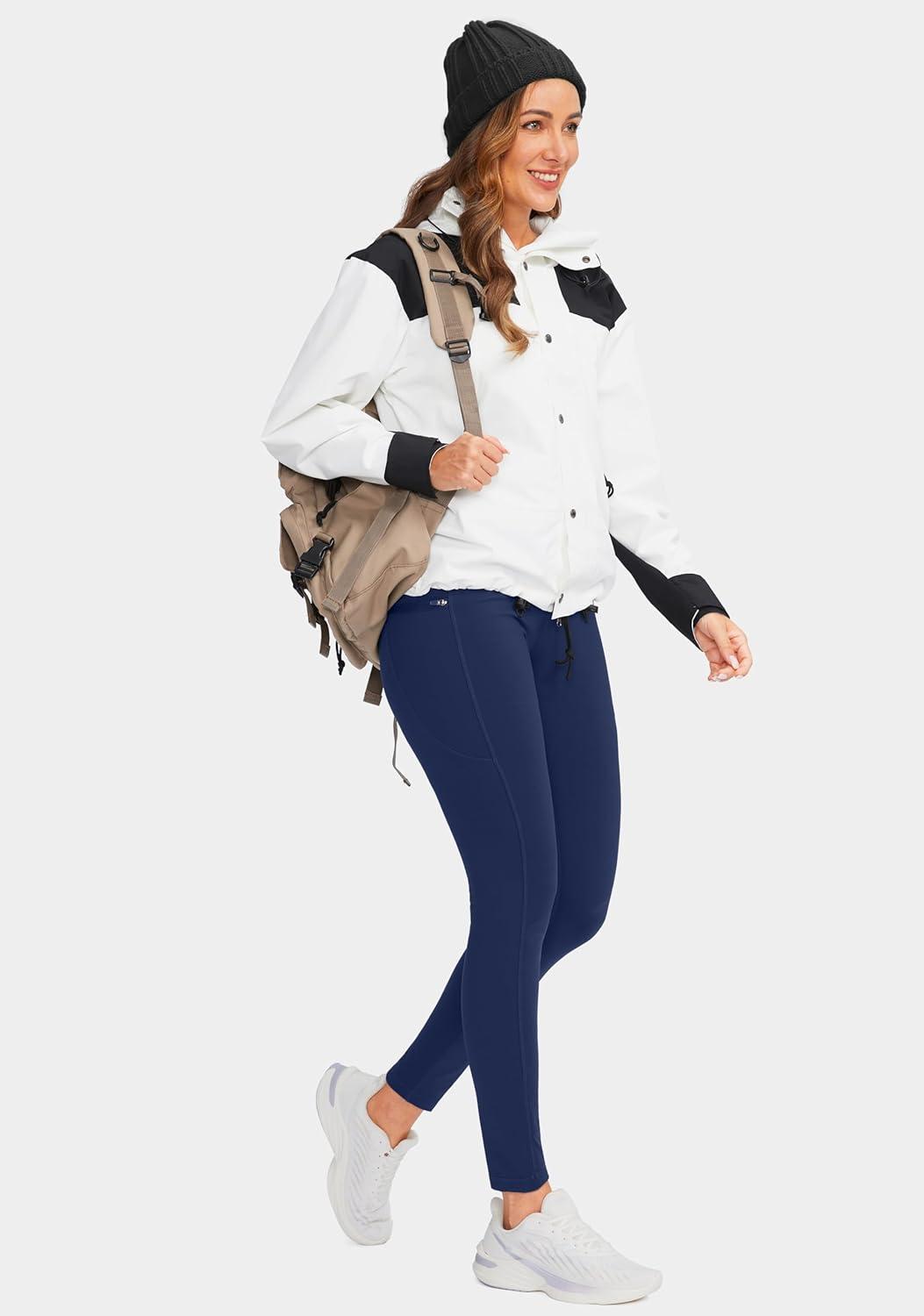 SANTINY Women’s Fleece Lined Winter Leggings Water Resistant High Waisted Thermal Hiking Running Warm Pants Women Pockets(Navy)