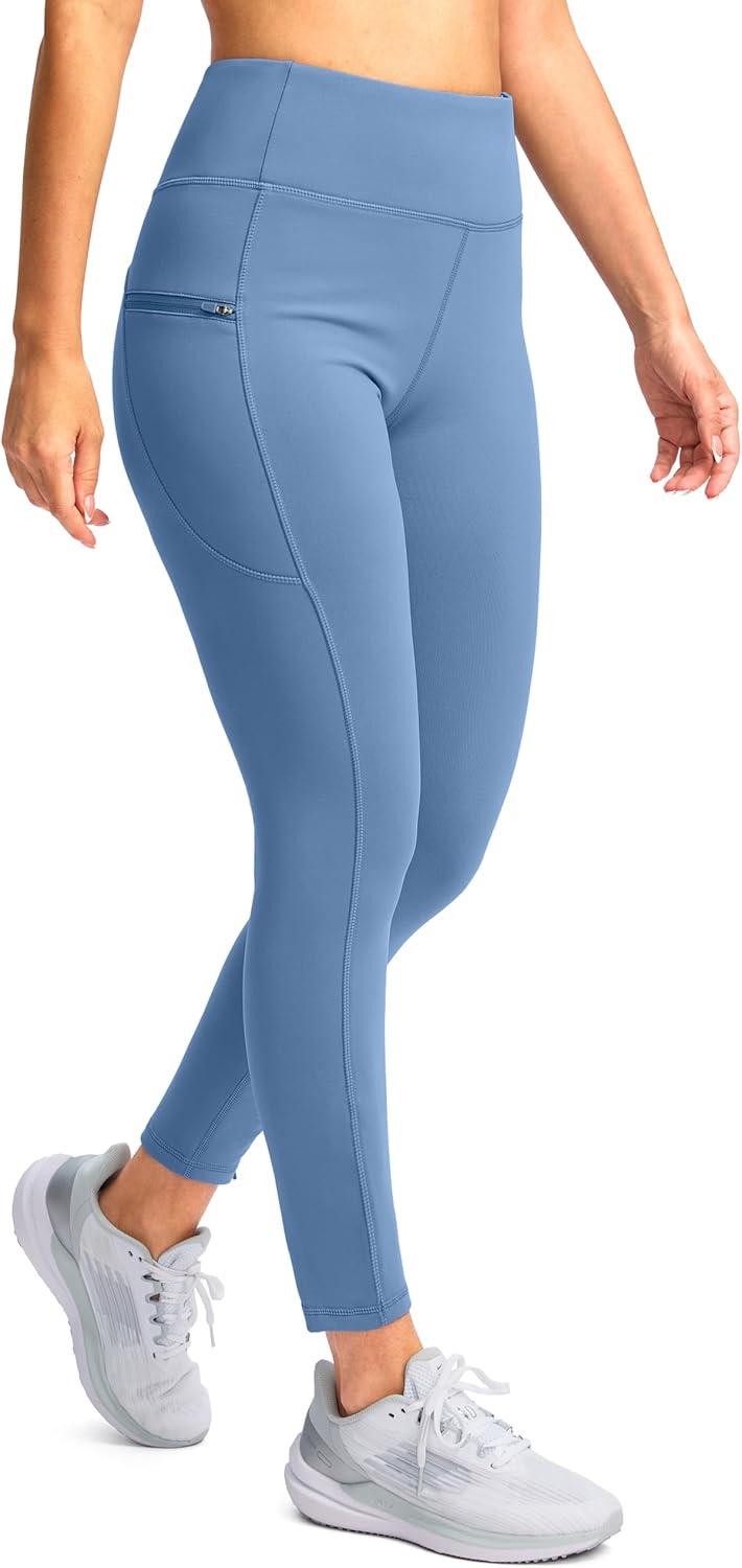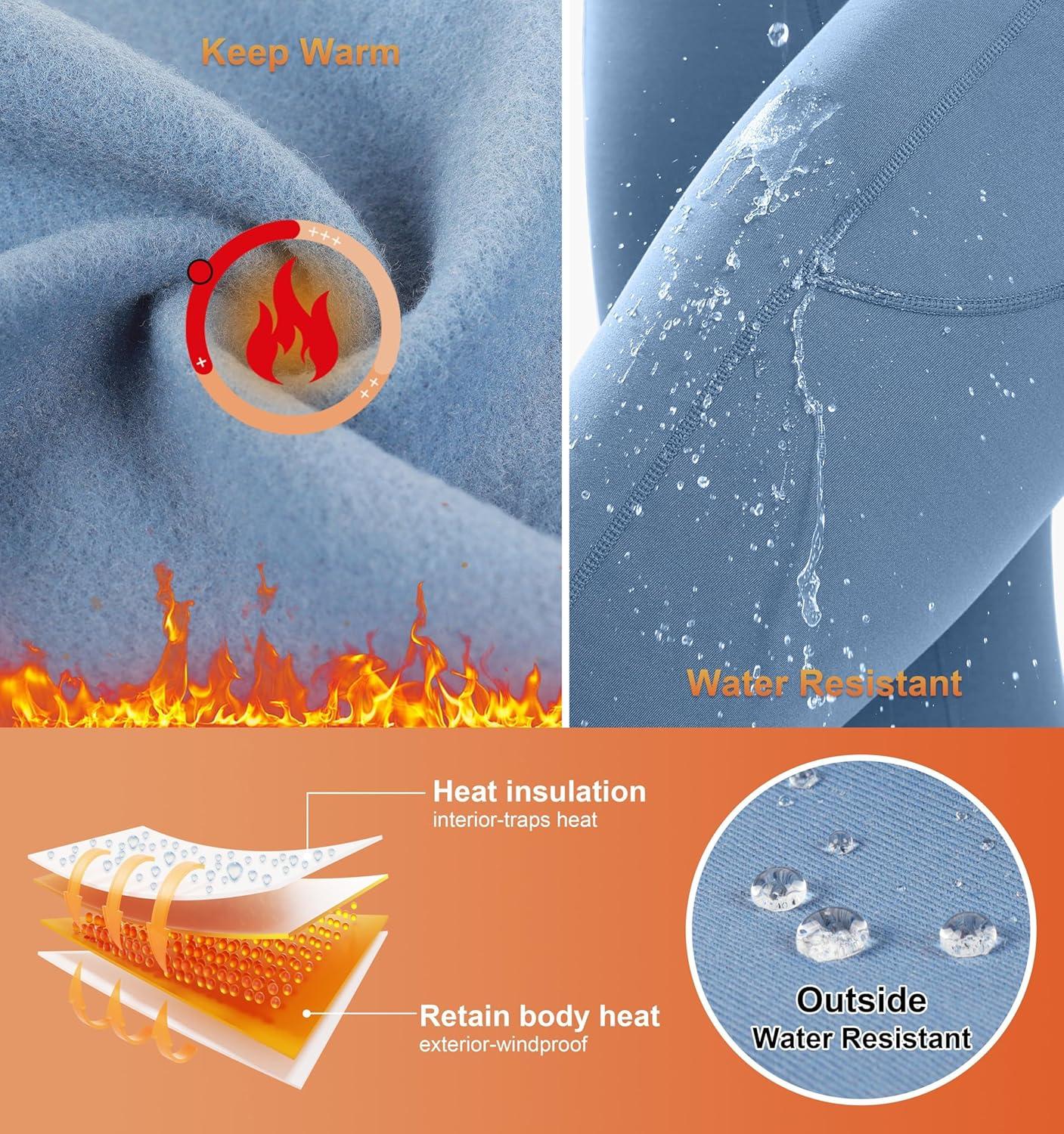 SANTINY Women’s Fleece Lined Winter Leggings Water Resistant High Waisted Thermal Hiking Running Warm Pants Women Pockets(Niagara)