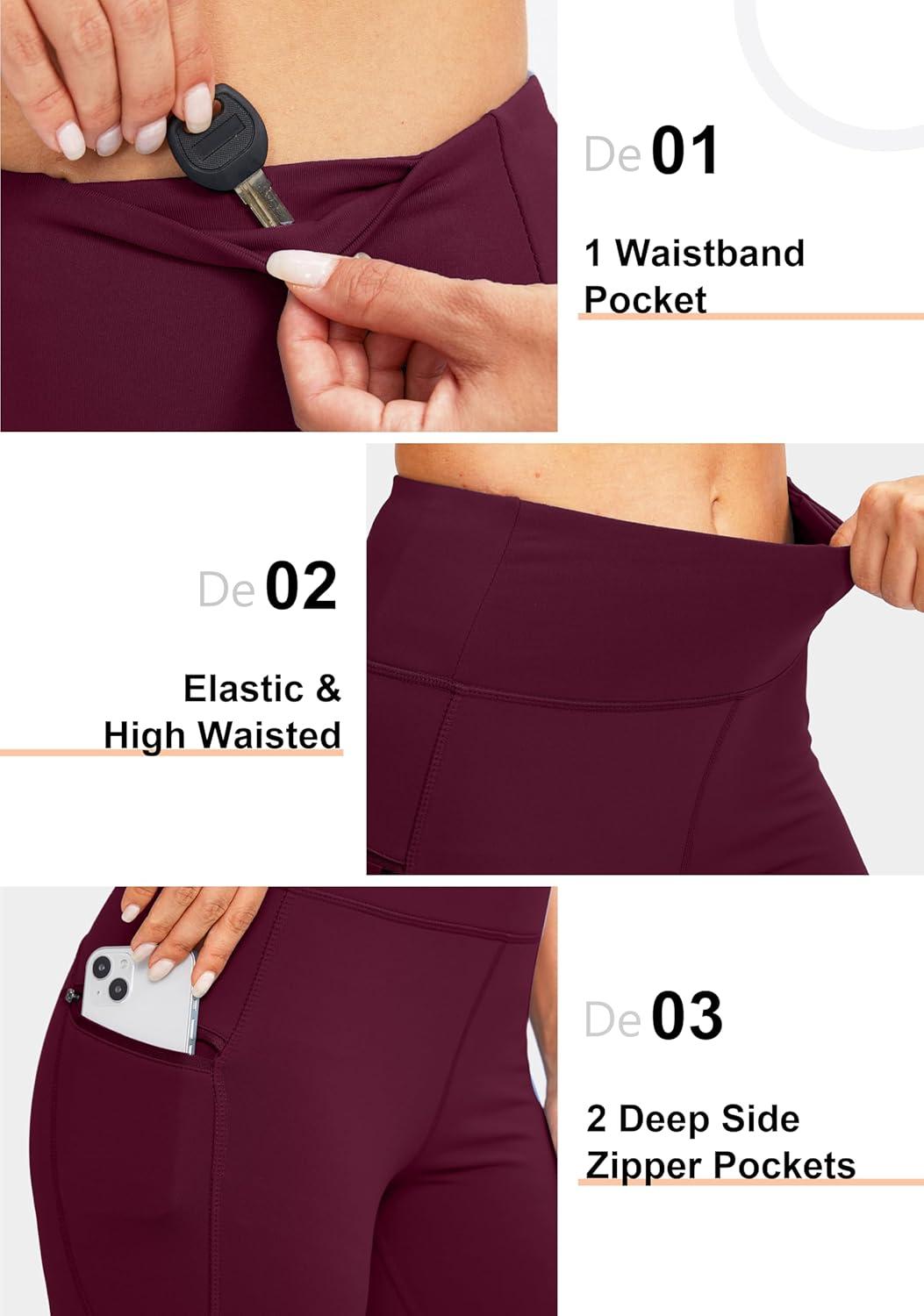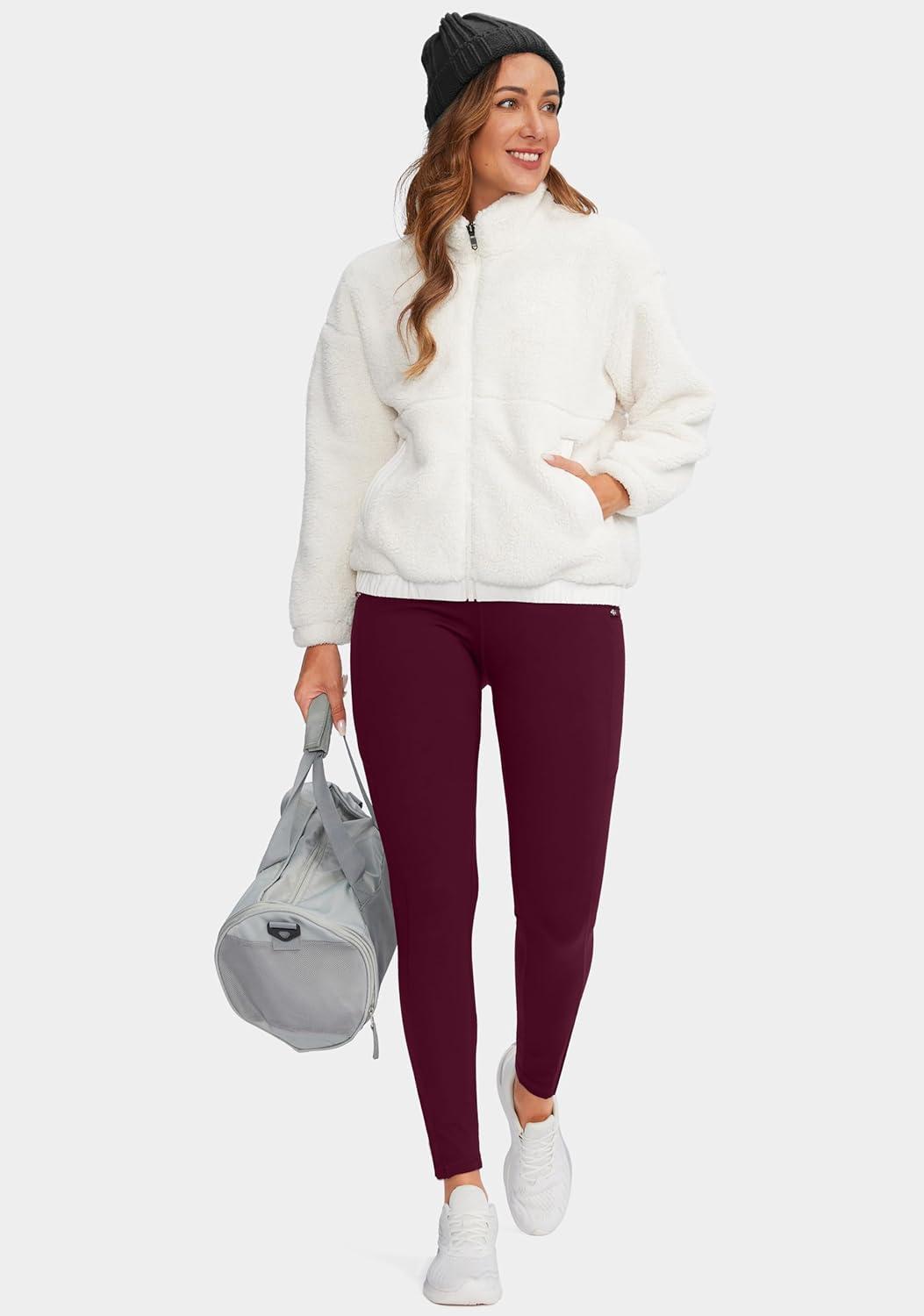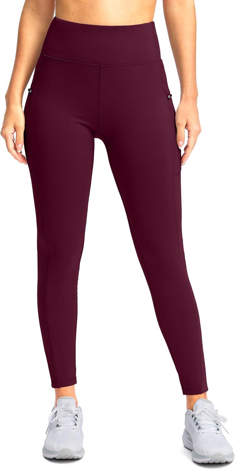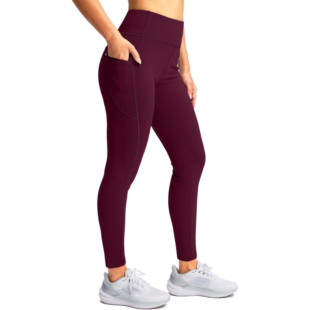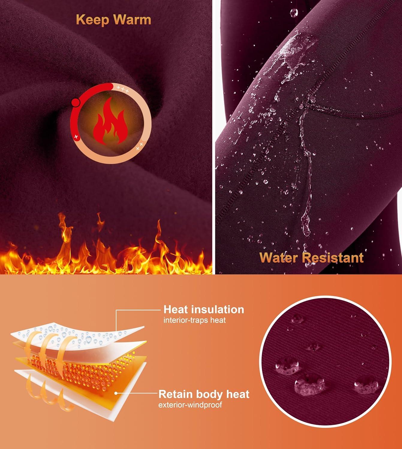 SANTINY Women’s Fleece Lined Winter Leggings Water Resistant High Waisted Thermal Hiking Running Warm Pants Women Pockets(Wine)