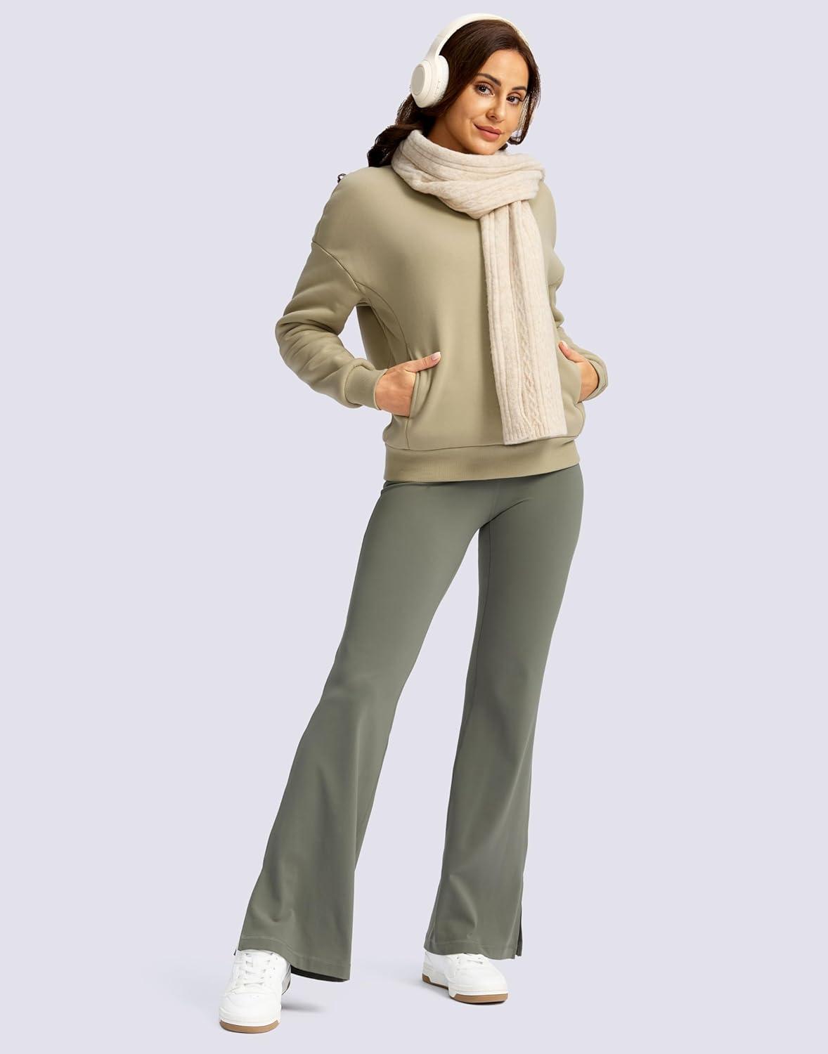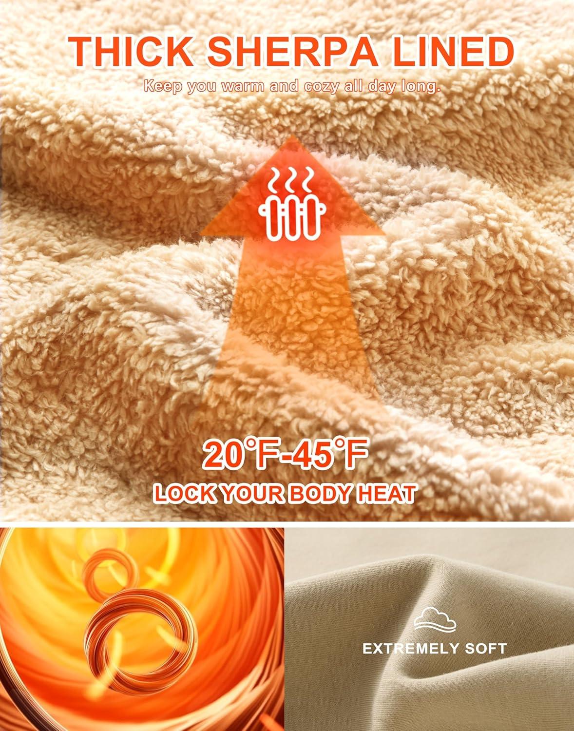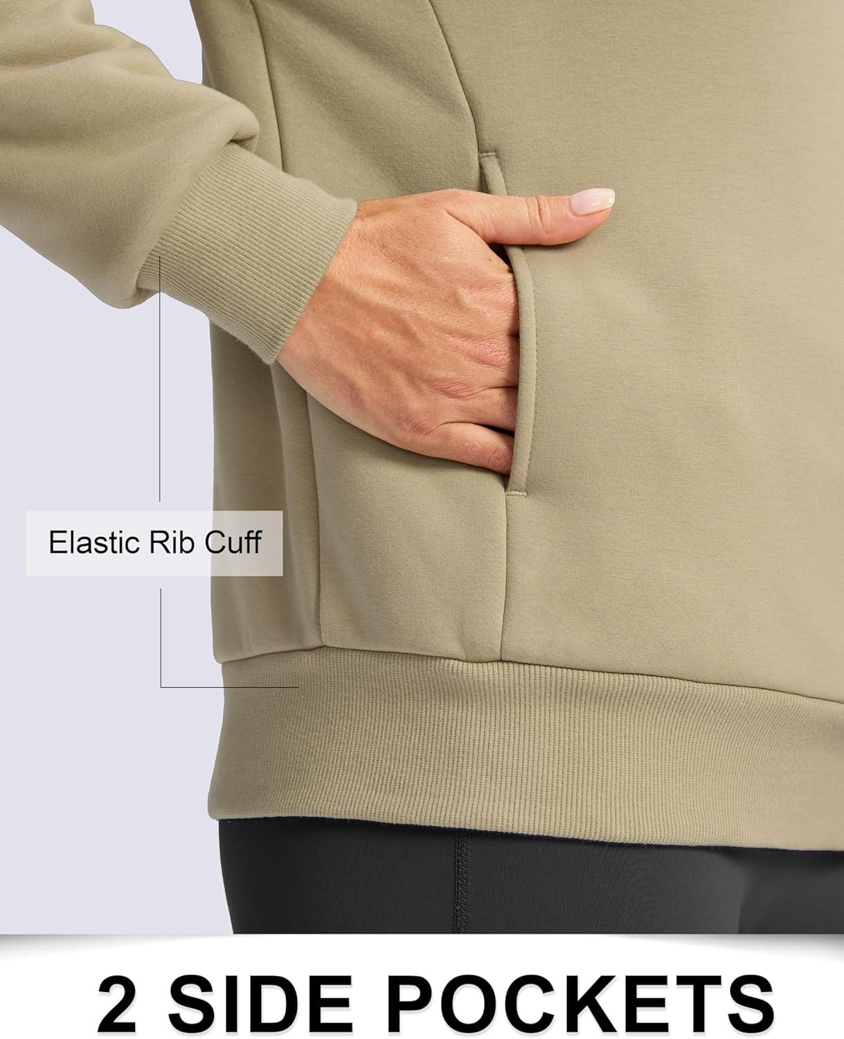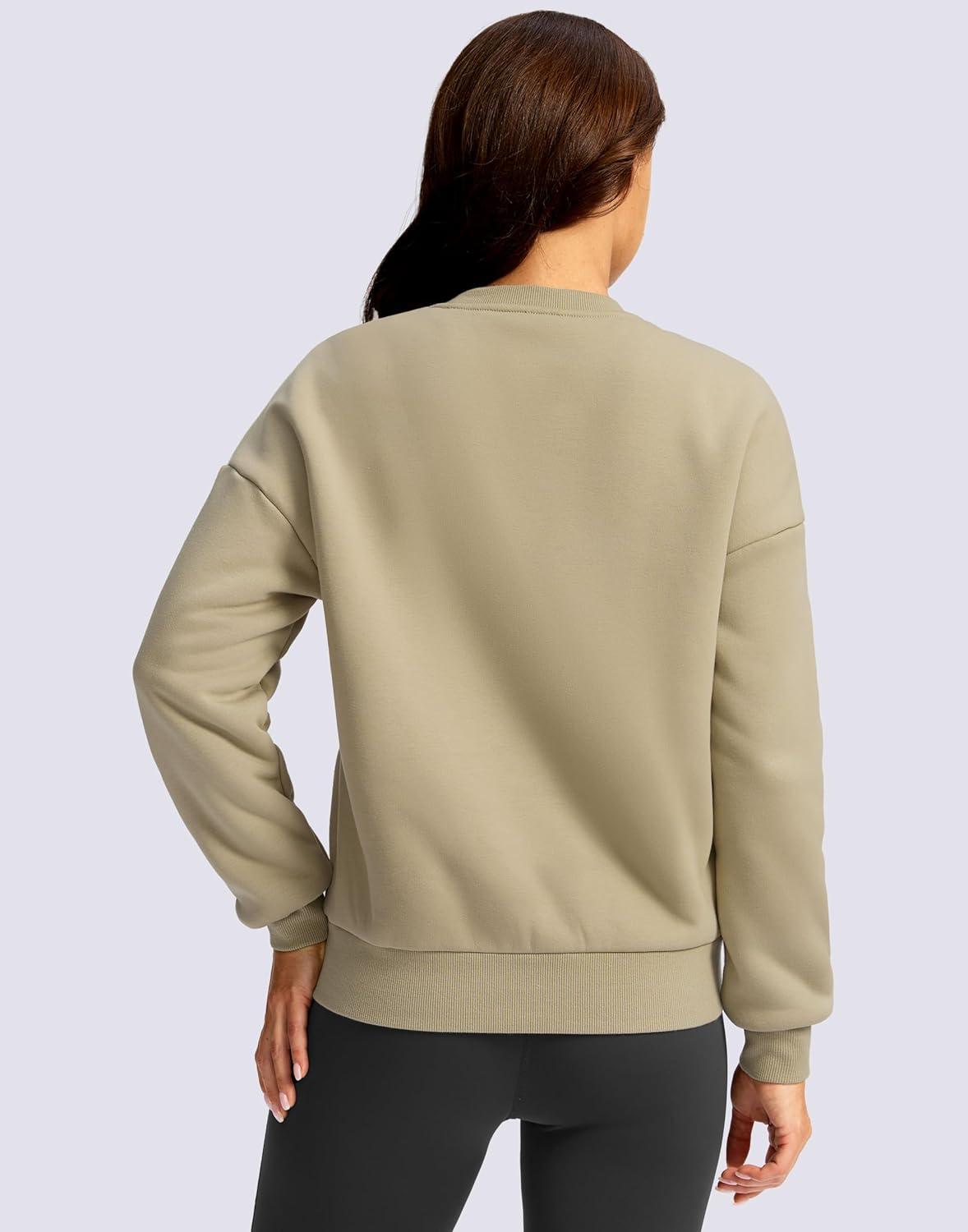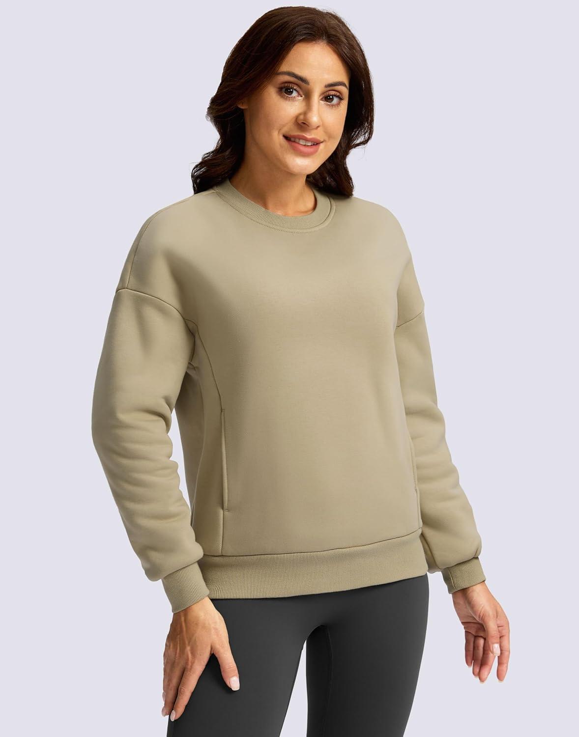 SANTINY Women’s Fleece Sherpa Lined Sweatshirt Warm Winter Pullover Sweaters Cozy Thick Crewneck Sweatshirts with Pockets(Khaki)