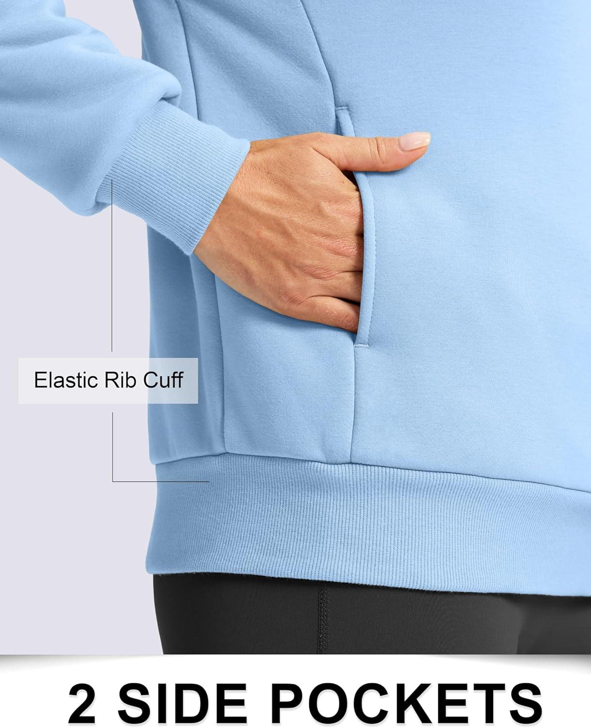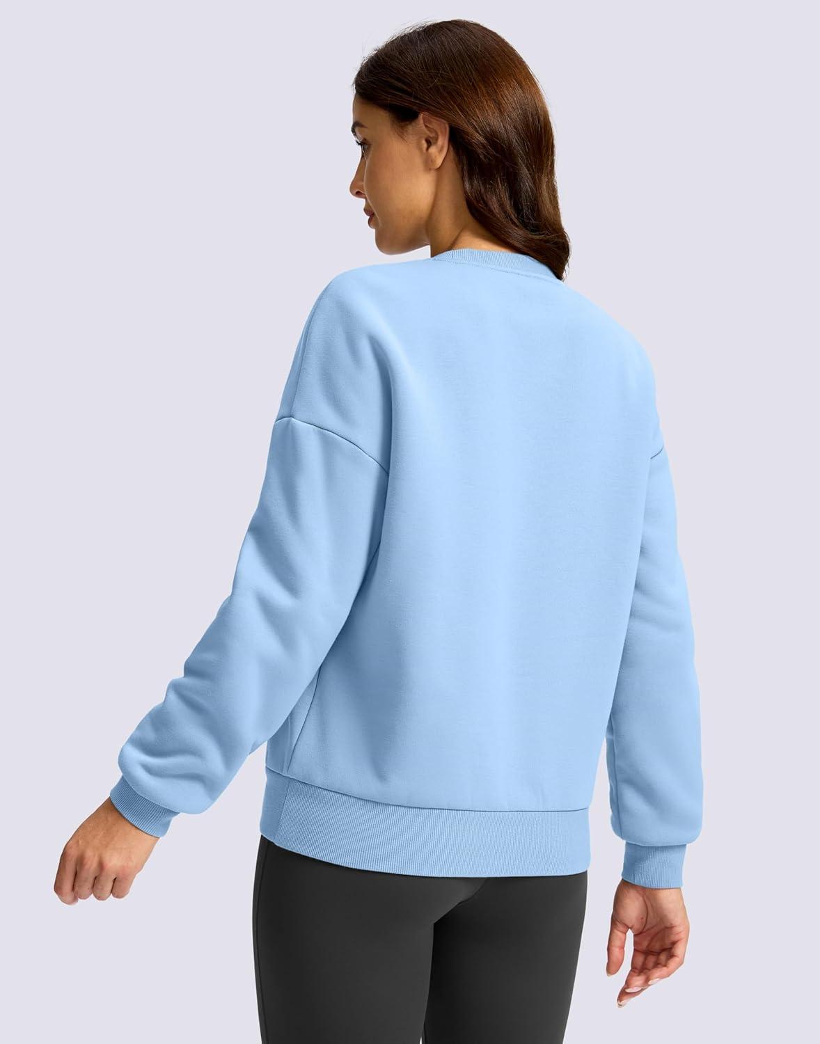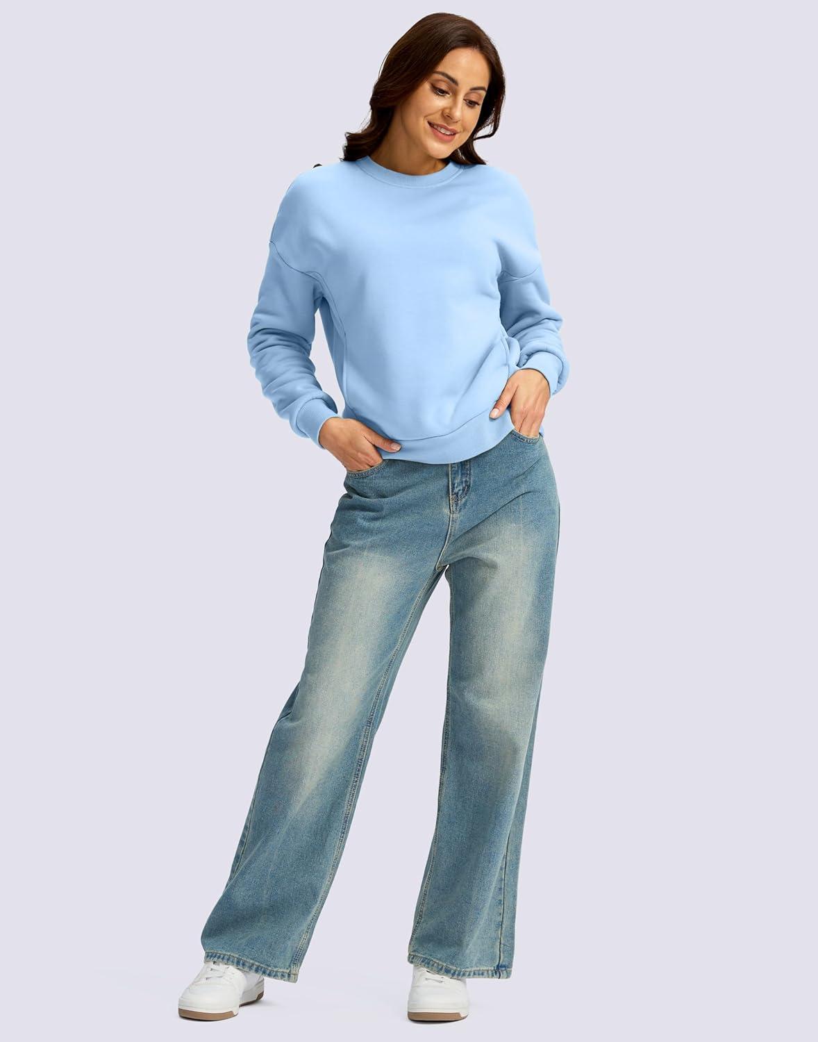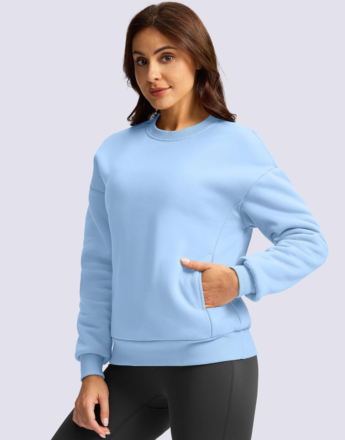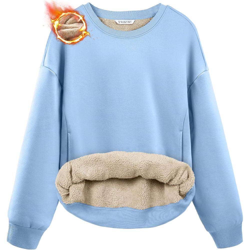 SANTINY Women’s Fleece Sherpa Lined Sweatshirt Warm Winter Pullover Sweaters Cozy Thick Crewneck Sweatshirts with Pockets(Light Blue)
