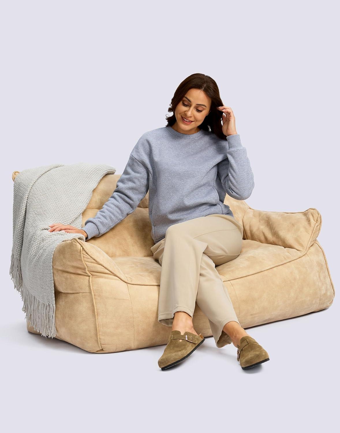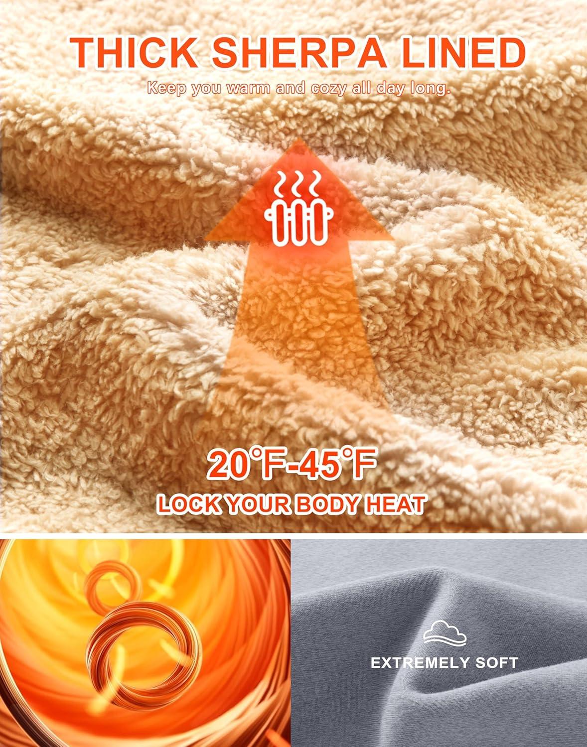 SANTINY Women’s Fleece Sherpa Lined Sweatshirt Warm Winter Pullover Sweaters Cozy Thick Crewneck Sweatshirts with Pockets(Light Grey Heather)