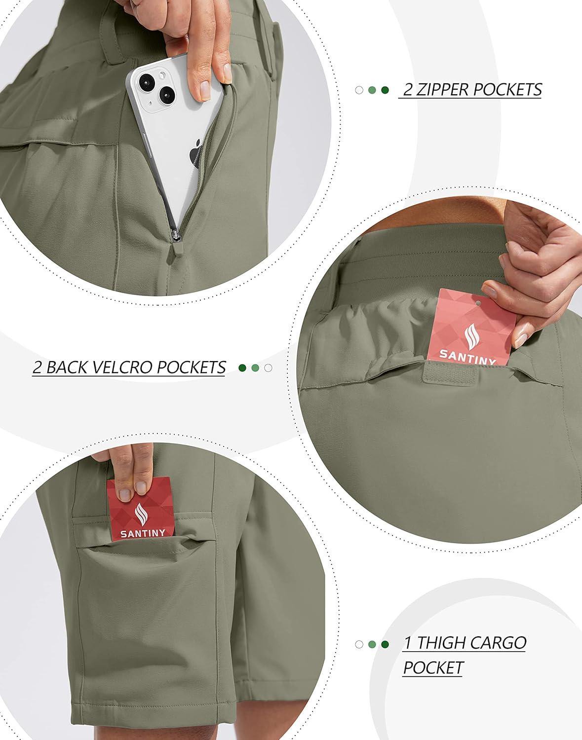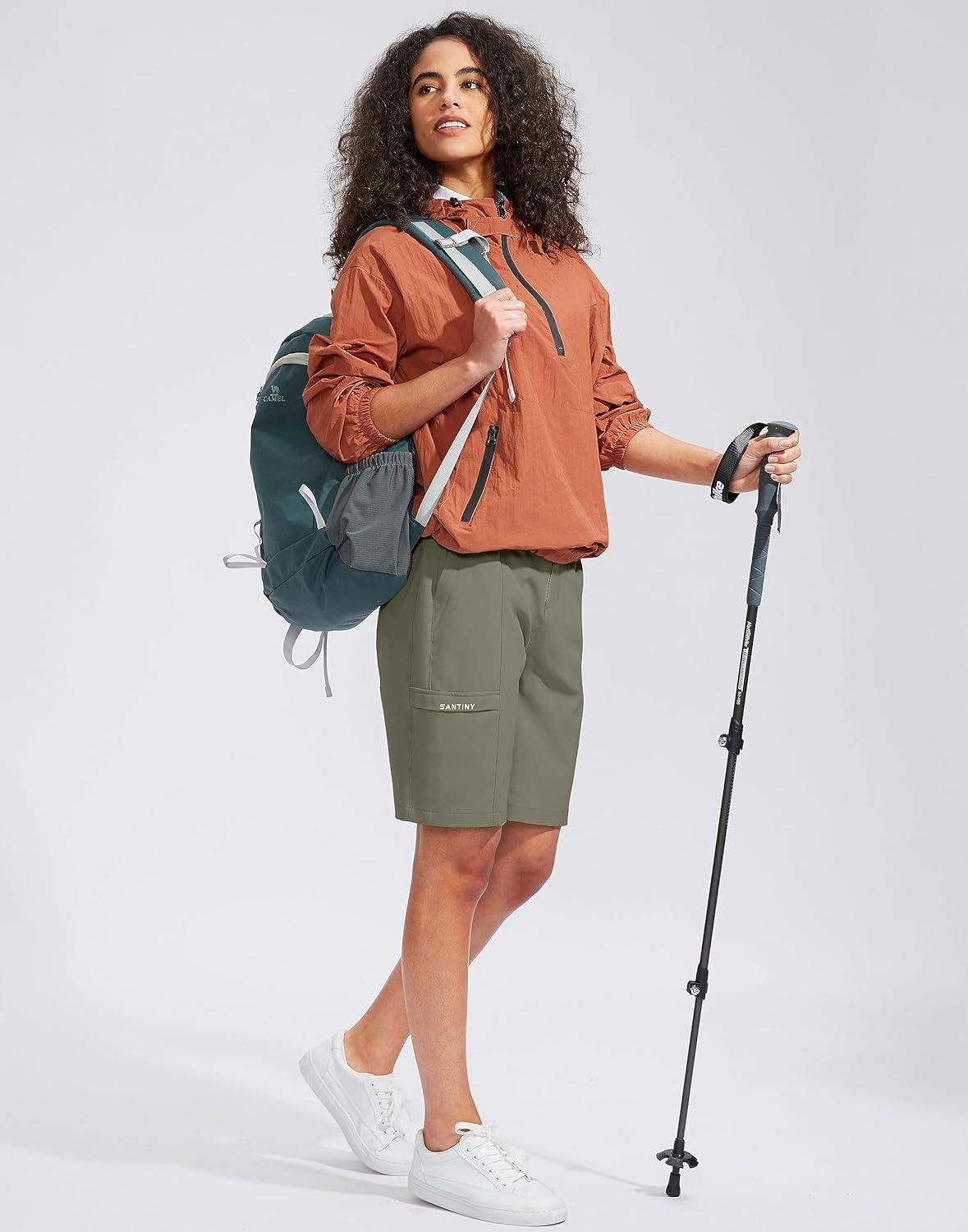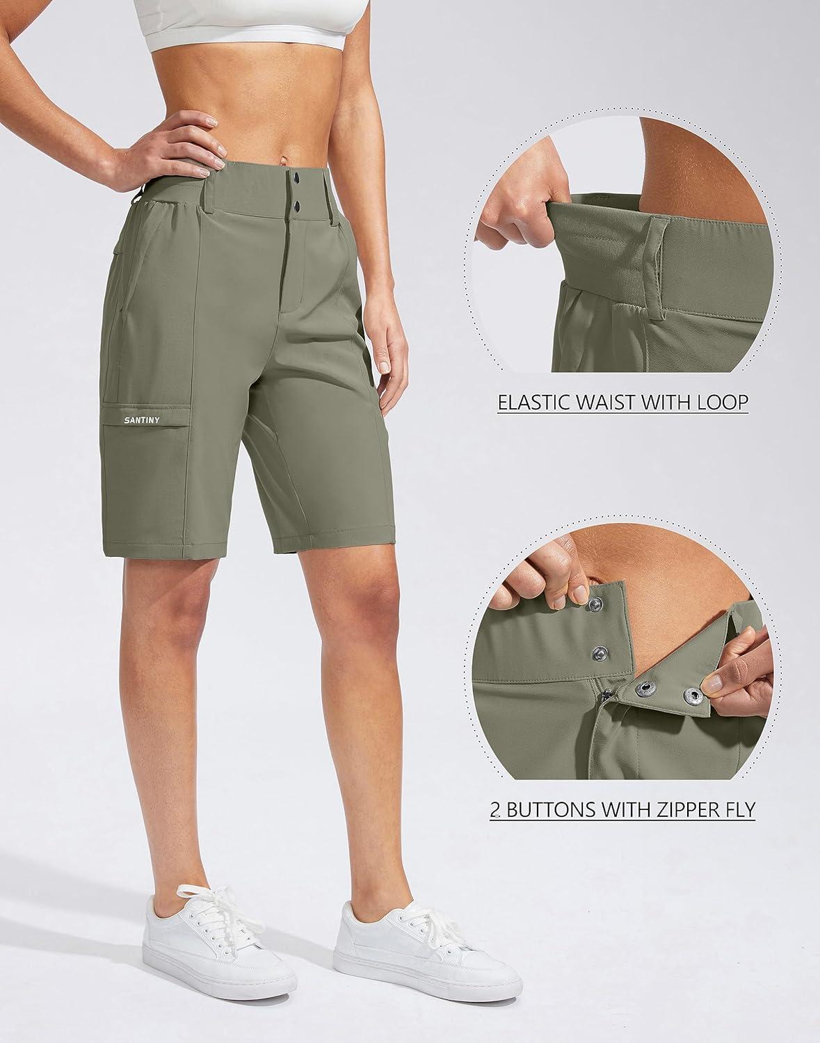 SANTINY Women’s Golf Hiking Shorts 9” High Waisted Quick Dry Bermuda Long Shorts for Women with Zipper Pockets