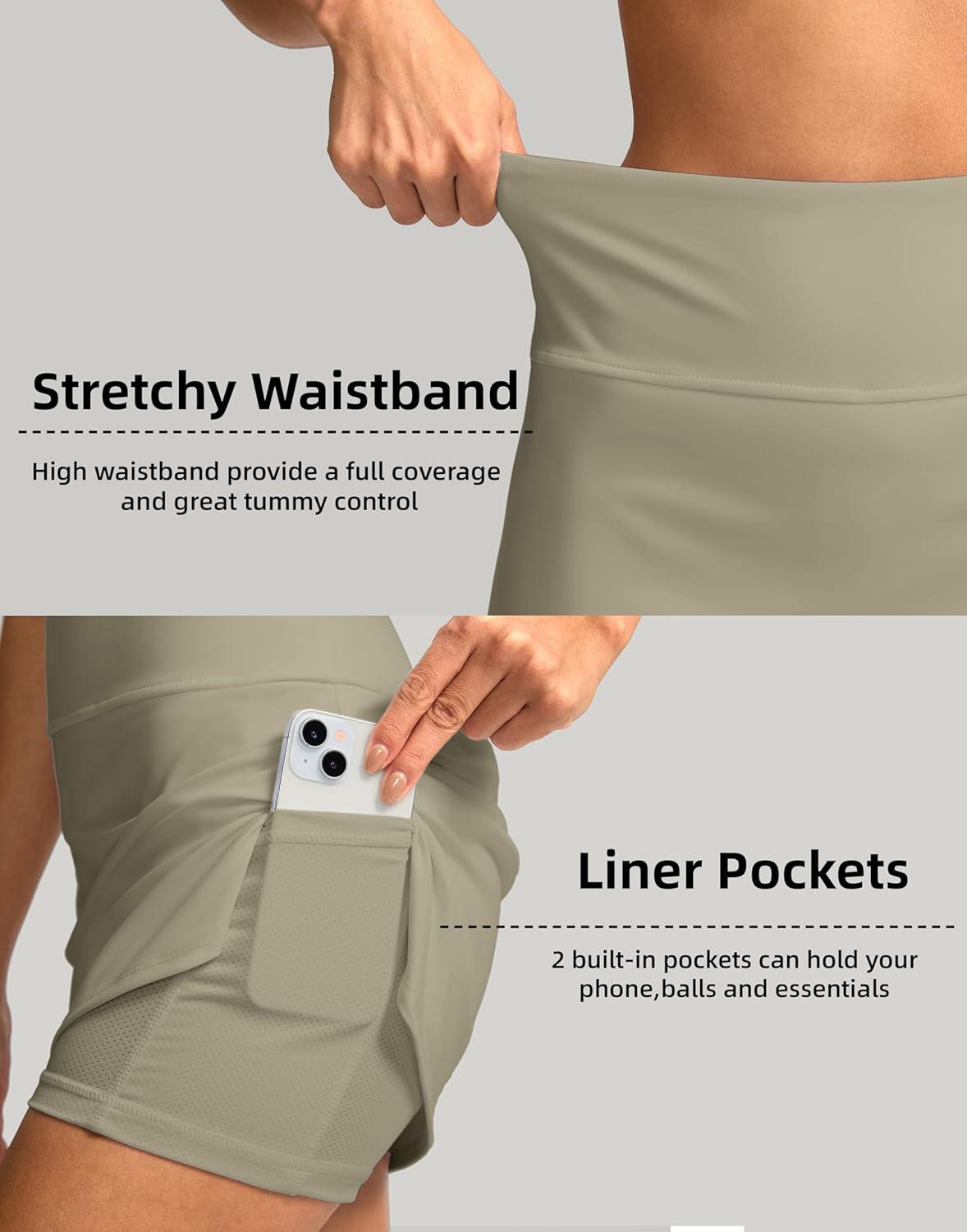 SANTINY Women’s Golf Skirts Skorts High Waisted Tennis Skirt Athletic Workout Casual Skorts for Woman with Short Pockets(Dusty Khaki)