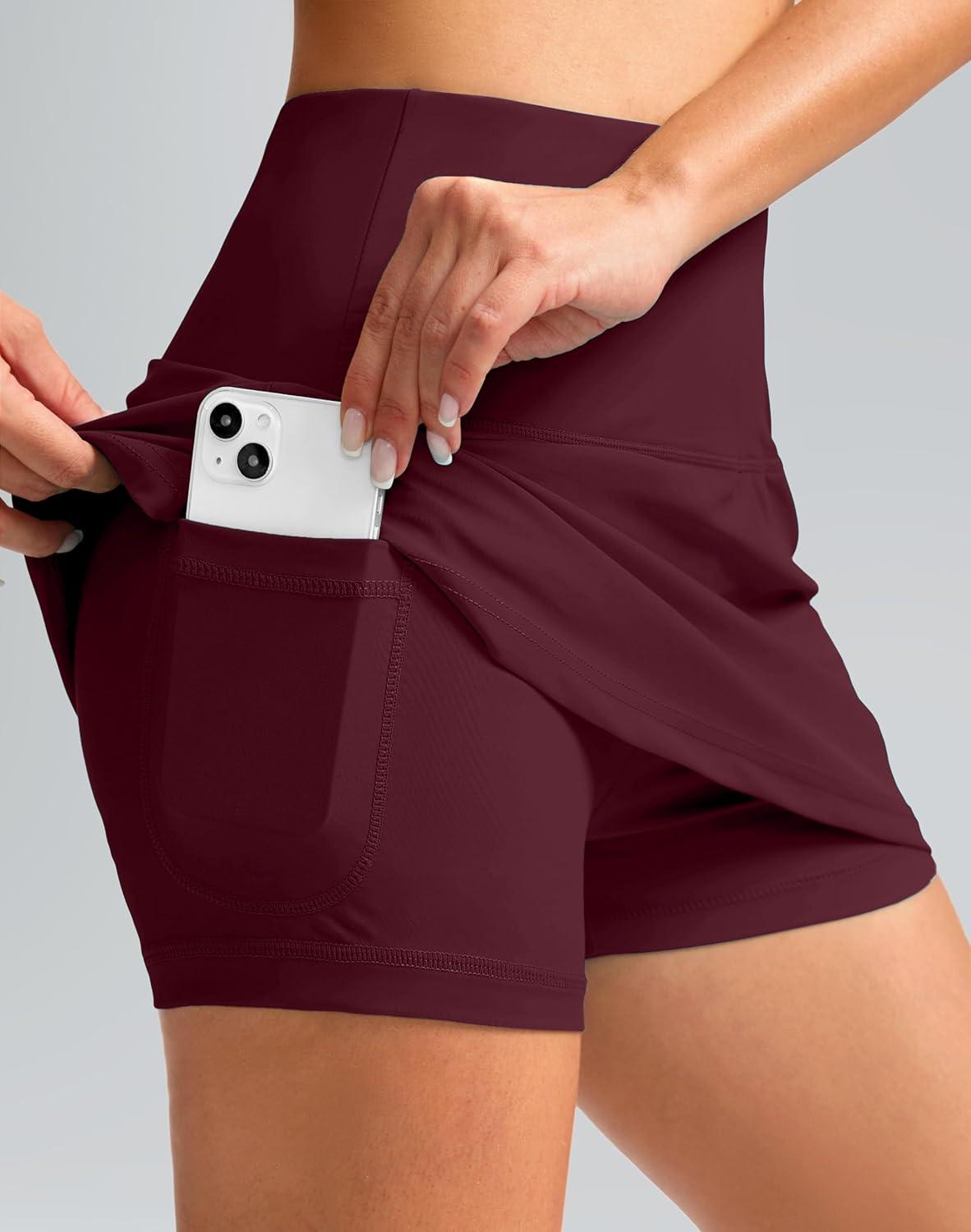 SANTINY Women’s High Waisted Swim Skirt with Pocket Tummy Control Tankini Swimsuit Bathing Suit Bottoms for Women(Wine)
