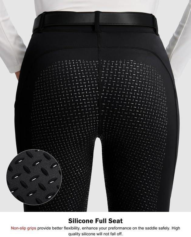 SANTINY Women’s Horse Riding Pants Zipper Pockets Silicone Full-Seat Breeches Equestrian Schooling Tights for Women(Black)