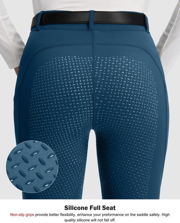 SANTINY Women’s Horse Riding Pants Zipper Pockets Silicone Full-Seat Breeches Equestrian Schooling Tights for Women(Blue)