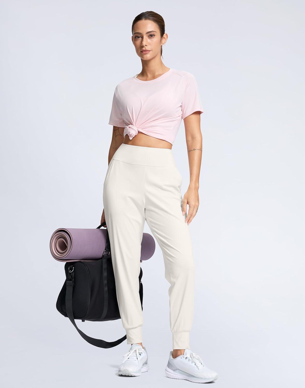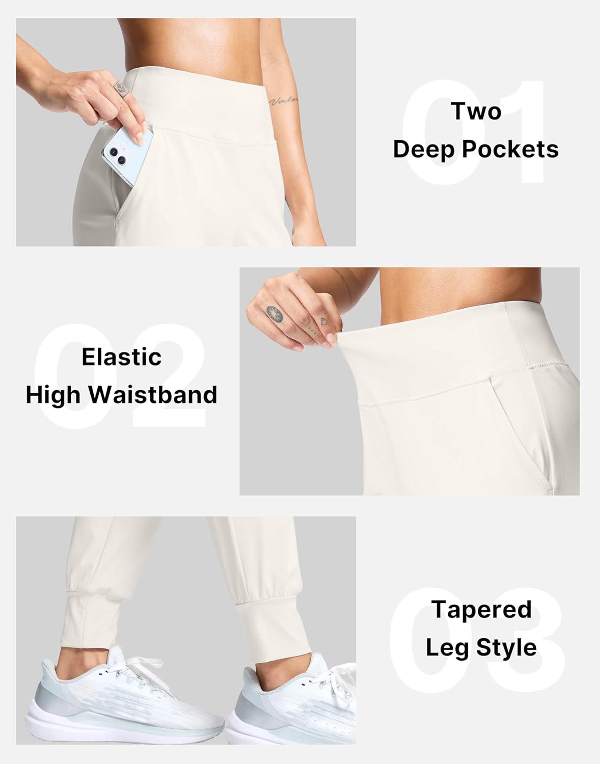 SANTINY Women’s Joggers Pants with Pockets Lightweight High Waisted Athletic Gym Workout Pants for Women Yoga Travel(Beige)