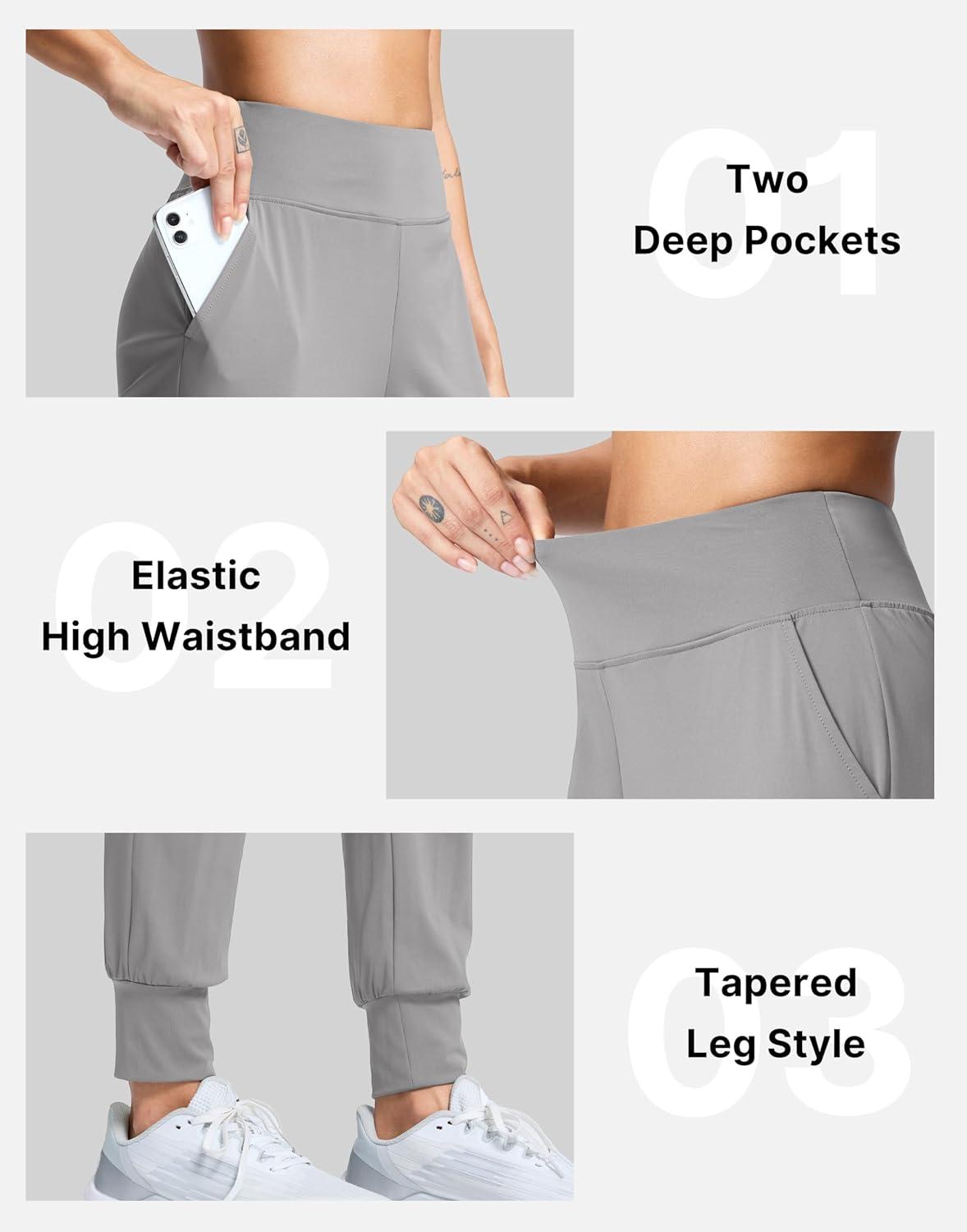 SANTINY Women’s Joggers Pants with Pockets Lightweight High Waisted Athletic Gym Workout Pants for Women Yoga Travel(Grey)