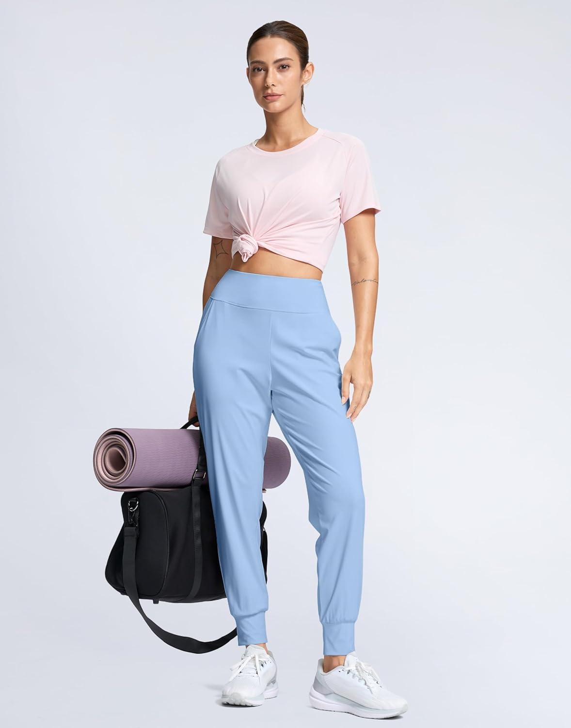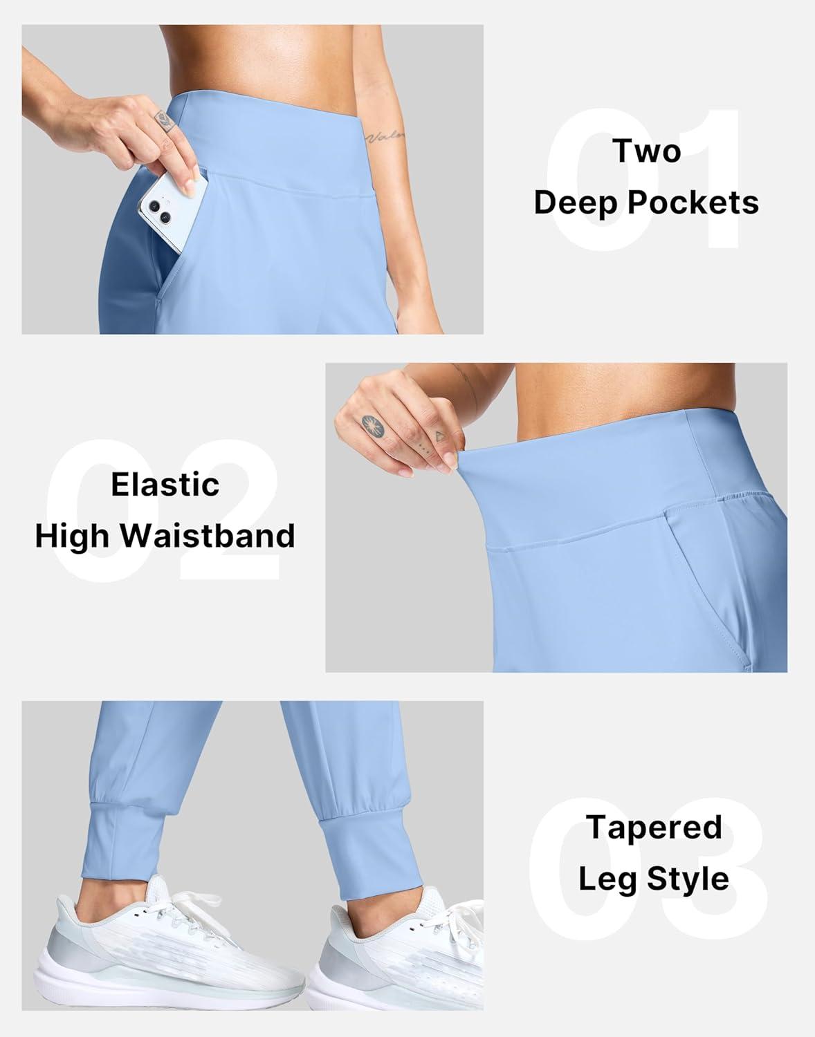 SANTINY Women’s Joggers Pants with Pockets Lightweight High Waisted Athletic Gym Workout Pants for Women Yoga Travel(Light Blue)