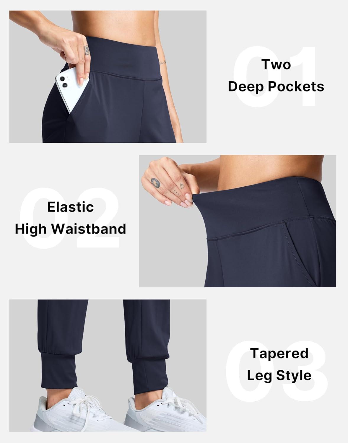 SANTINY Women’s Joggers Pants with Pockets Lightweight High Waisted Athletic Gym Workout Pants for Women Yoga Travel(Navy)