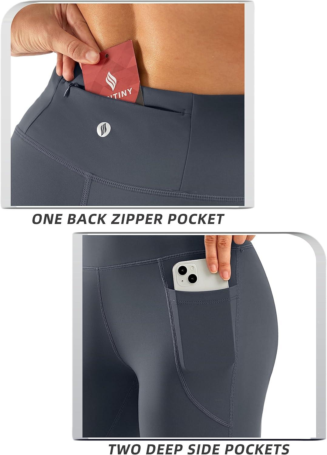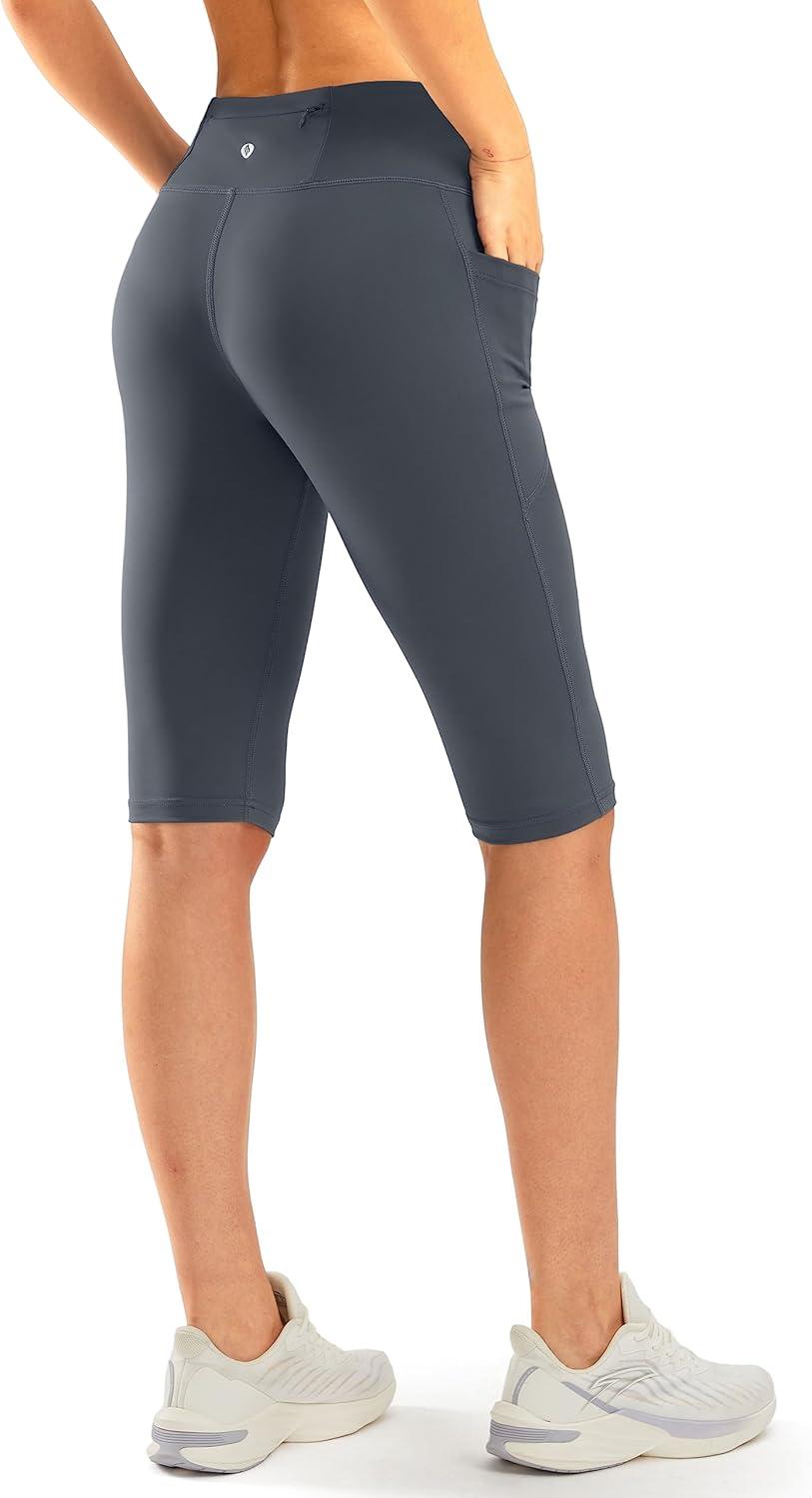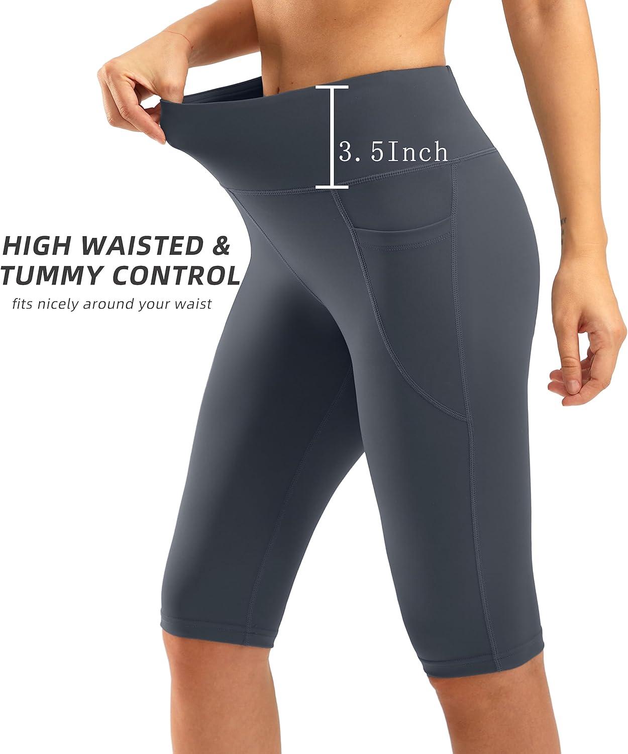 SANTINY Women’s Knee Length Capri Leggings with Pockets High Waisted Workout Exercise Yoga Capris Pants for Women(Dusty Blue)