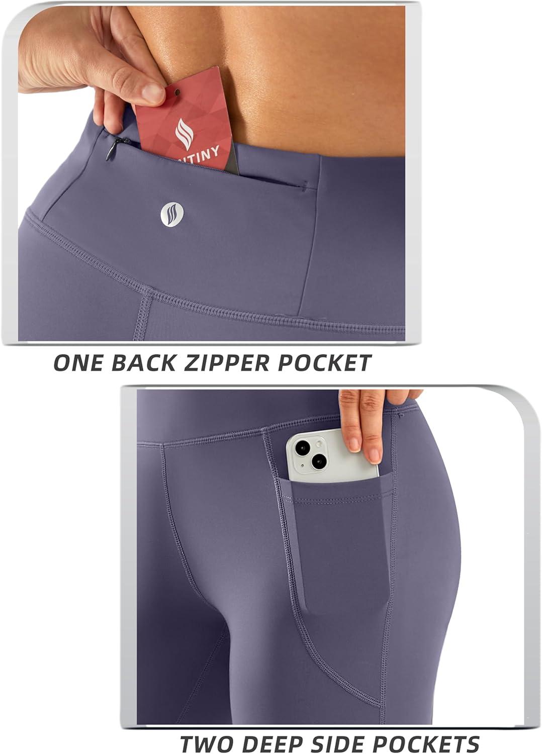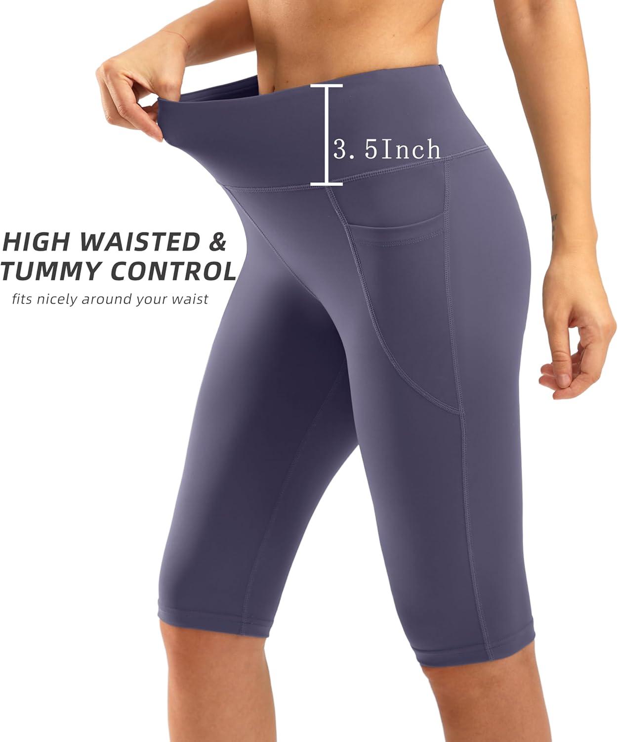 SANTINY Women’s Knee Length Capri Leggings with Pockets High Waisted Workout Exercise Yoga Capris Pants for Women(Dusty Purple)
