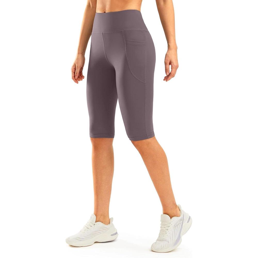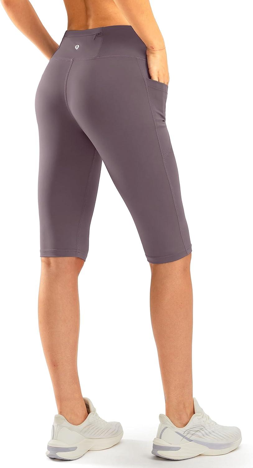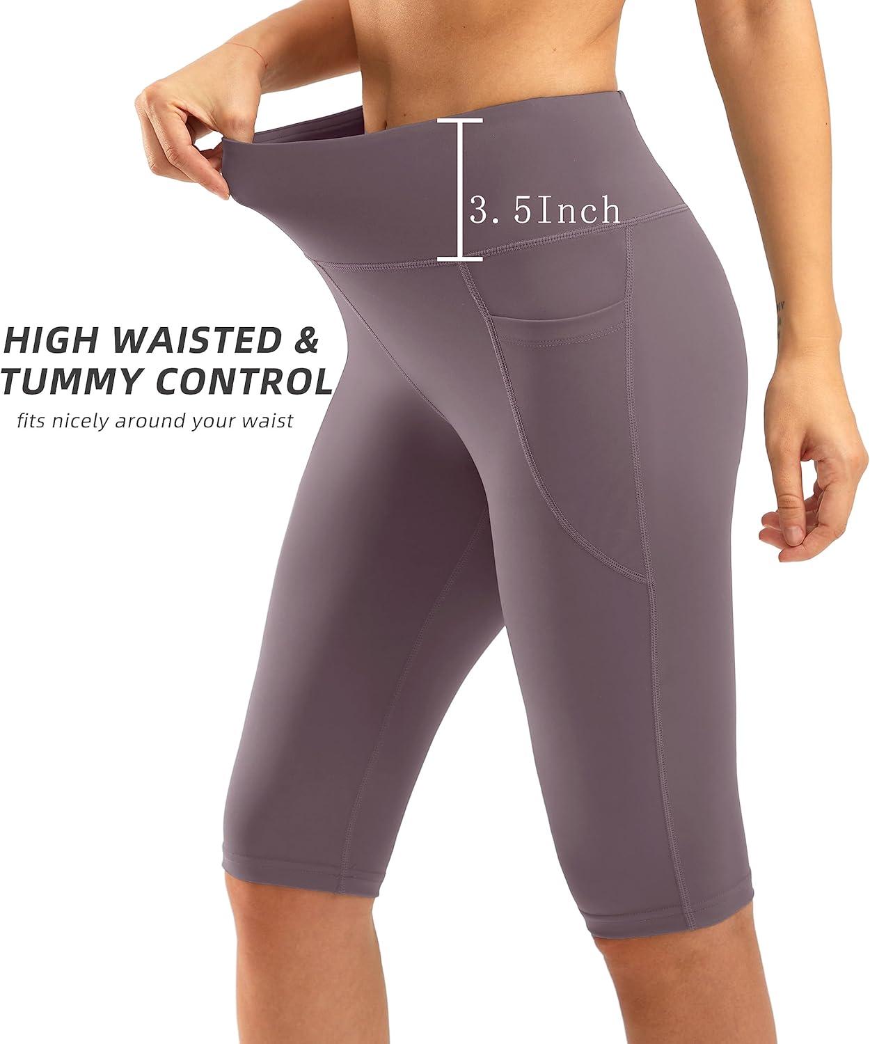 SANTINY Women’s Knee Length Capri Leggings with Pockets High Waisted Workout Exercise Yoga Capris Pants for Women(Dusty Red)