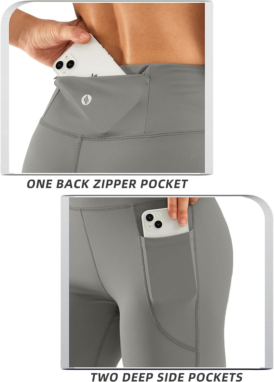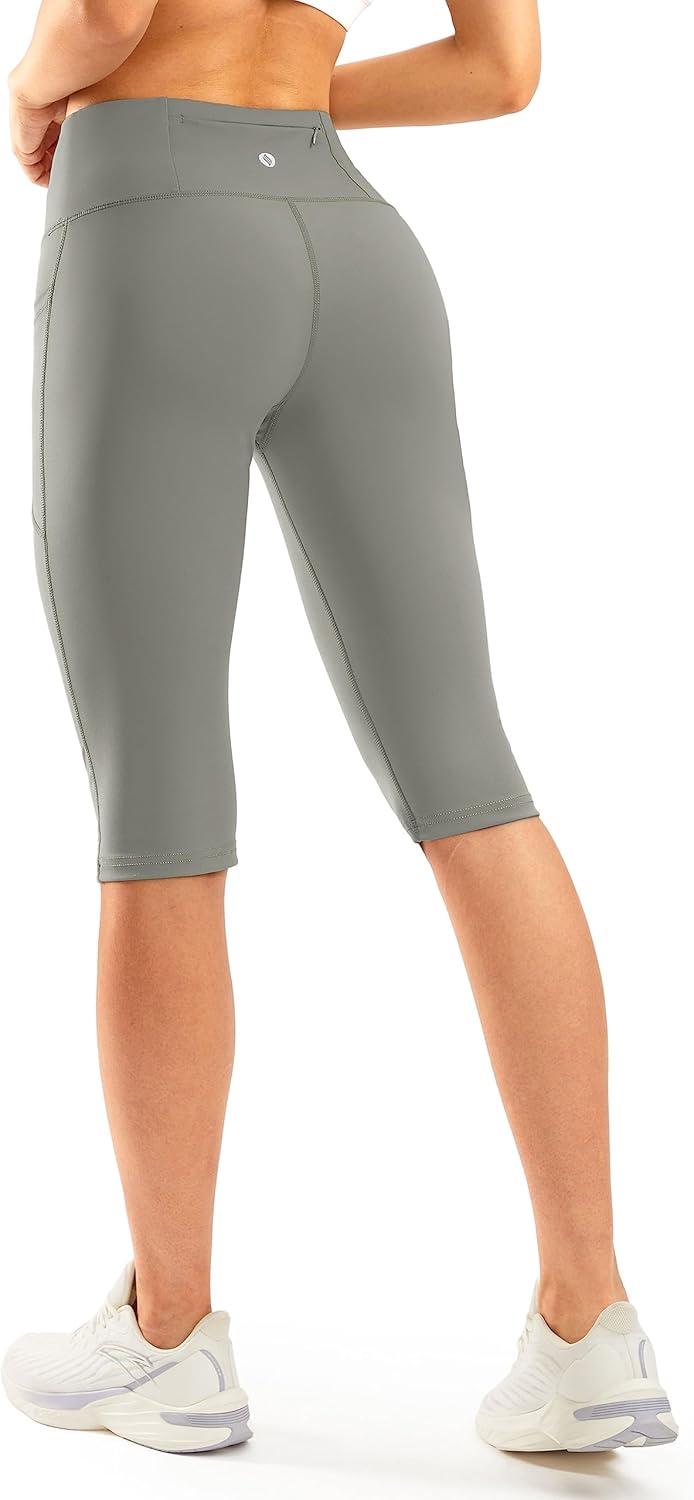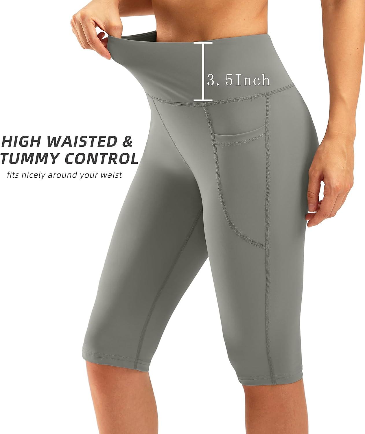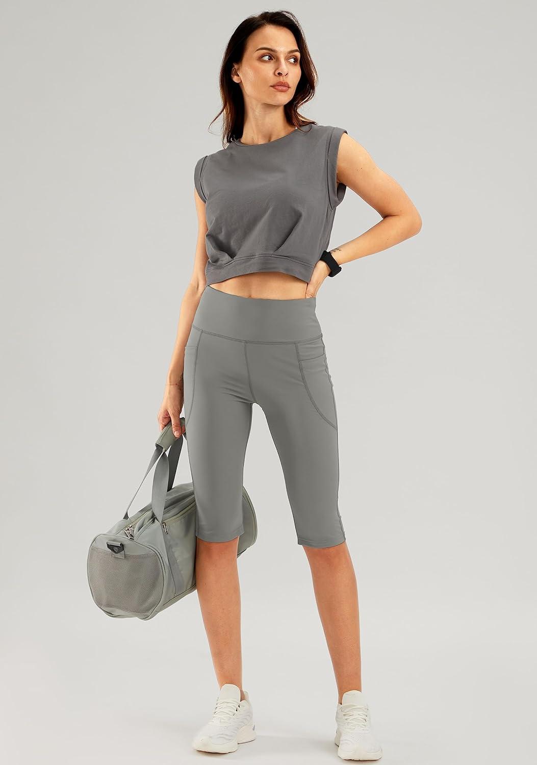 SANTINY Women’s Knee Length Capri Leggings with Pockets High Waisted Workout Exercise Yoga Capris Pants for Women(Light Grey)