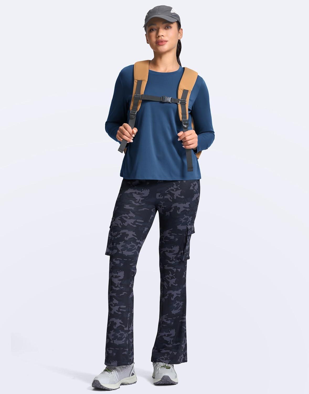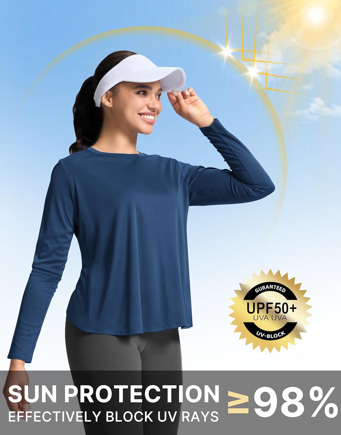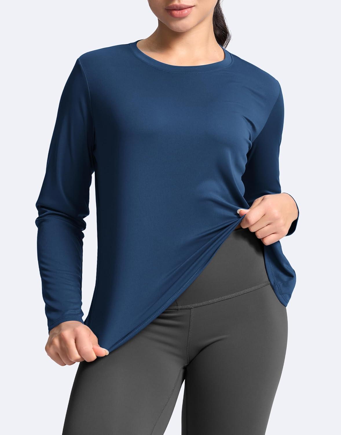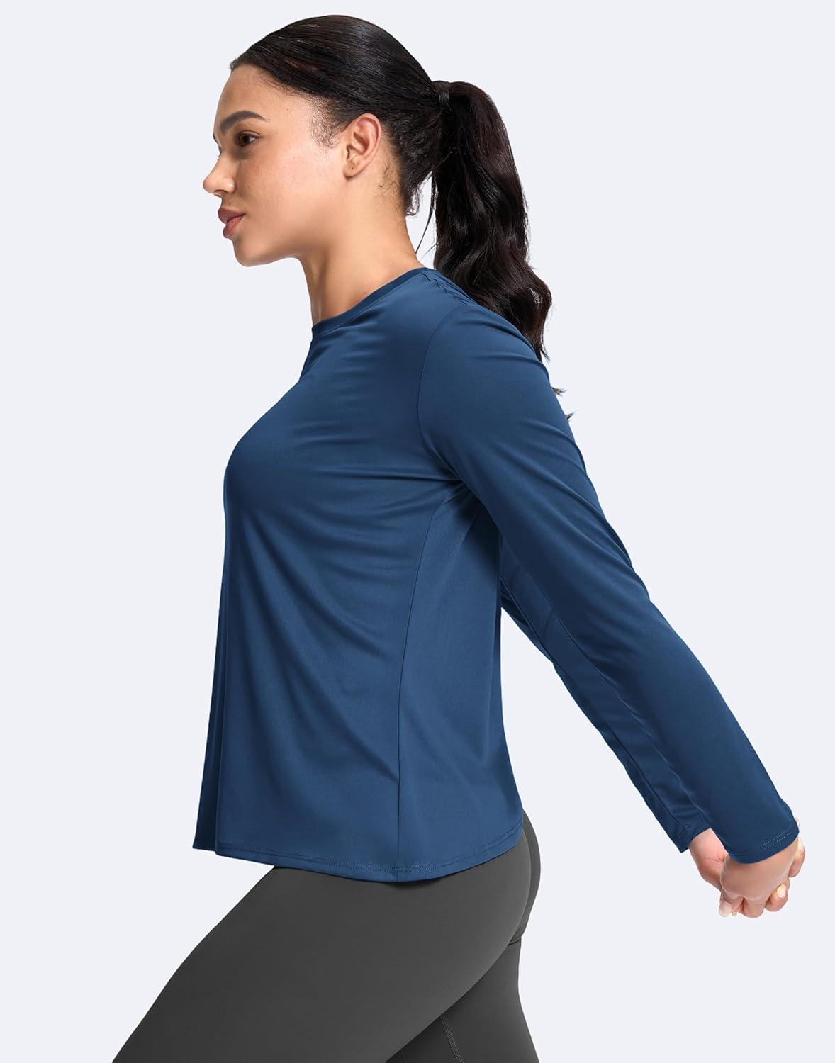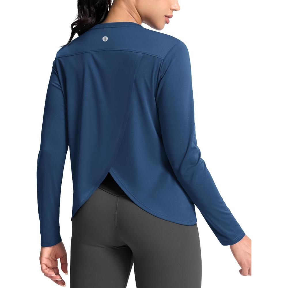 SANTINY Women’s Lightweight Long Sleeve Workout Tops Split Back Gym Running Hiking Athletic Shirt Quick Dry UPF 50+ Sun Shirt(Blue Grey)