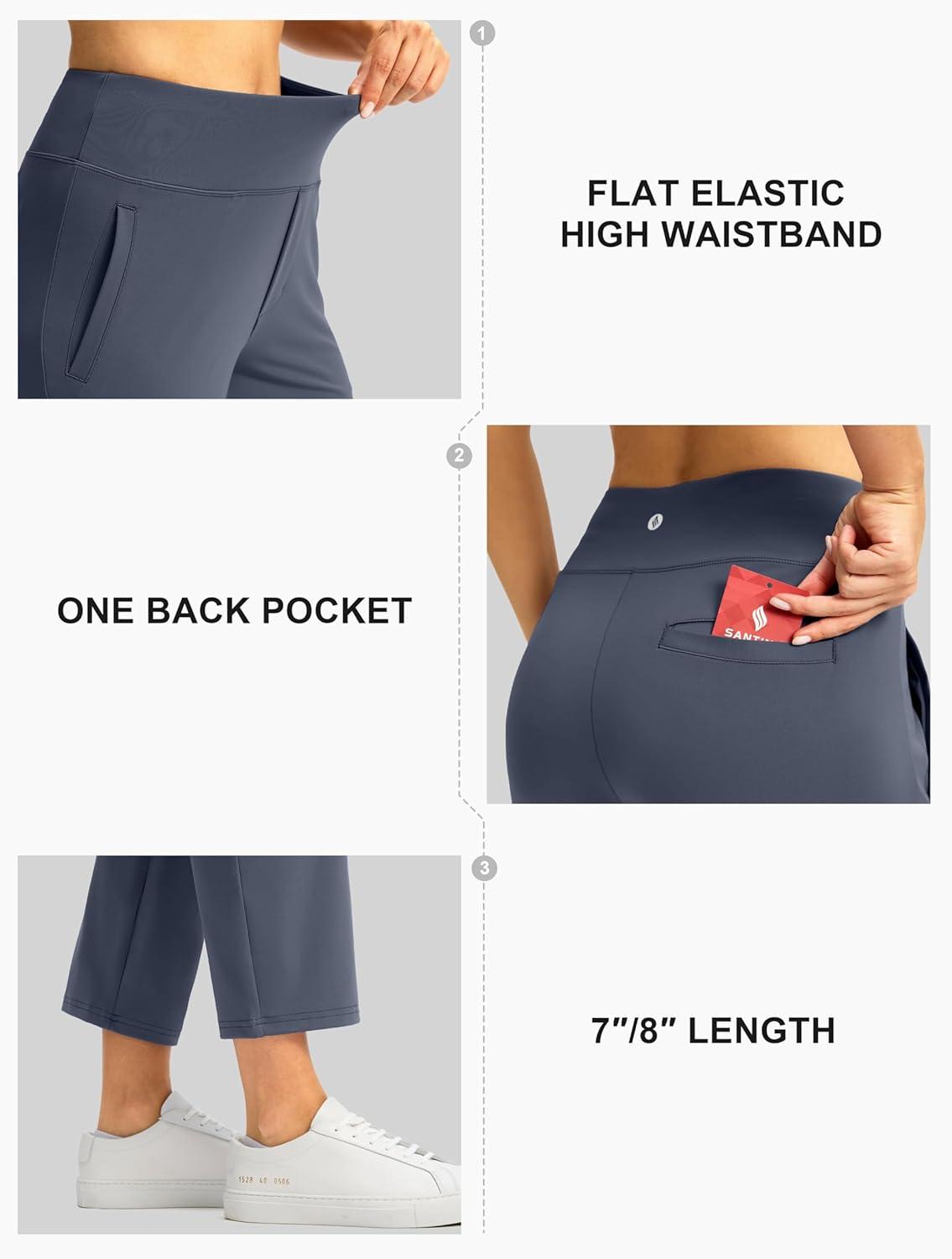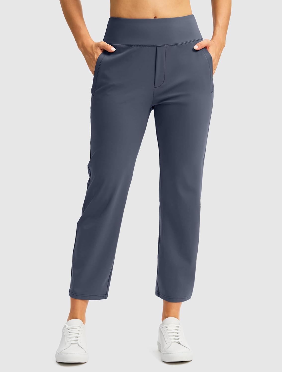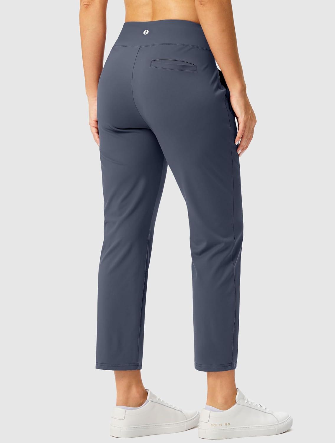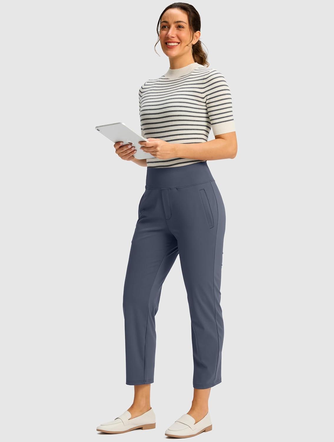 SANTINY Women’s Pants with 3 Pockets 7/8 High Waisted Stretch Ankle Pants for Women Golf Casual Travel Athletic Work(Dusty Blue)