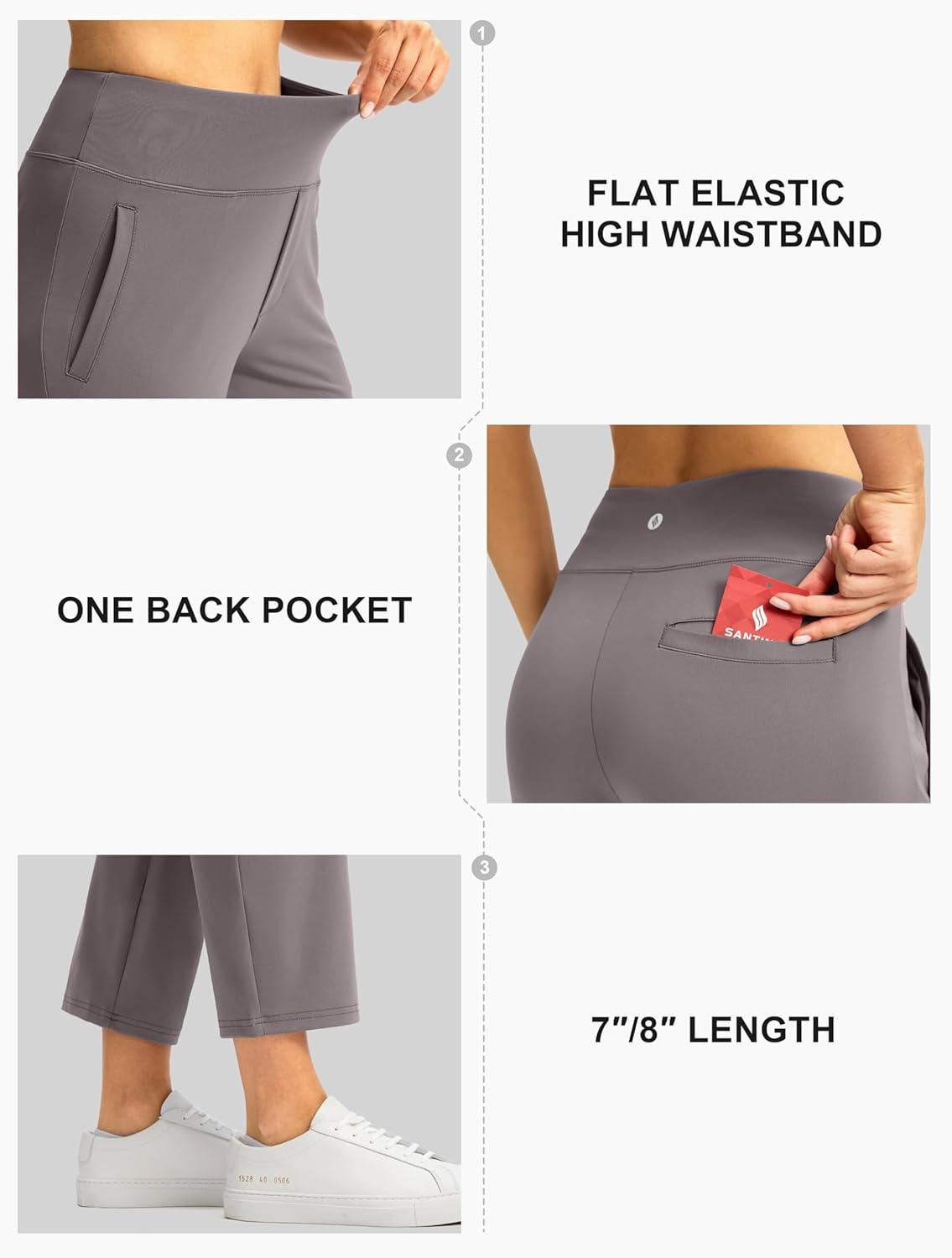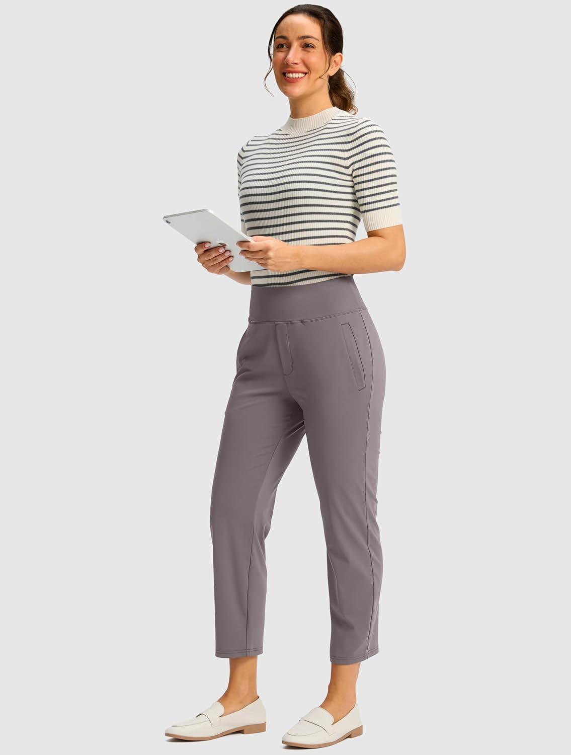 SANTINY Women’s Pants with 3 Pockets 7/8 High Waisted Stretch Ankle Pants for Women Golf Casual Travel Athletic Work(Dusty Grey)