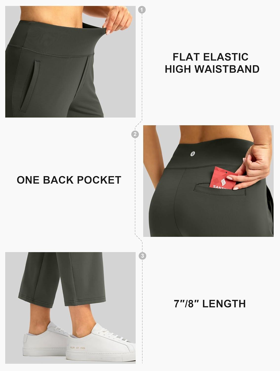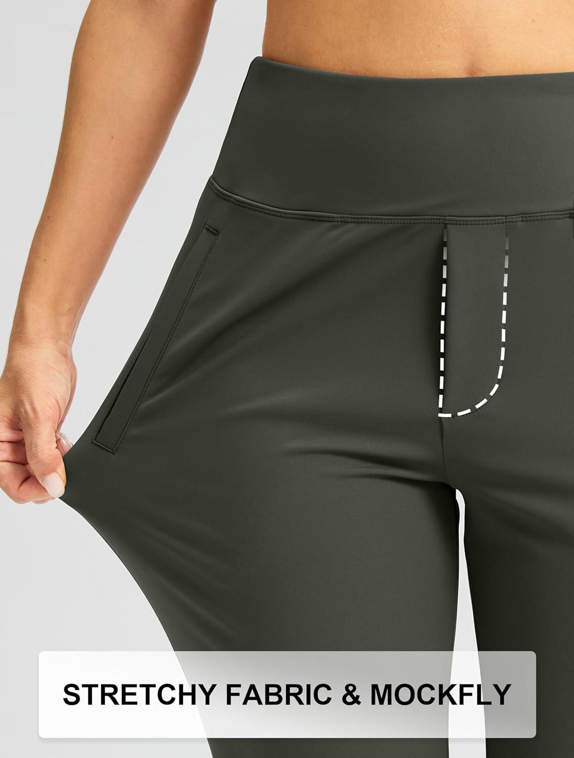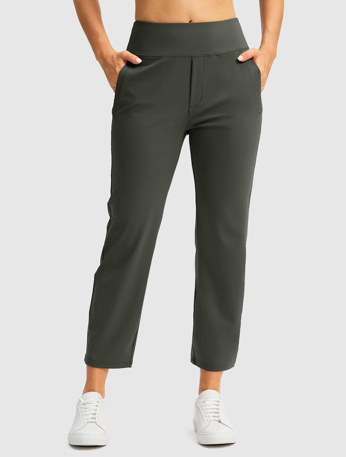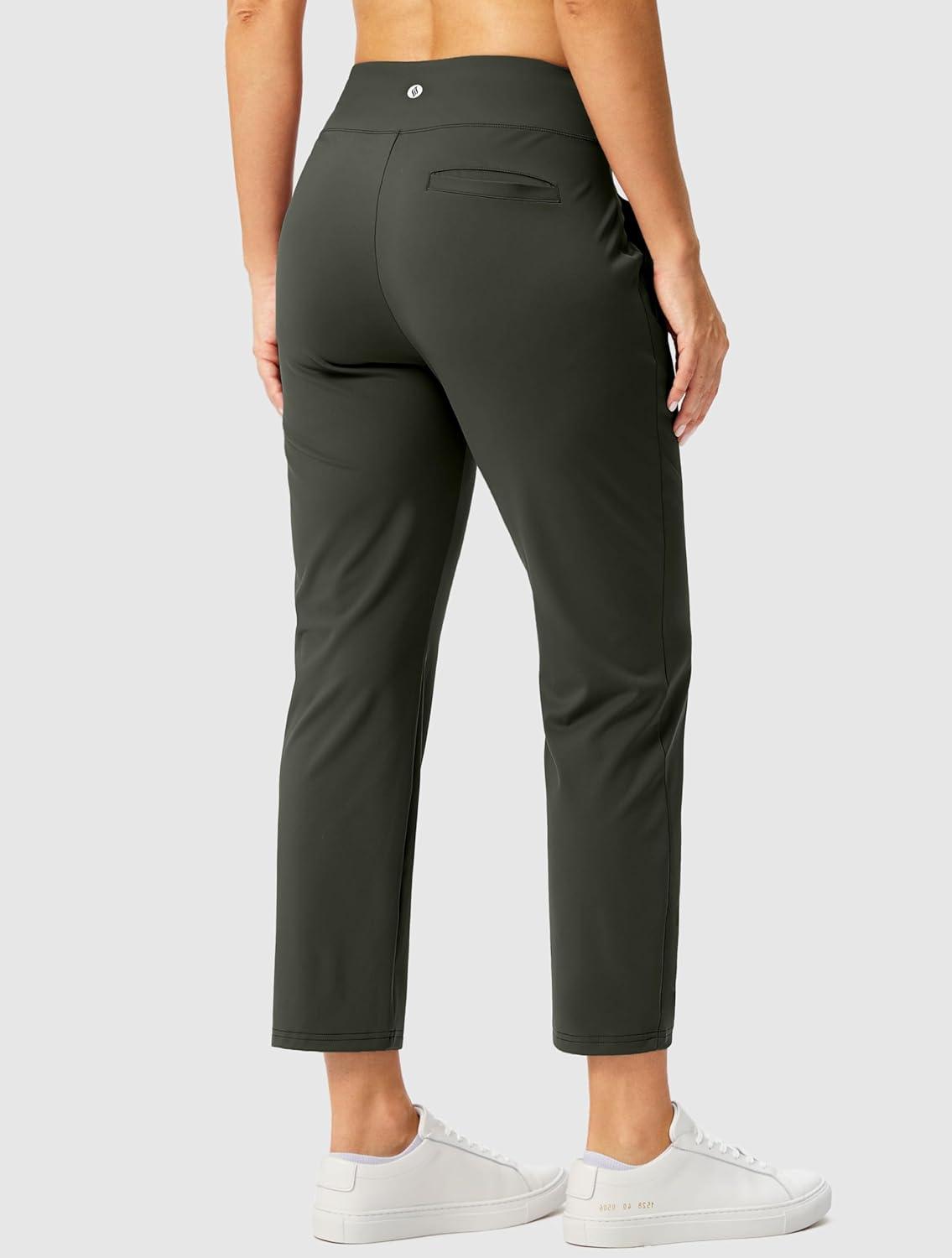 SANTINY Women’s Pants with 3 Pockets 7/8 High Waisted Stretch Ankle Pants for Women Golf Casual Travel Athletic Work(Olive Green)