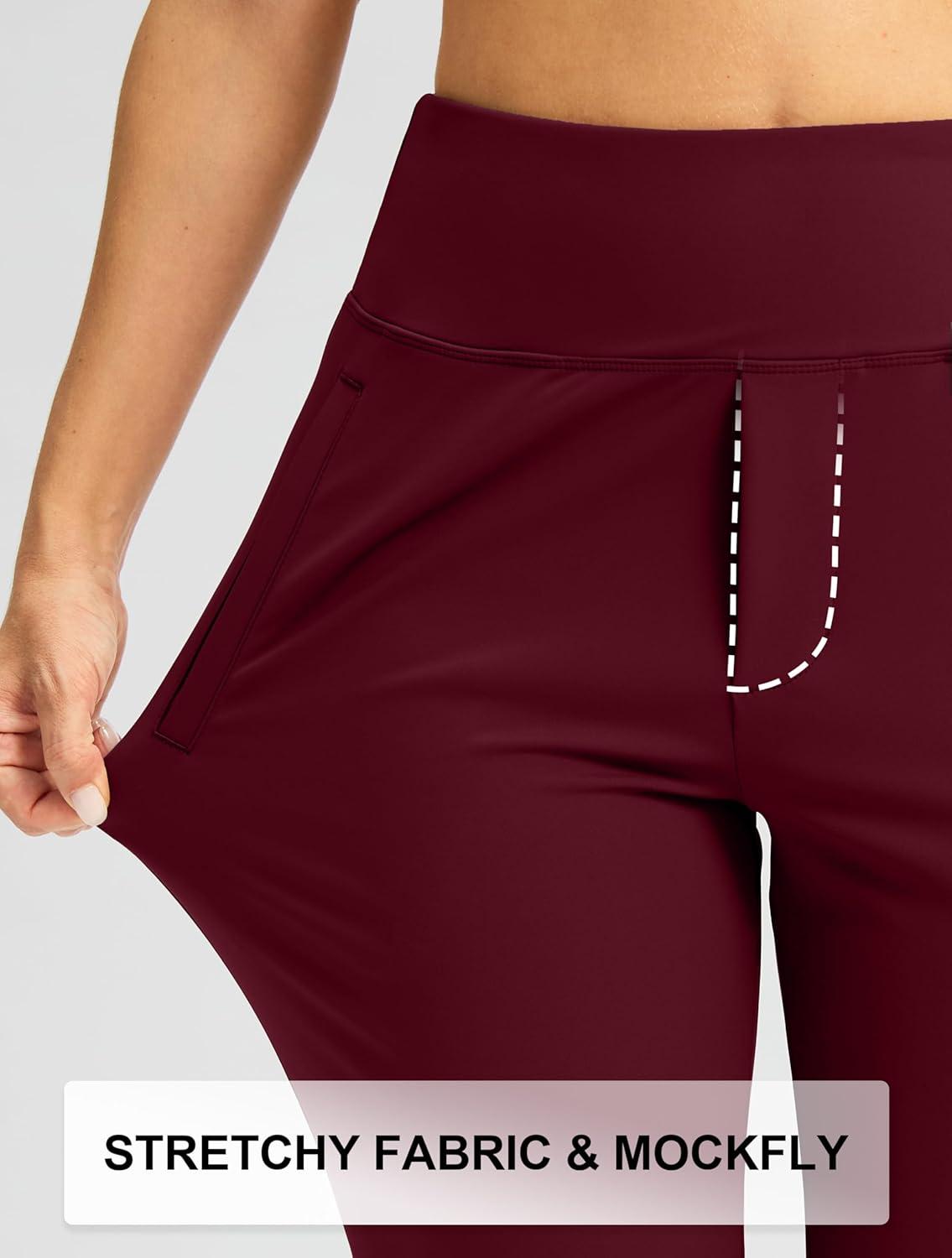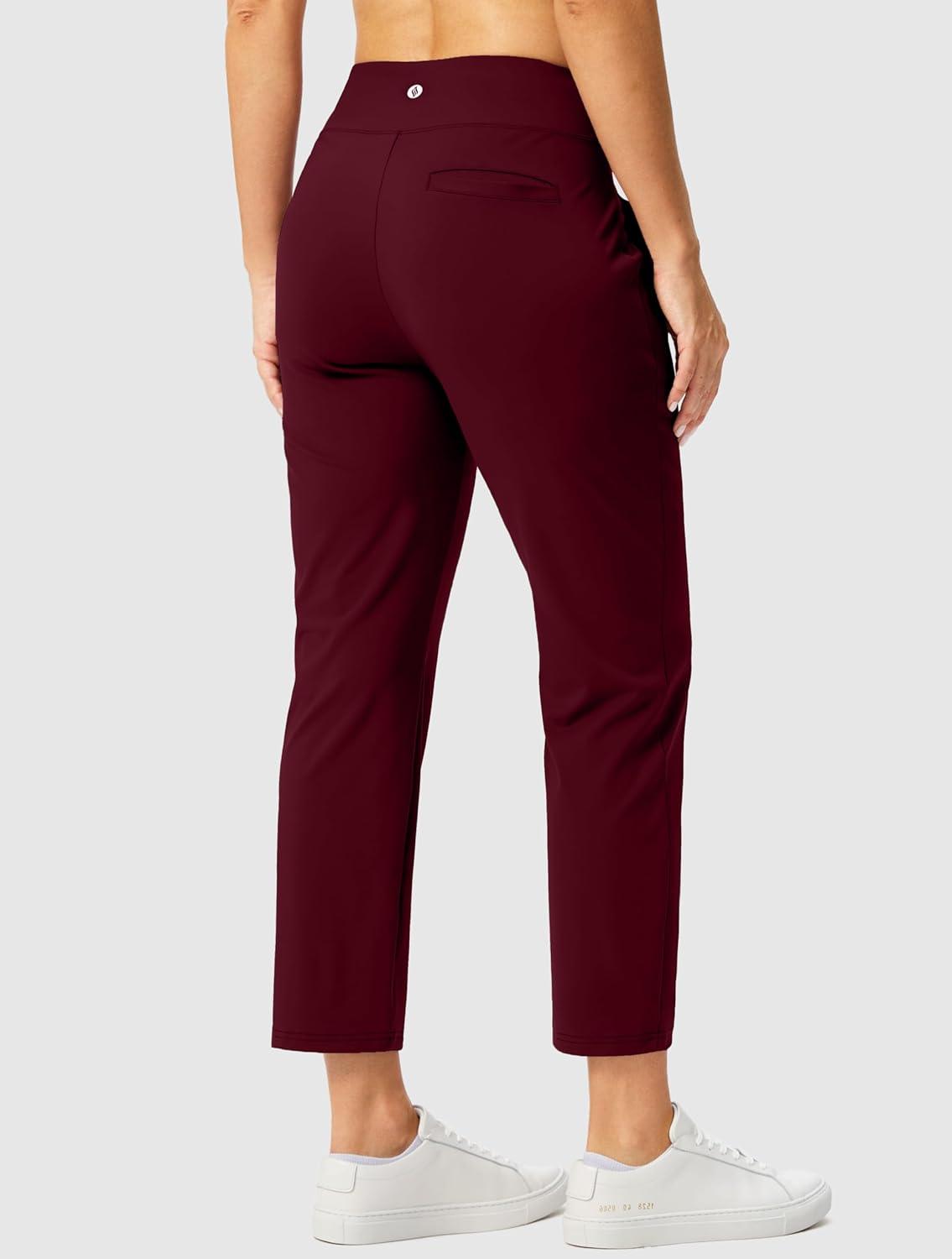 SANTINY Women’s Pants with 3 Pockets 7/8 High Waisted Stretch Ankle Pants for Women Golf Casual Travel Athletic Work(Wine)