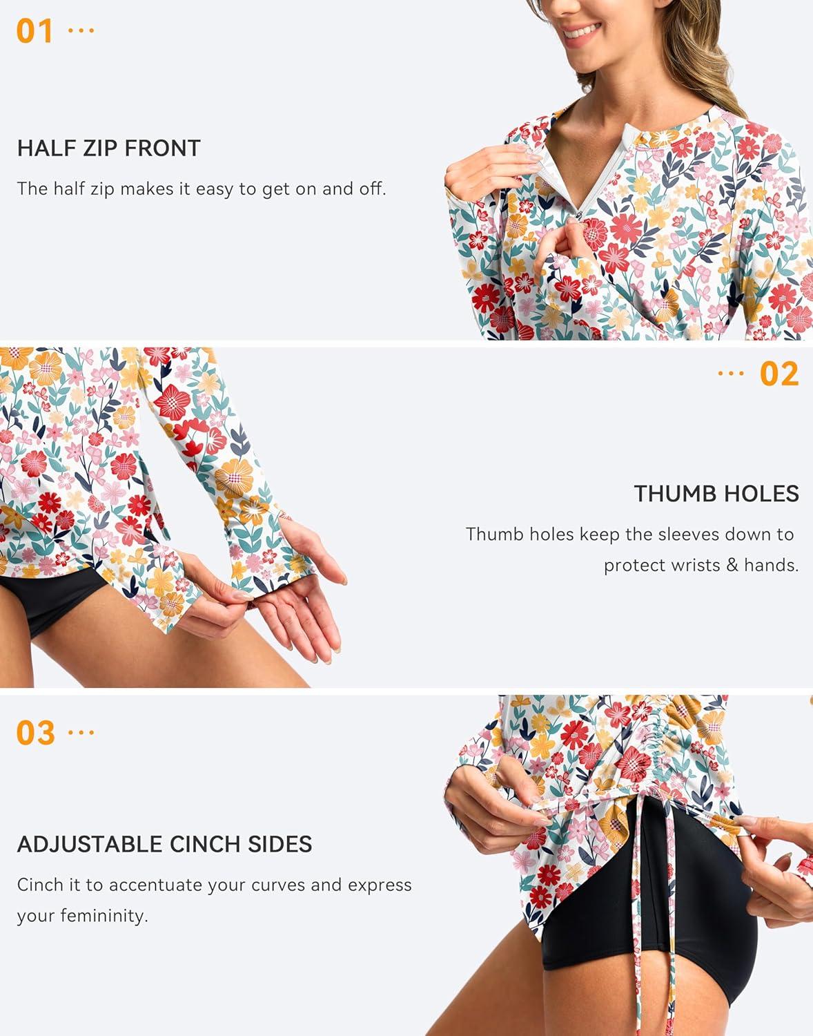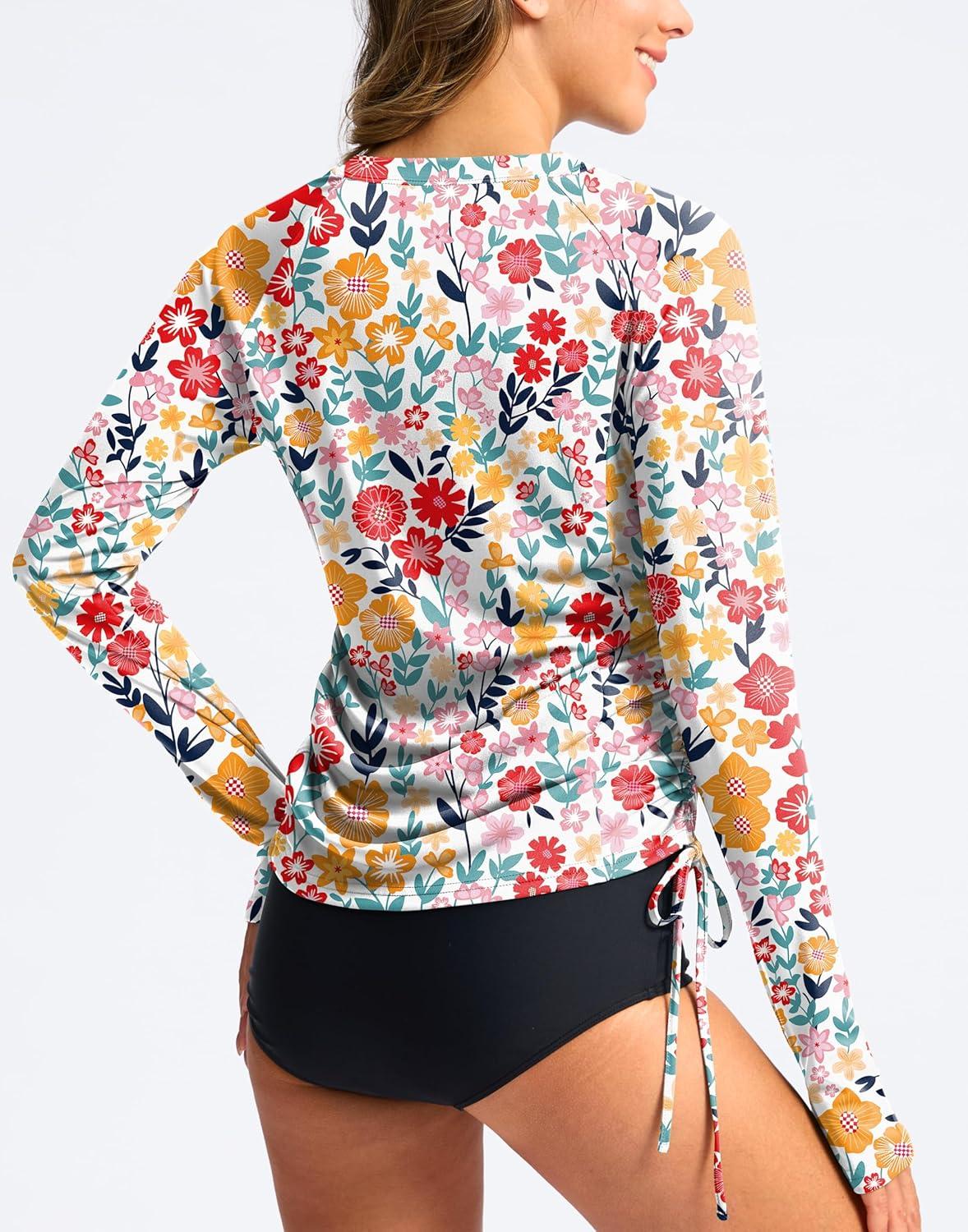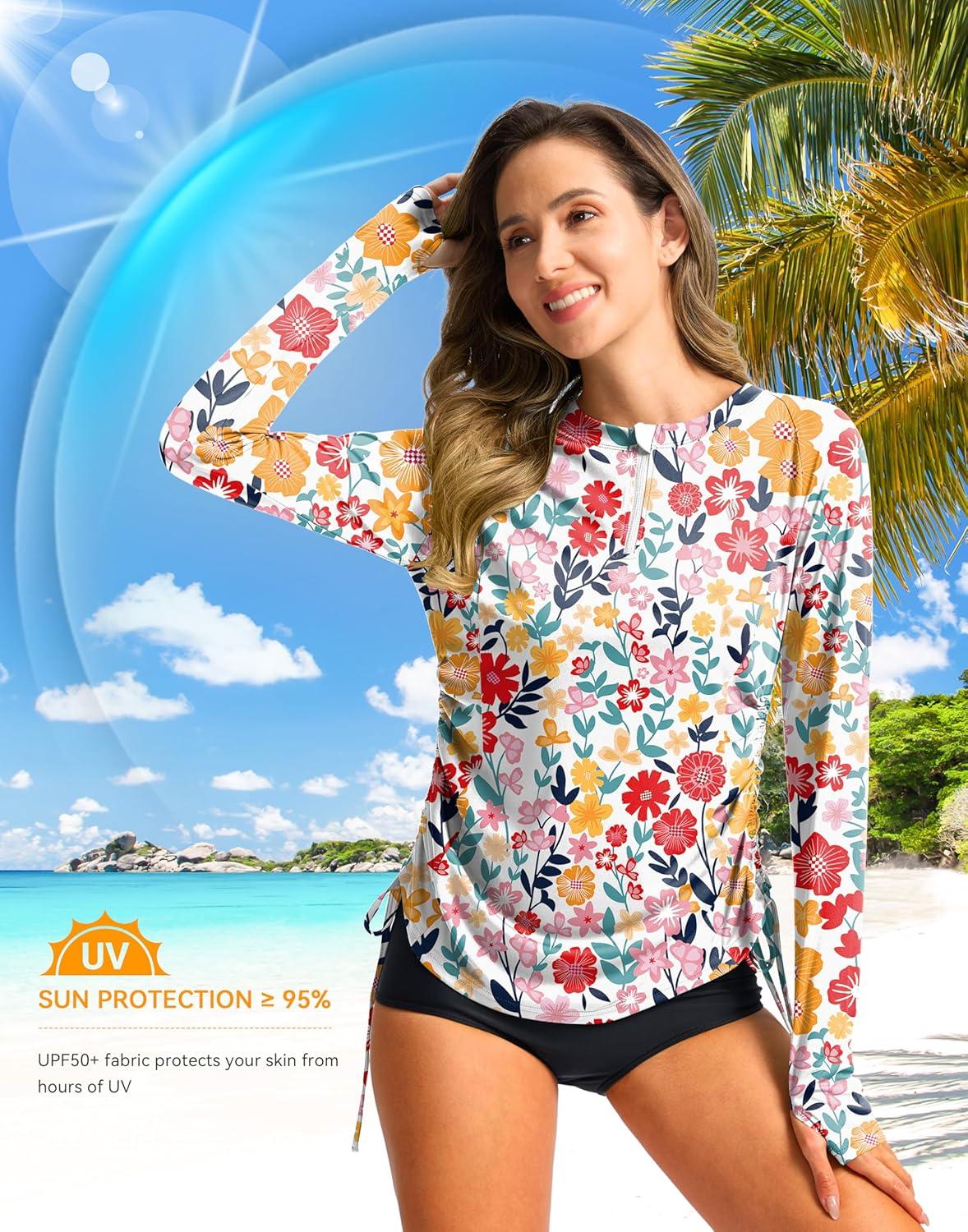 SANTINY Women’s Rash Guard UPF50+ SPF Long Sleeve Swimsuits Top UV Sun Protection Swim Shirts for Woman with Zip(Colorful Floral)
