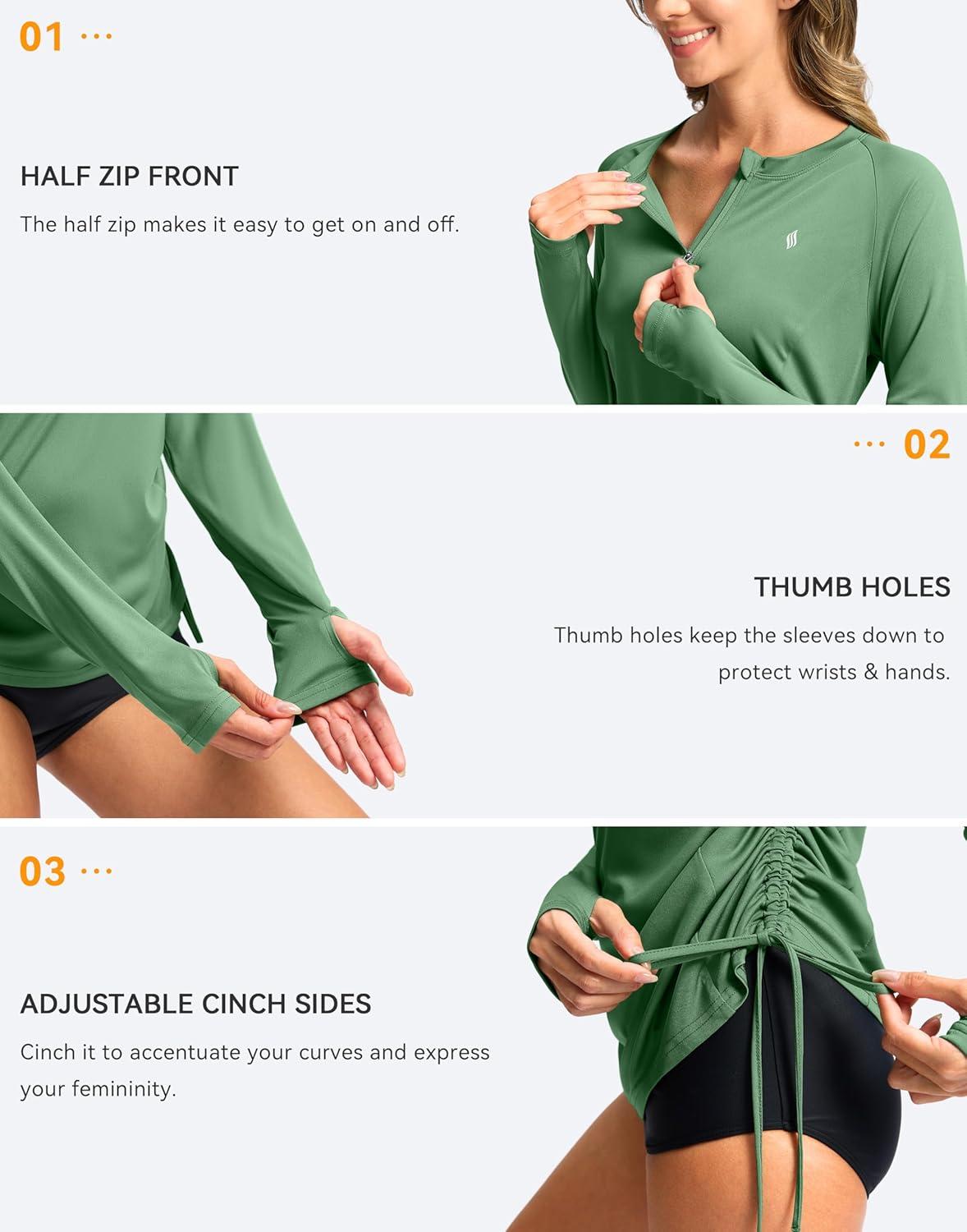 SANTINY Women’s Rash Guard UPF50+ SPF Long Sleeve Swimsuits Top UV Sun Protection Swim Shirts for Woman with Zip(Green)