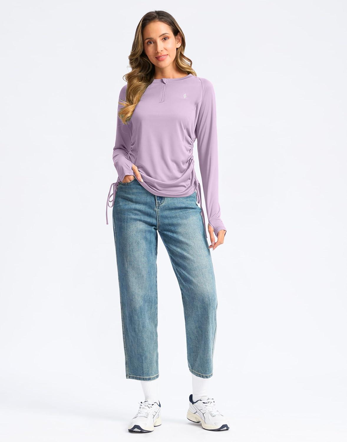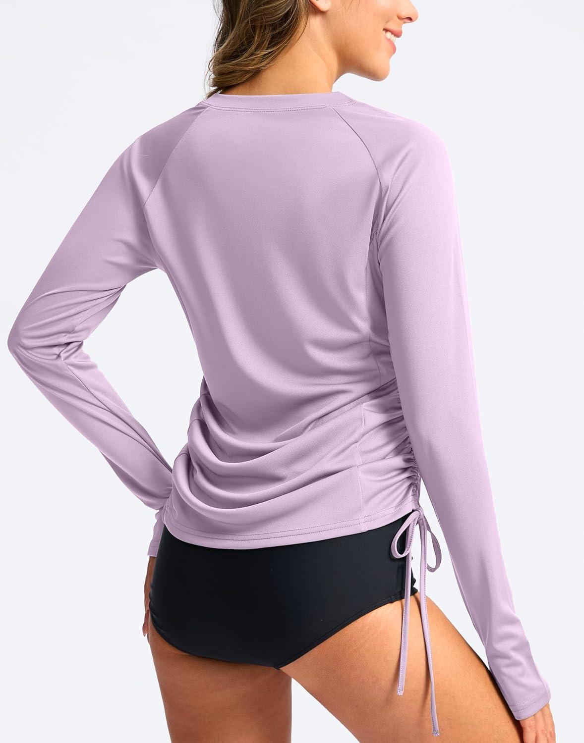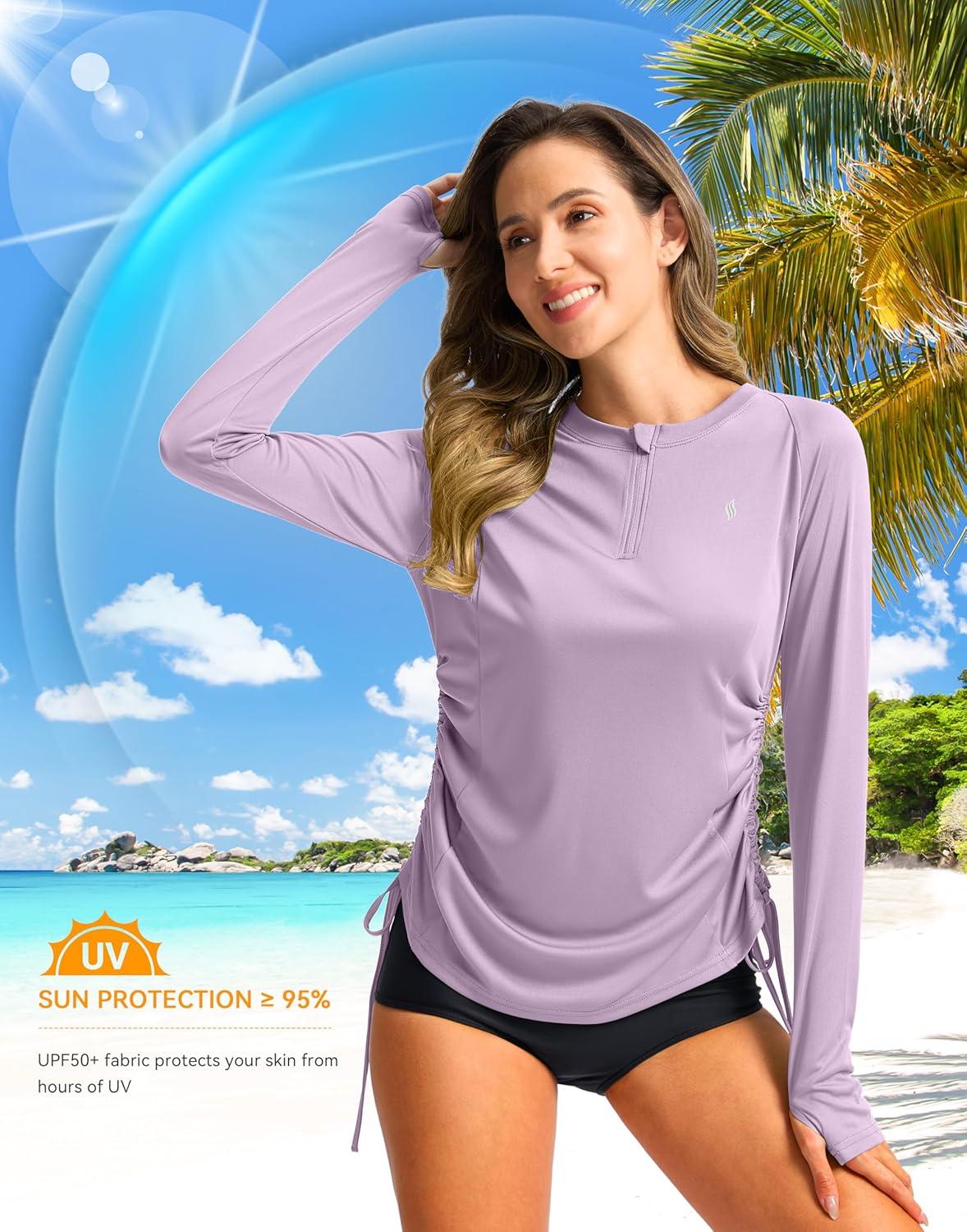 SANTINY Women’s Rash Guard UPF50+ SPF Long Sleeve Swimsuits Top UV Sun Protection Swim Shirts for Woman with Zip(Light Purple)