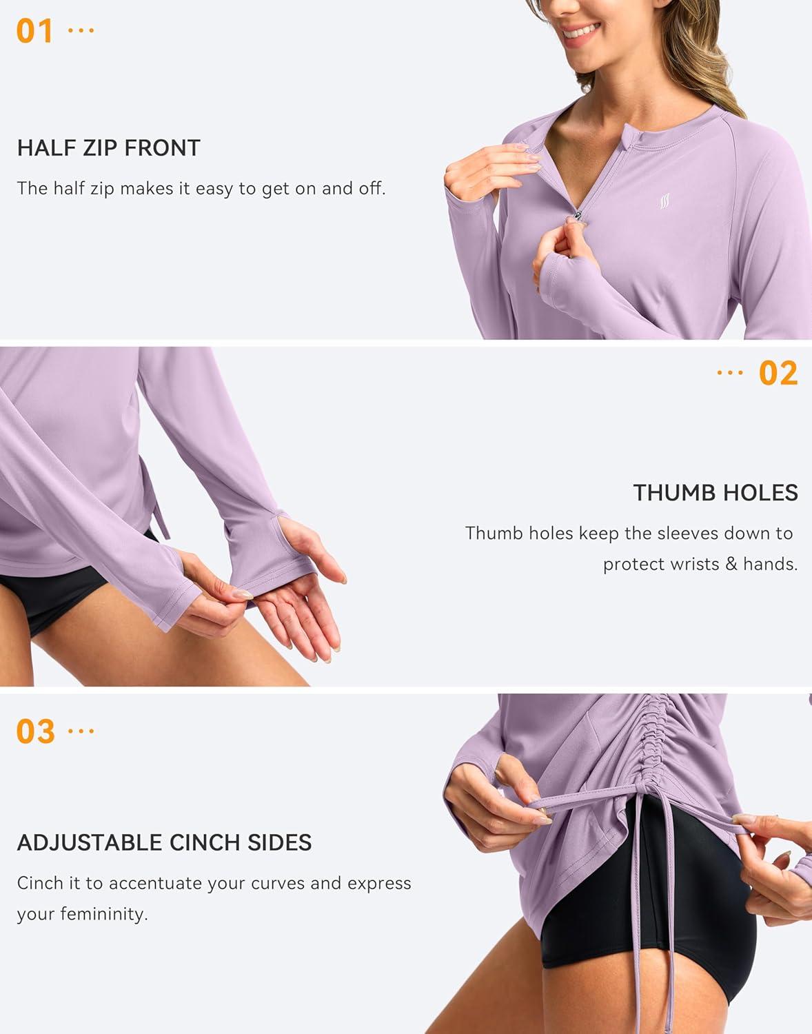 Be the first to review “SANTINY Women’s Rash Guard UPF50+ SPF Long Sleeve Swimsuits Top UV Sun Protection Swim Shirts for Woman with Zip(Light Purple)”