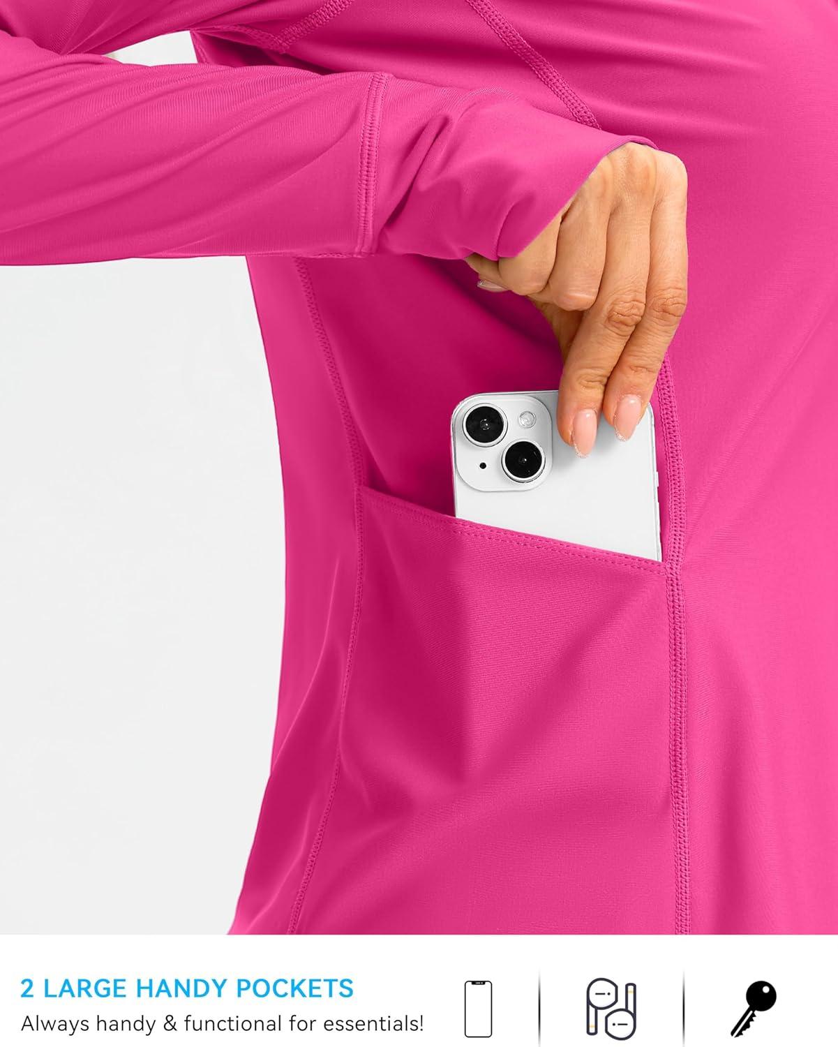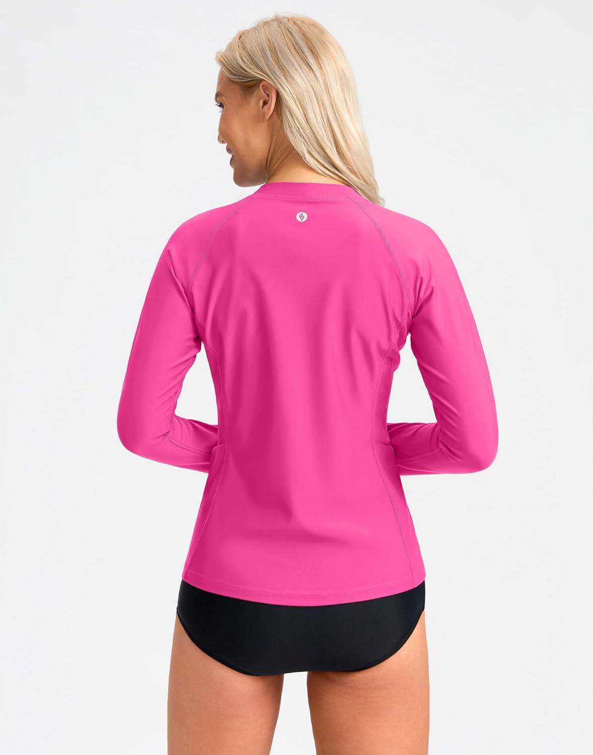 SANTINY Women’s Rash Guard UPF50+ SPF UV Protection Long Sleeve Swimsuit Top with Pockets Zip Front Swim Shirts Woman(Rose)
