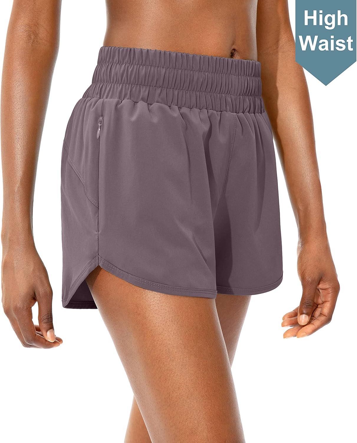 SANTINY Women’s Running Shorts with Zip Pockets High Waisted Athletic Workout Gym Shorts for Women with Liner(Dusty Purple)
