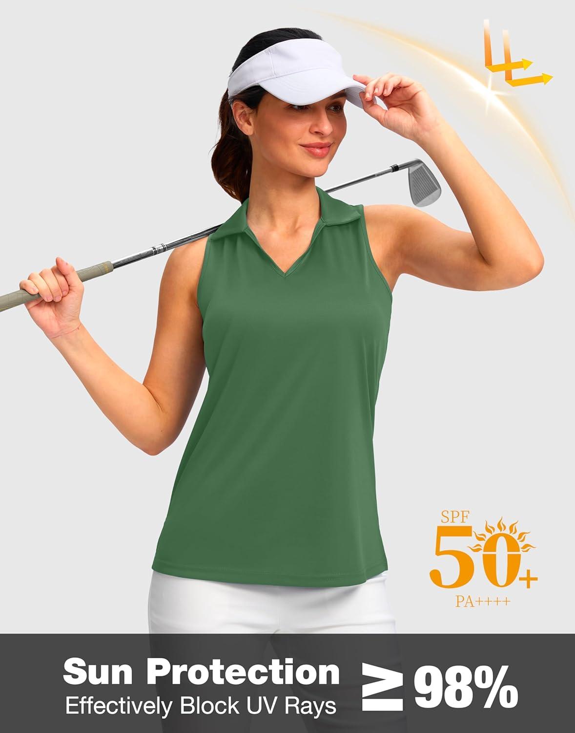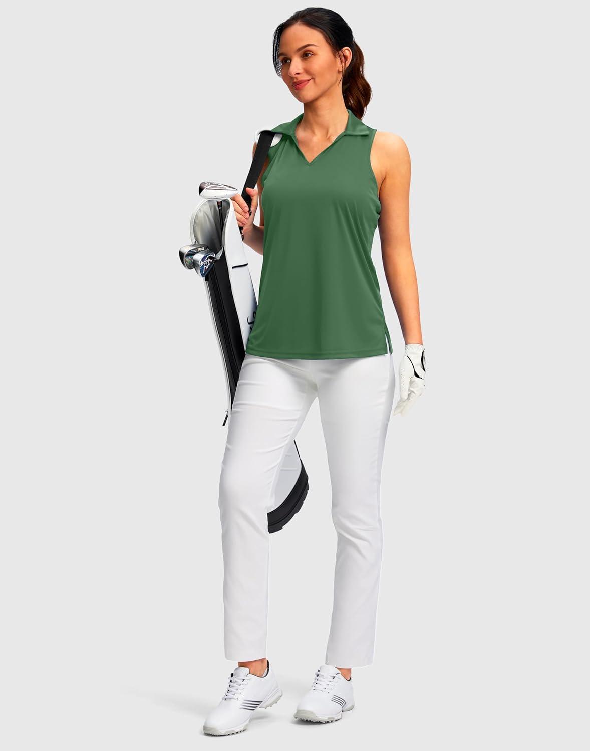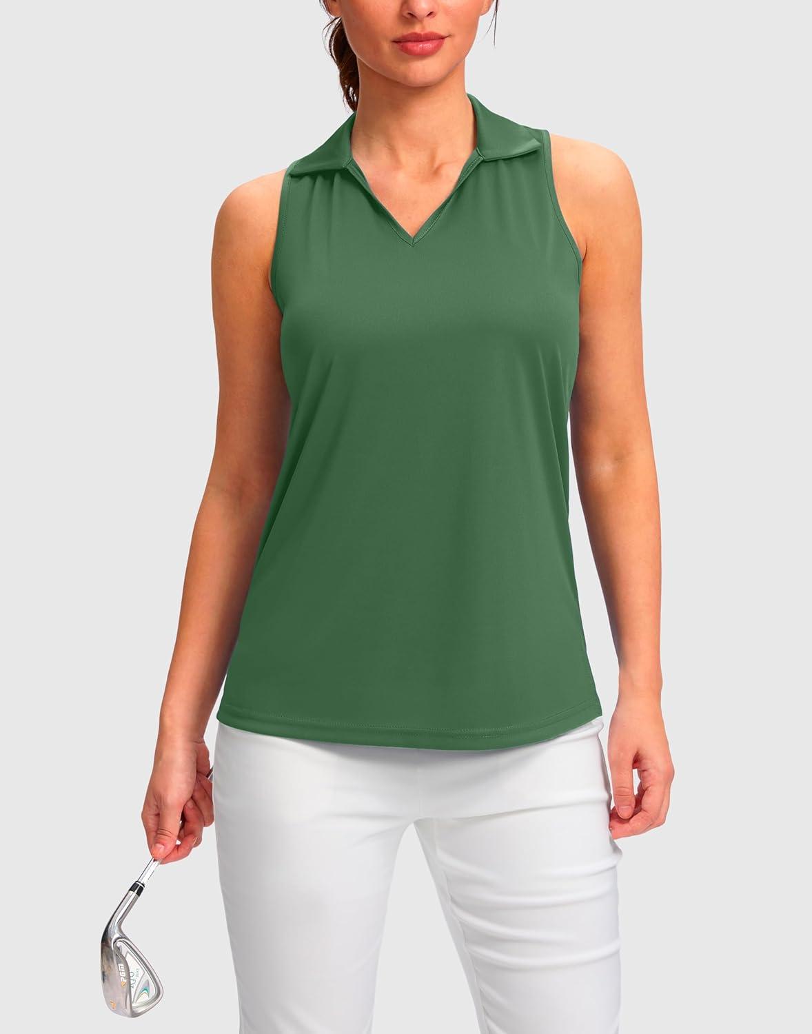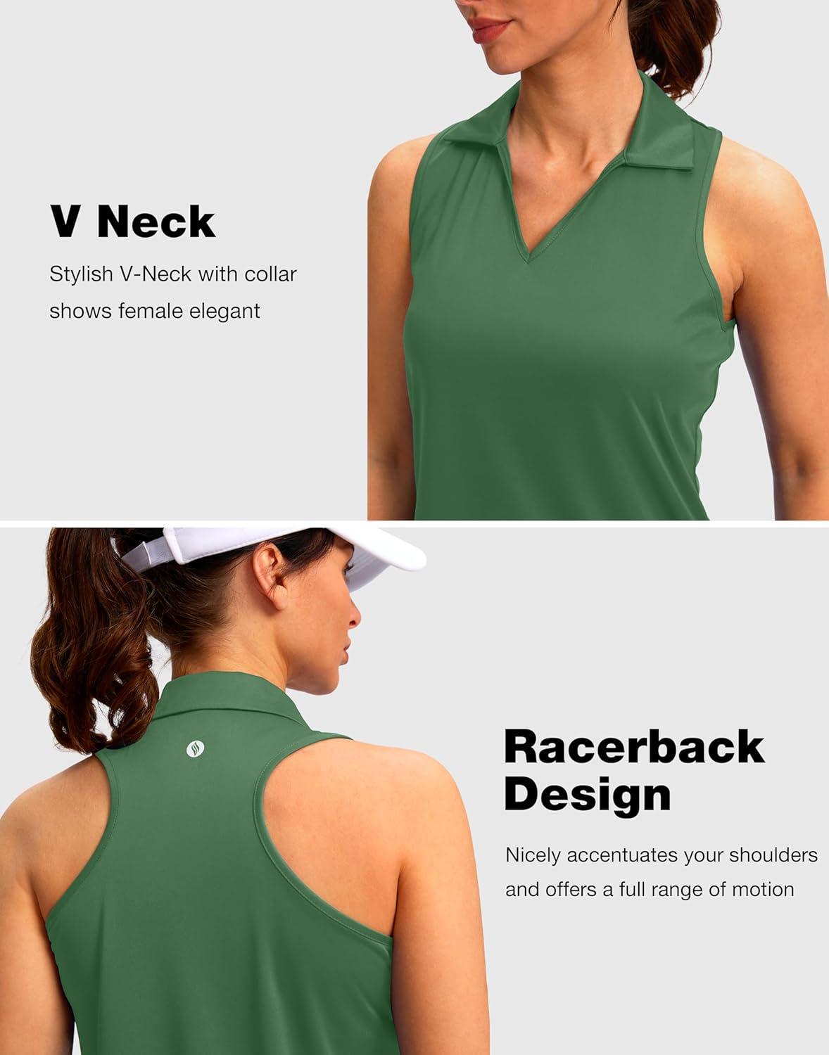 SANTINY Womens Sleeveless Golf Shirt Racerback V Neck Tank Tops Quick Dry Tennis Collared Polo Shirts for Women(Green)