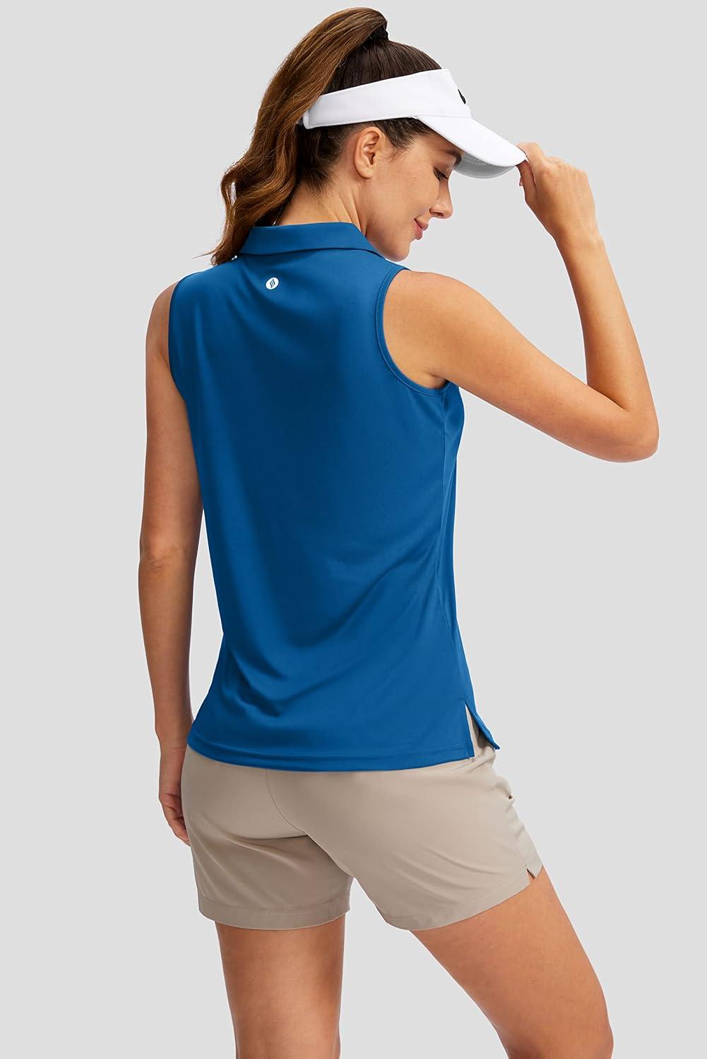 SANTINY Women’s Sleeveless Golf Shirt V-Neck Tennis Tank Tops Collared Golf Polo Shirts for Women(Blue)