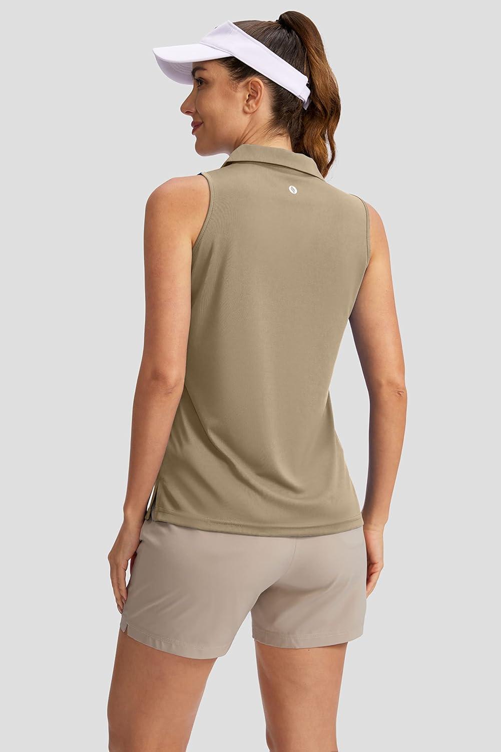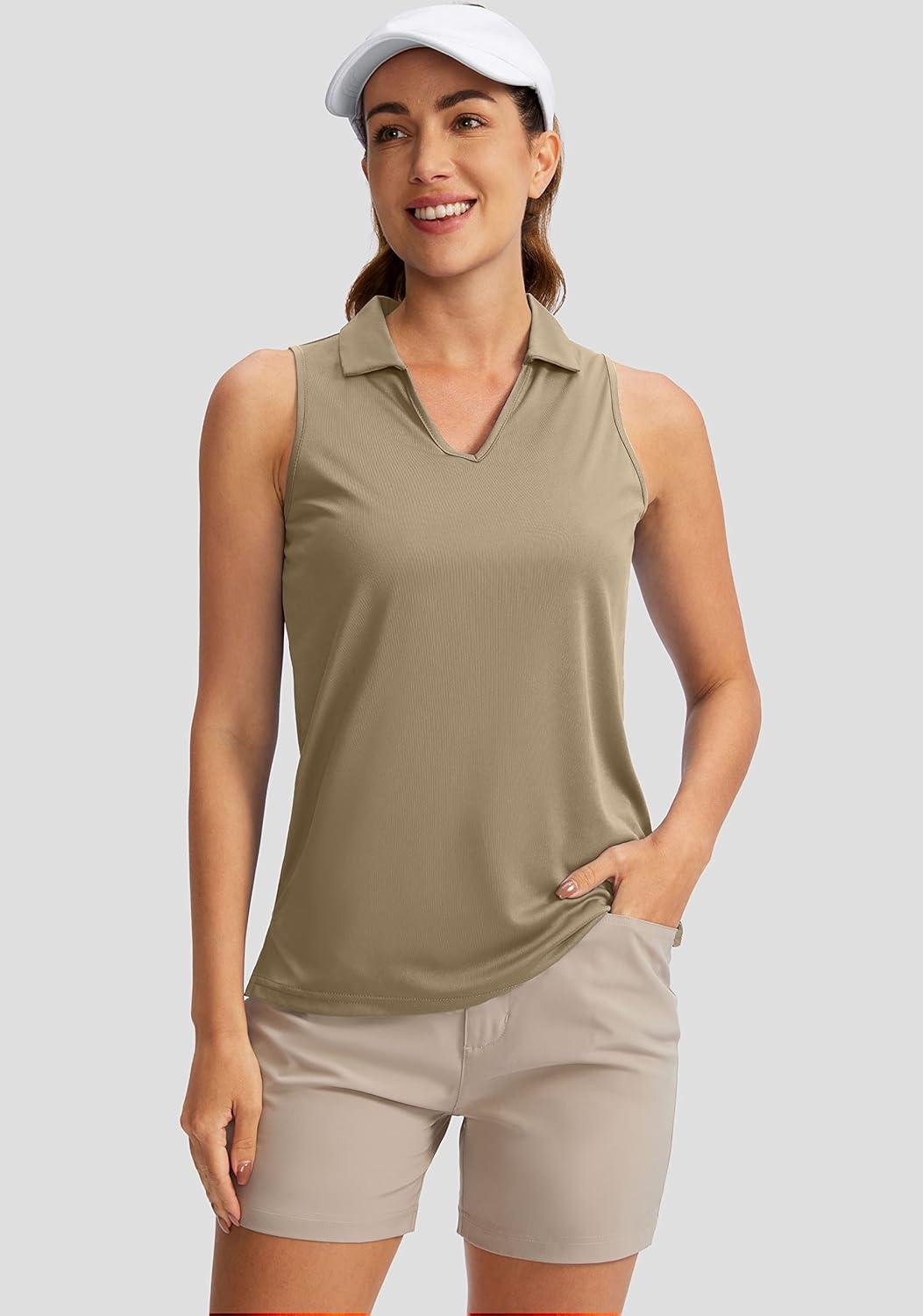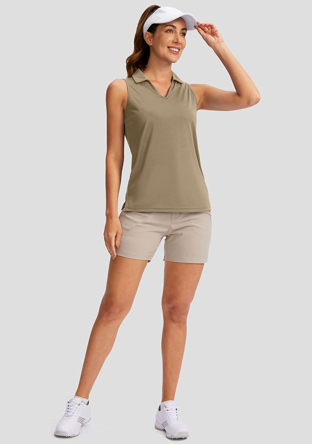 SANTINY Women’s Sleeveless Golf Shirt V-Neck Tennis Tank Tops Collared Golf Polo Shirts for Women(Khaki)